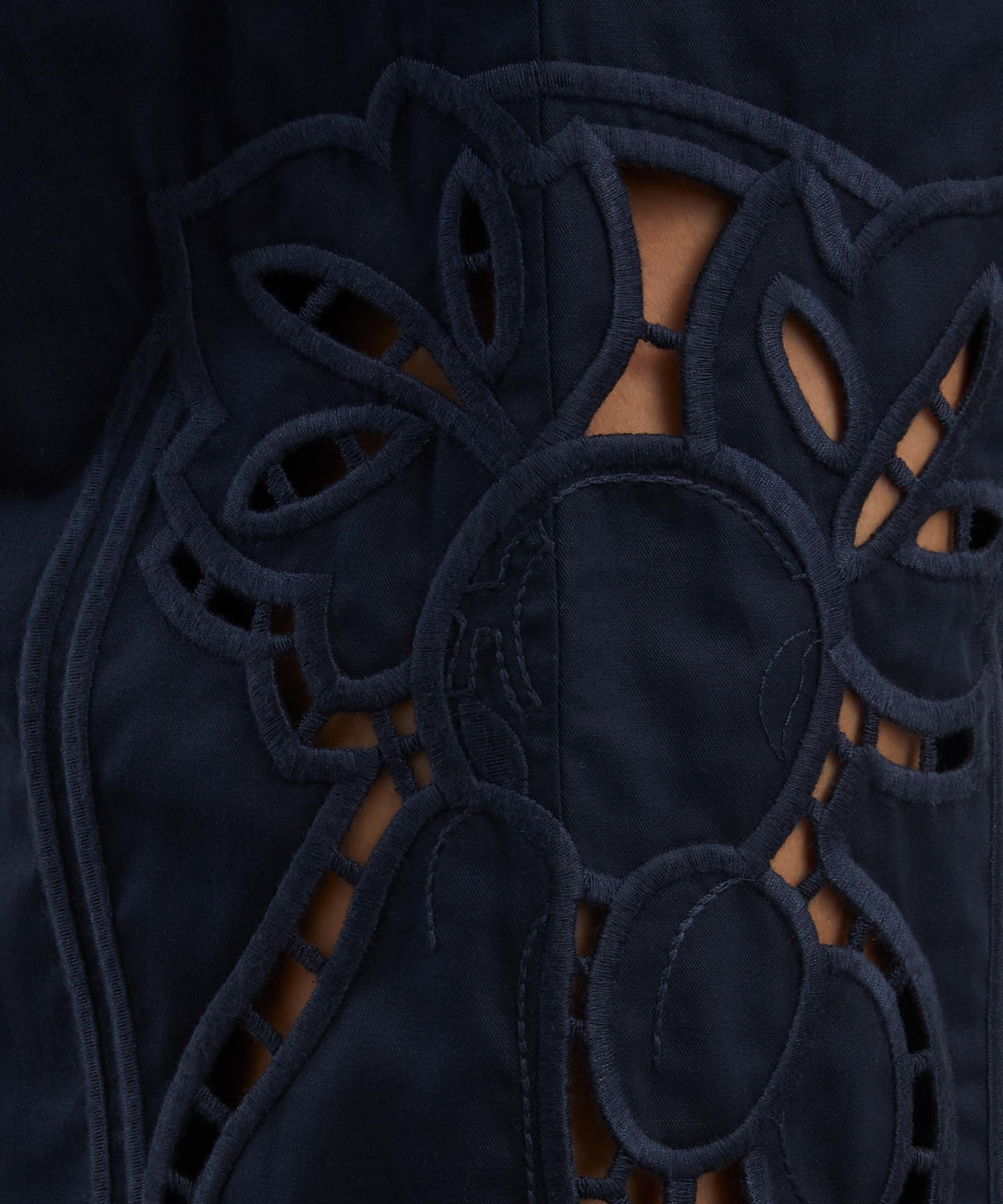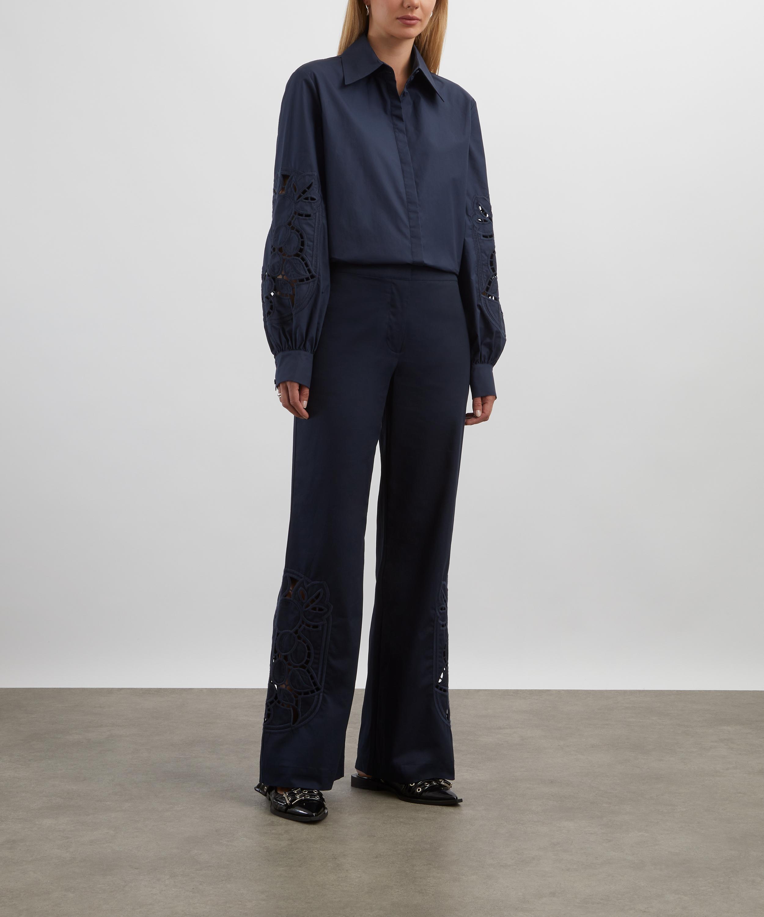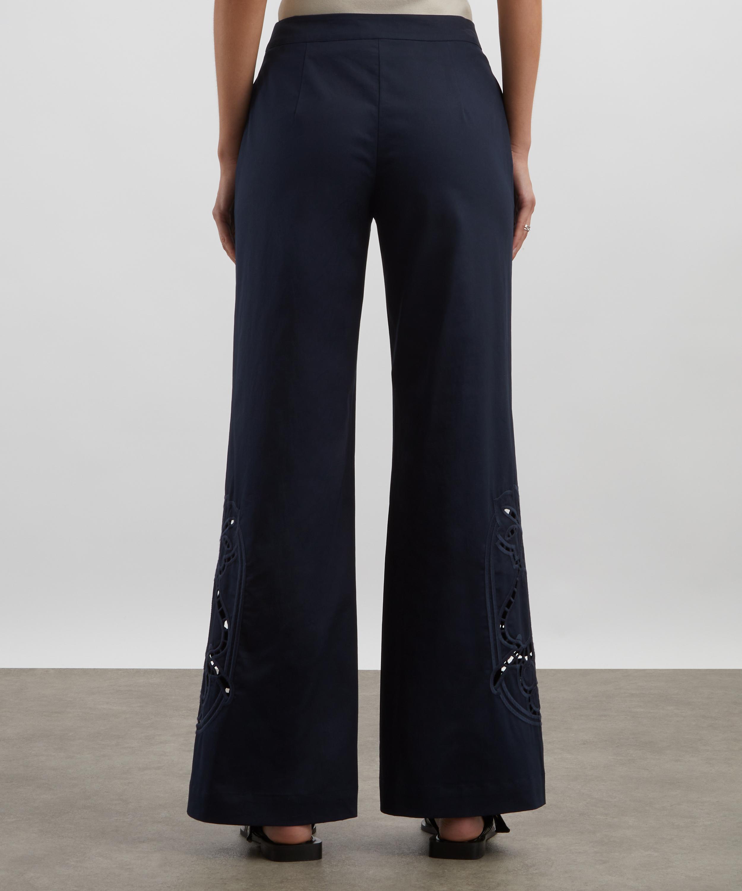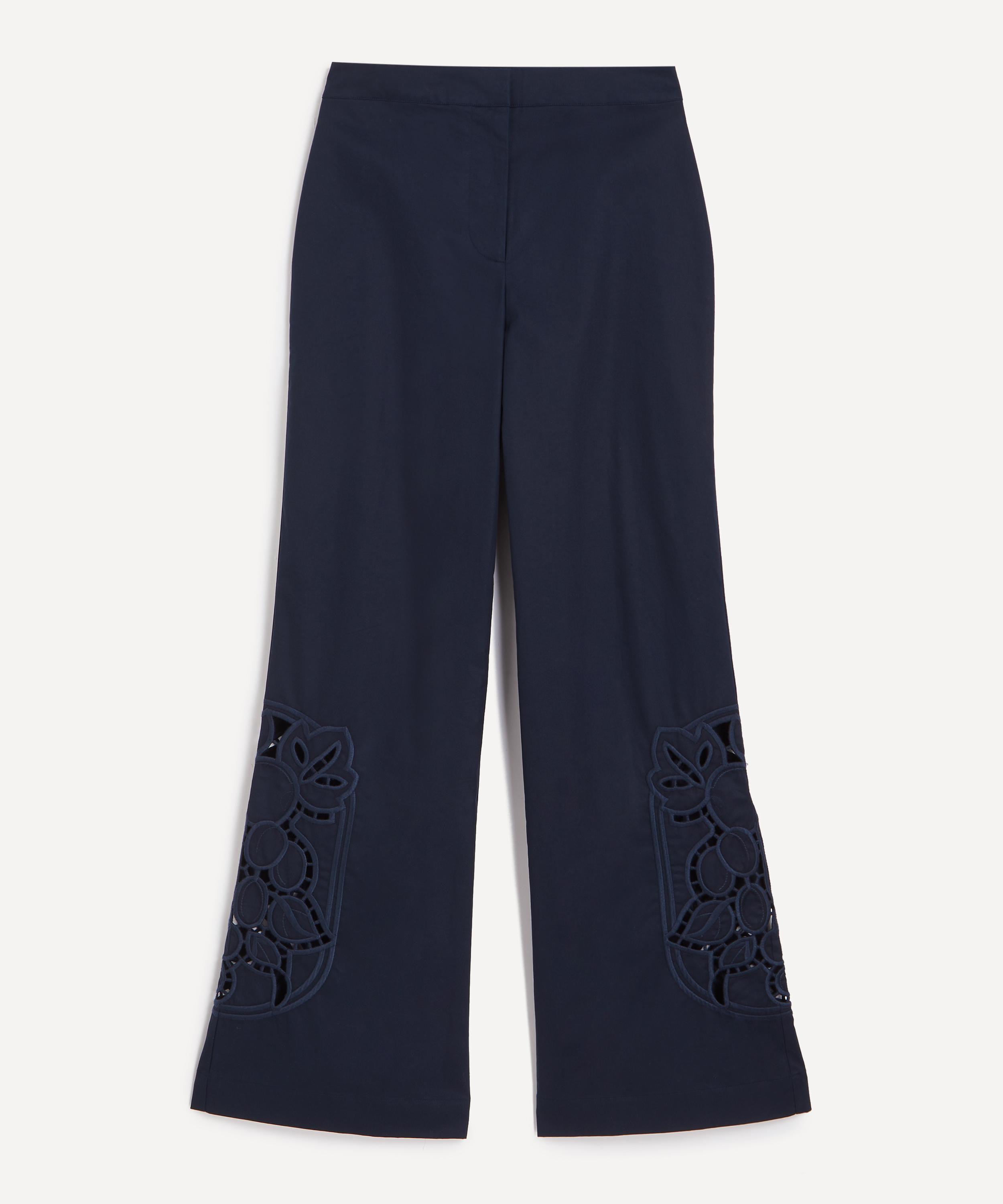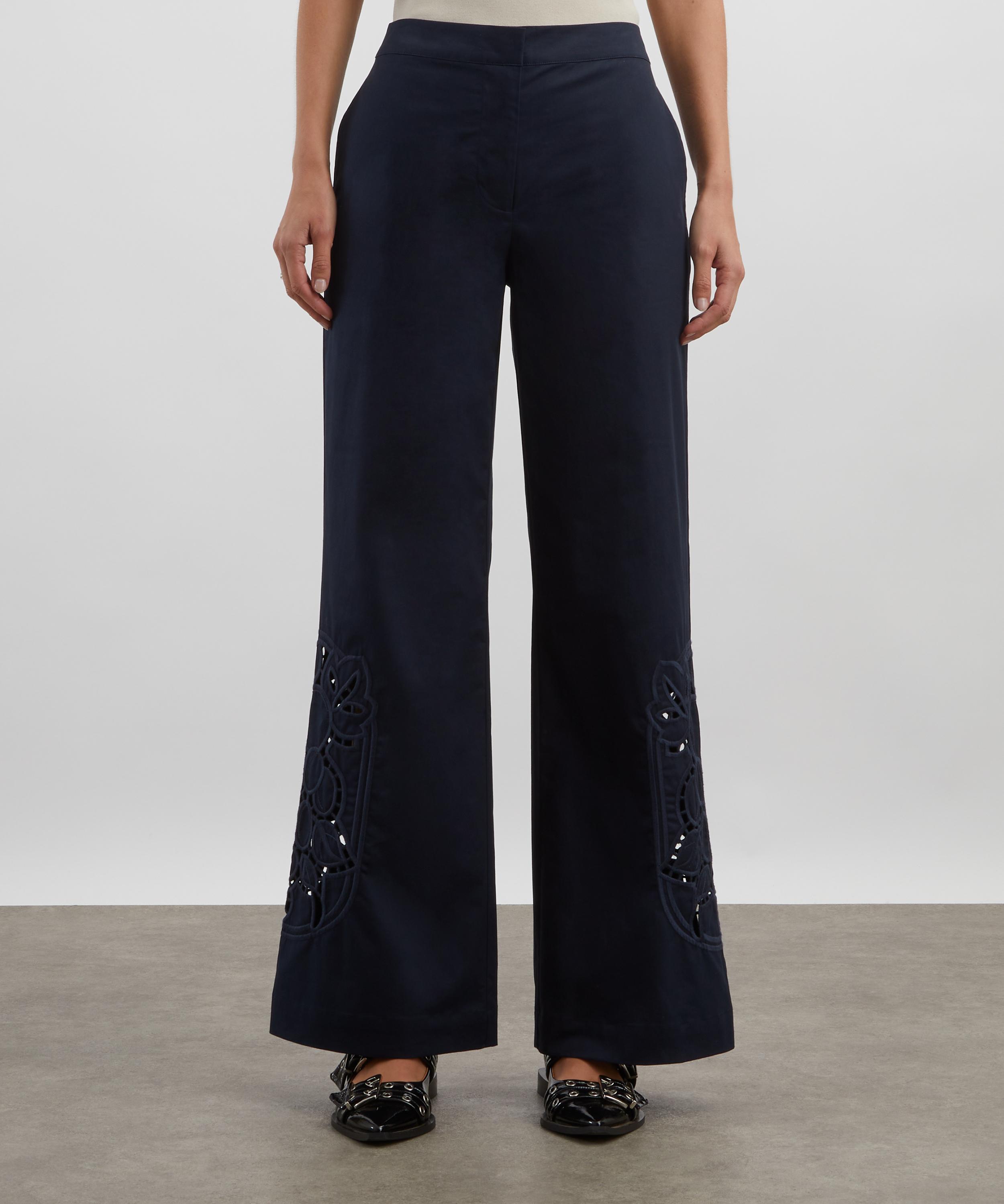 Effortlessly elegant, the Roma Navy Embroidery Trousers from Clea offer a contemporary and refreshing take on timeless design.