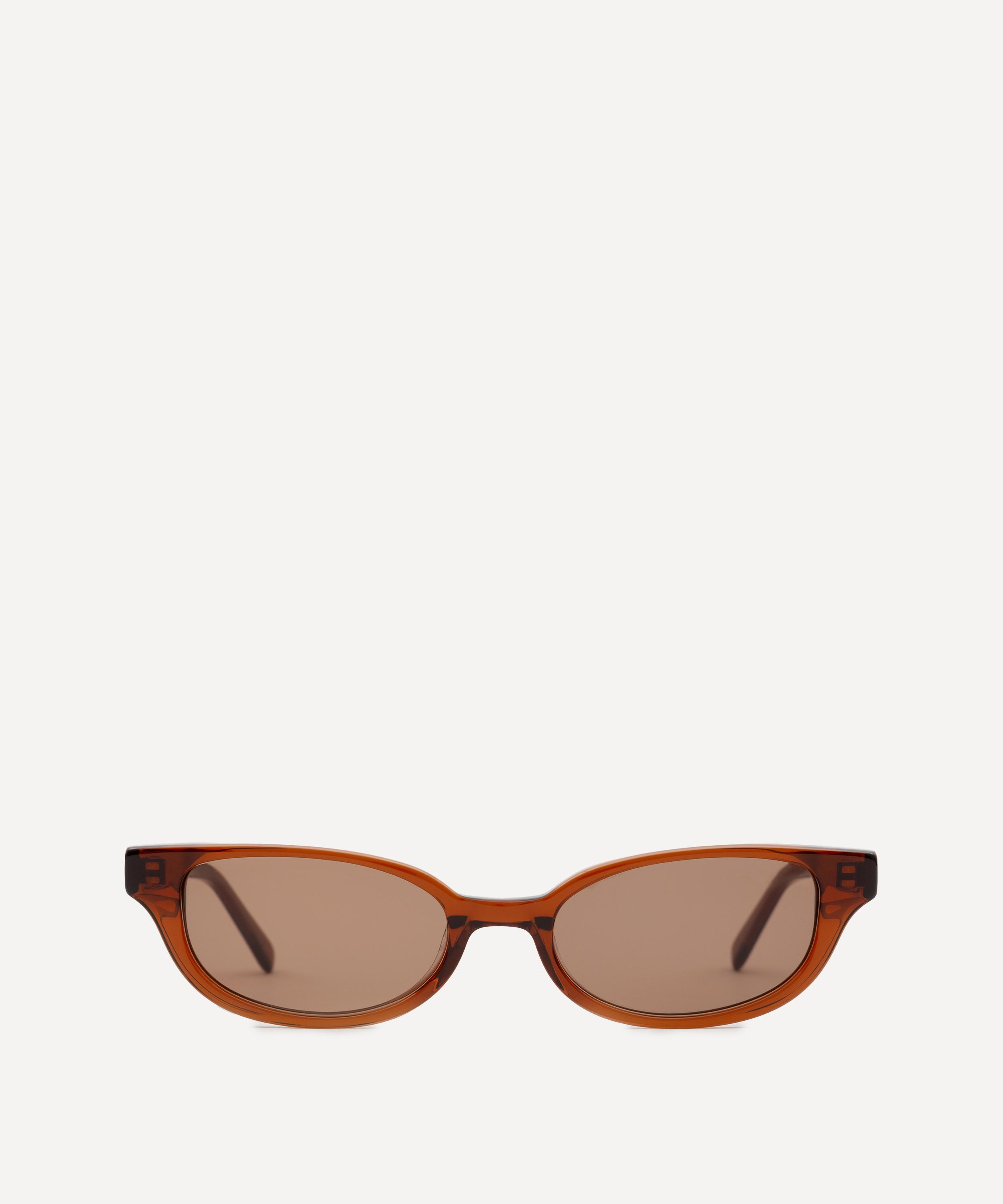 Fitted with brown tinted lenses, these versatile sunglasses are handcrafted from premium cellulose acetate in a transparent rust colourway, and are finished with gold-tone branding to the temple – a sleek style, sure to become a staple of your everyday edit.