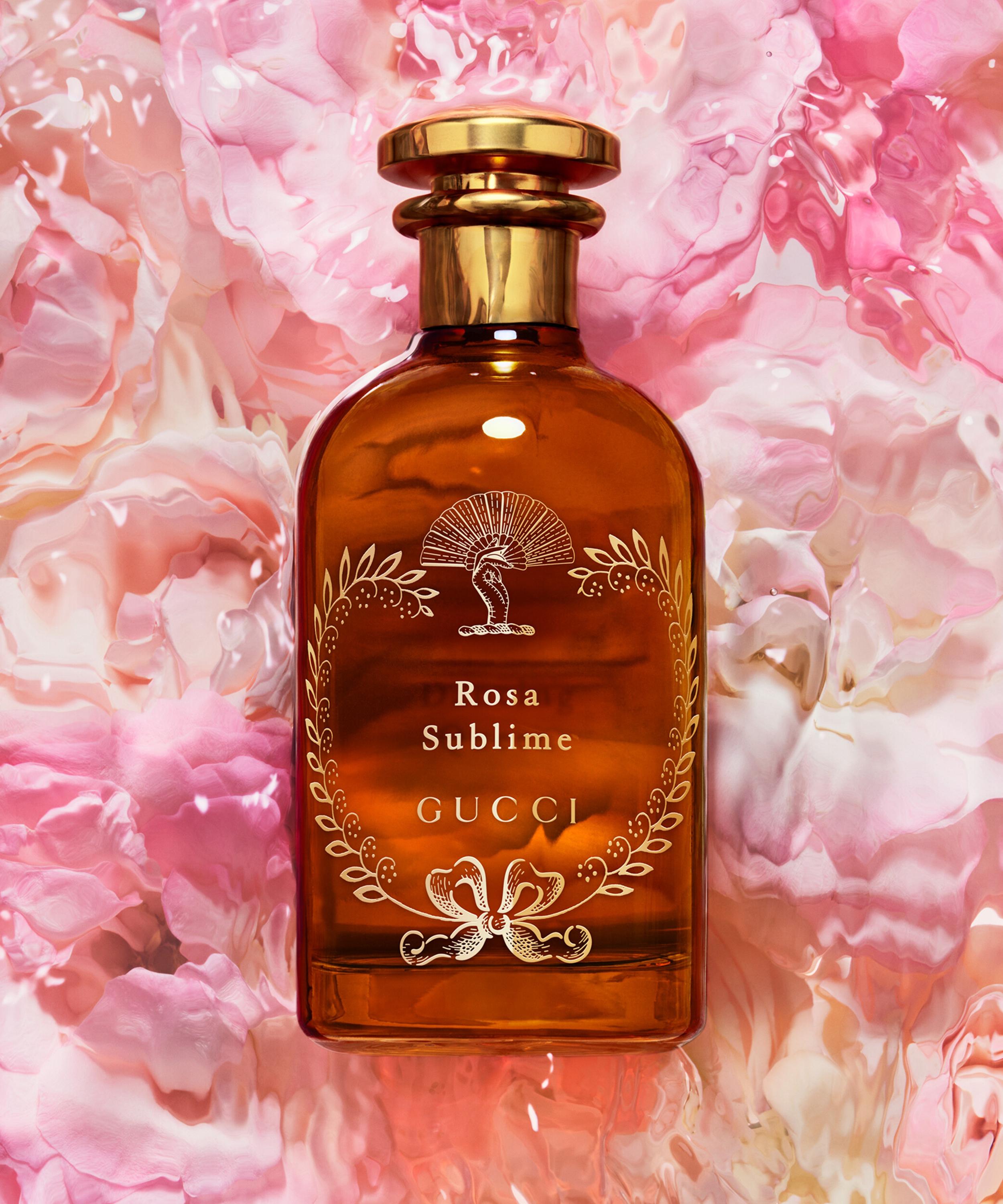 Embodying seductive allure, Rosa Sublime eau de parfum is an ethereal, floral fragrance from Gucci’s haute perfumery line The Alchemist’s Garden.