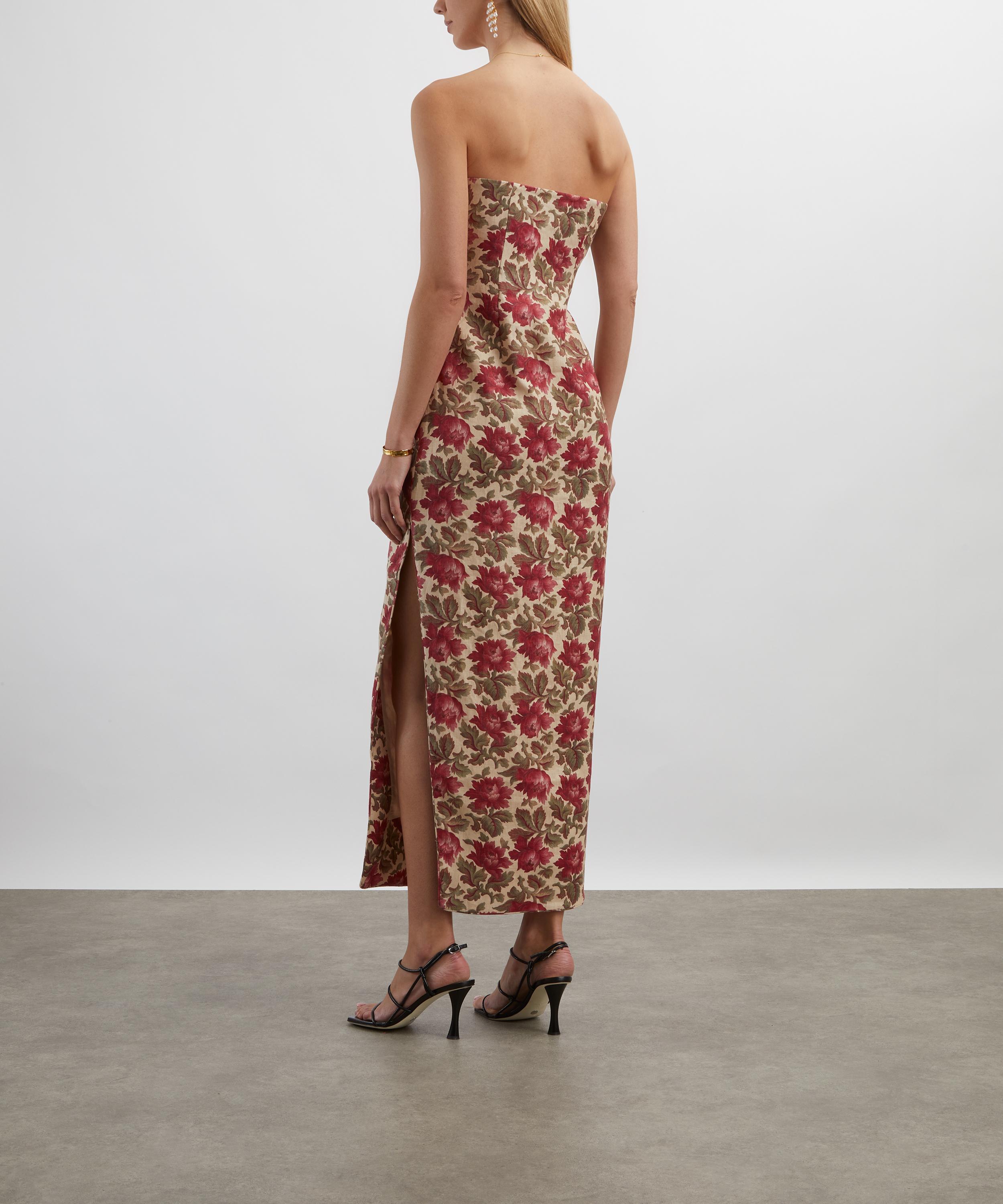 Patterned with antique-inspired florals, the Rosalie Dress is crafted from premium linen and designed with a structured, boned bodice for a flattering, tailored fit. The pencil skirt falls just above the ankle, while a statement side split adds ease of movement - and a hint of allure.