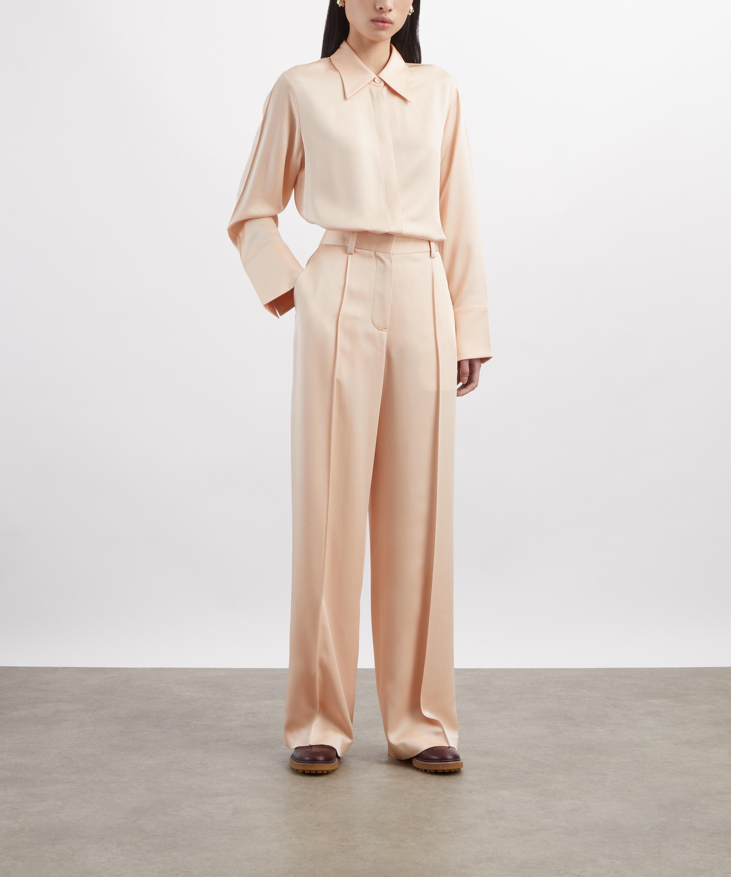 Masterfully crafted in Italy from sleek light-pink viscose satin, this shirt is tailored to a slim, straight fit, featuring subtly dropped shoulders, long sleeves, and a centre-front button closure for a refined finish.