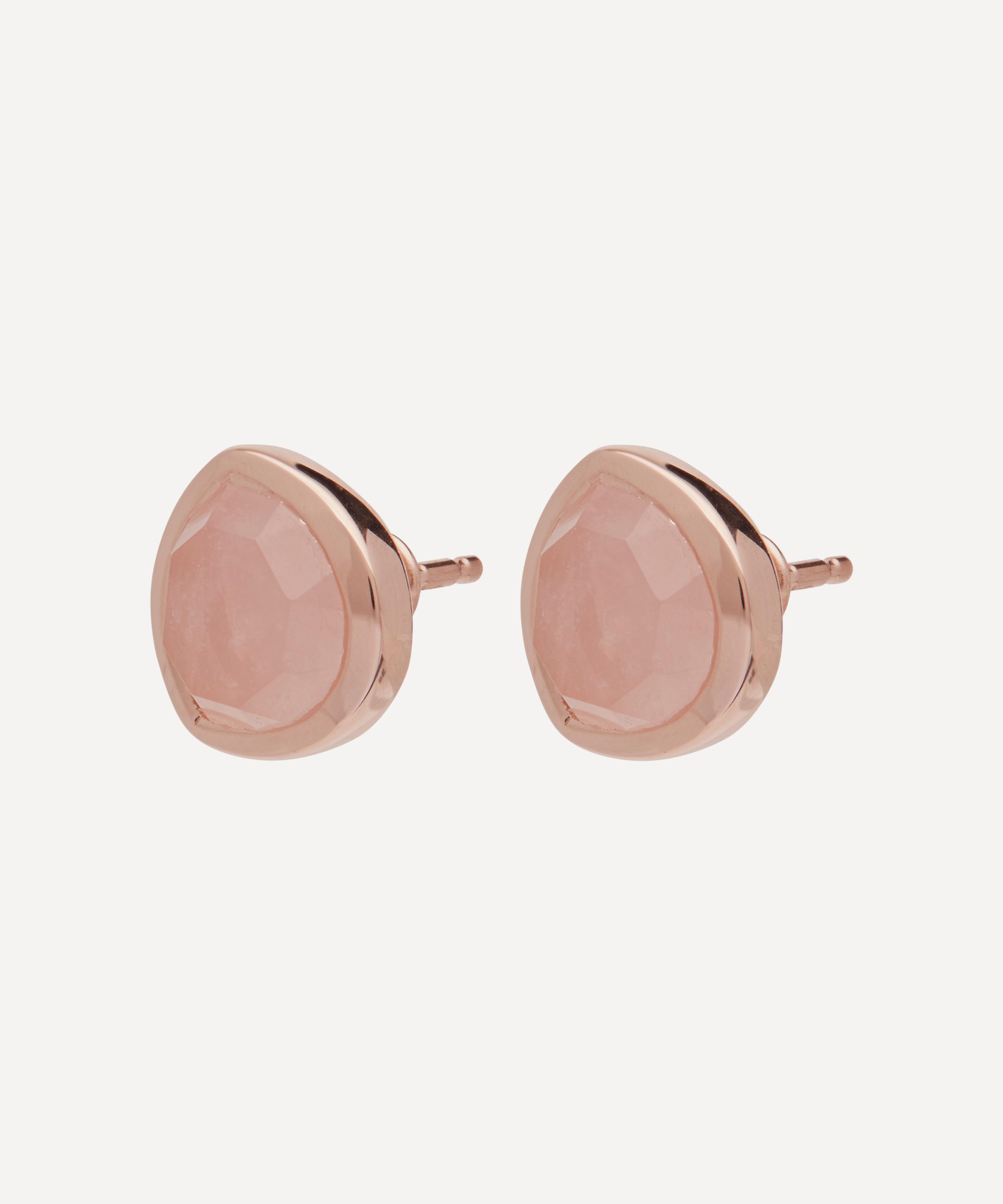 These rose gold plated vermeil silver rose quartz stud earrings are a striking pair from Monica Vinader's Siren collection, inspired by sea-worn treasures and the glamour of Southern Italy.