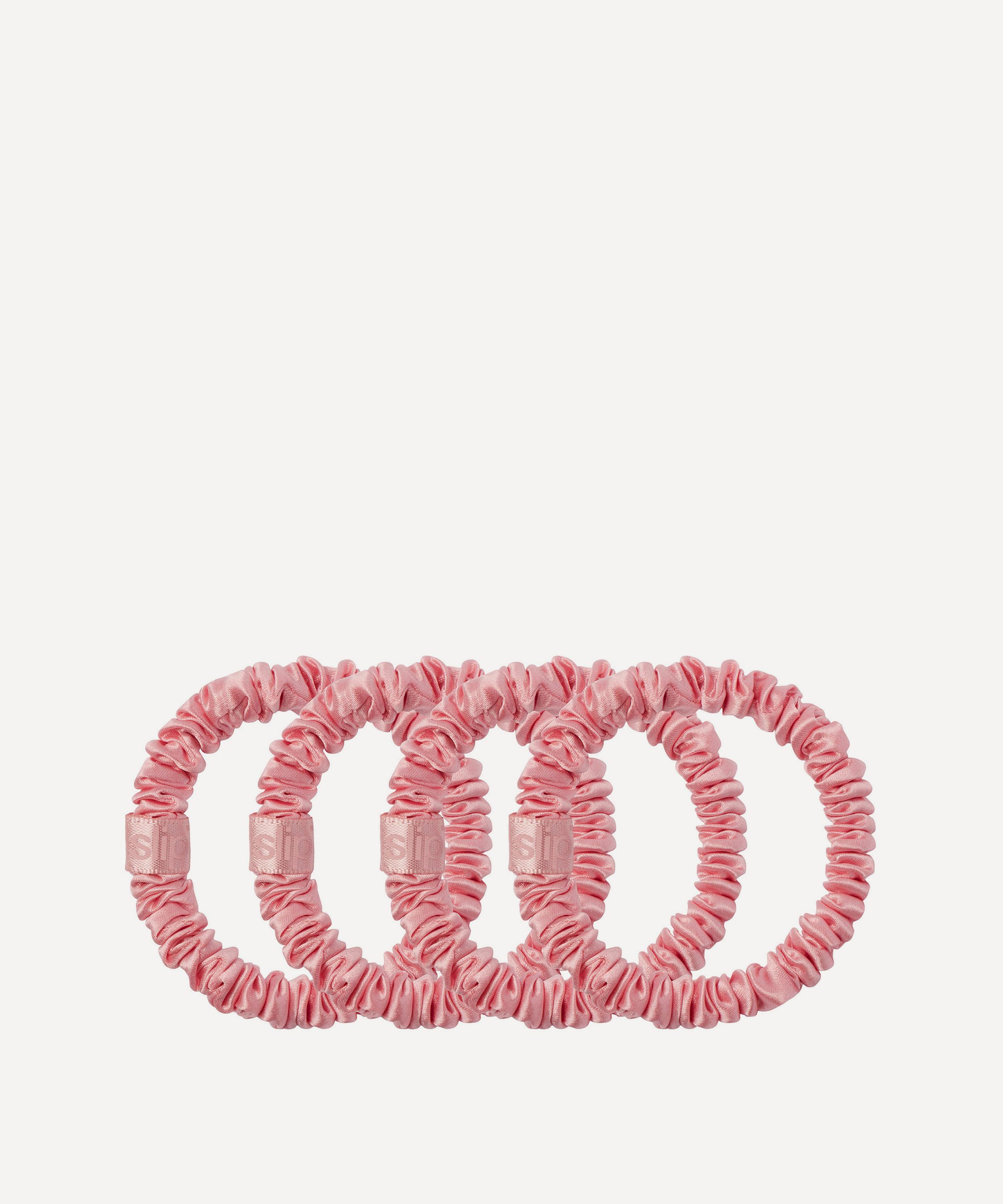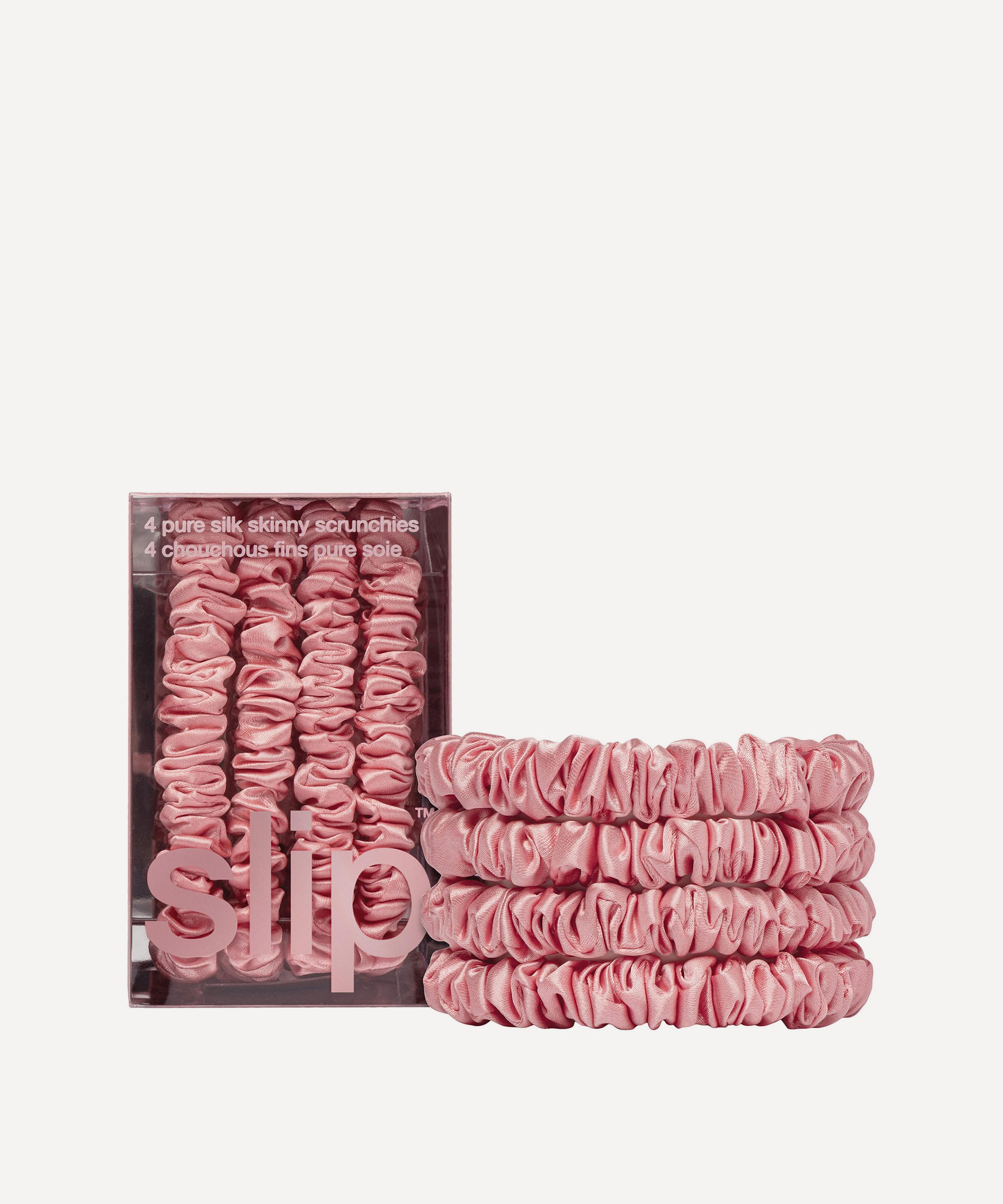 - Set includes: 4 x Skinny Silk Scrunchies in Rose