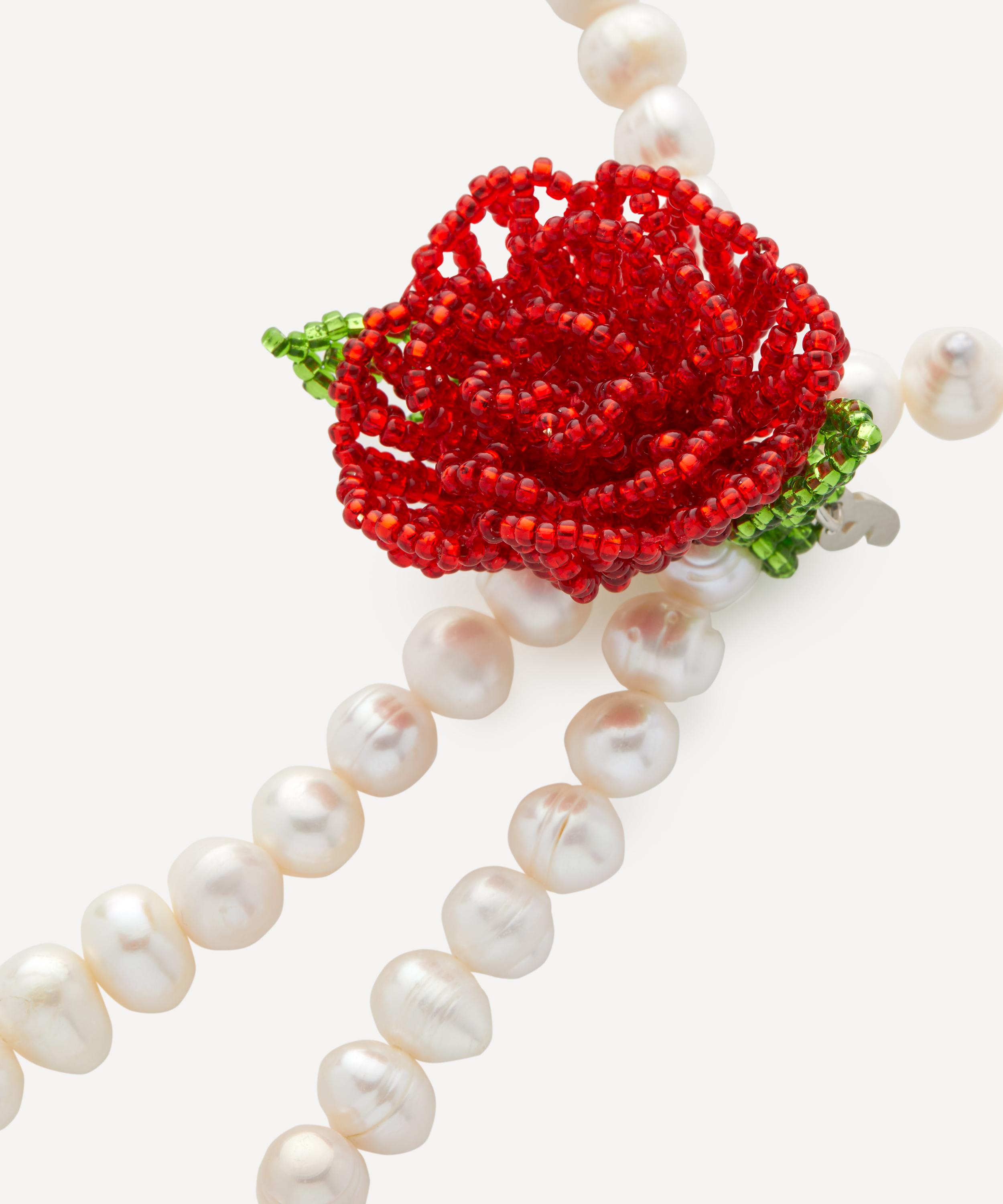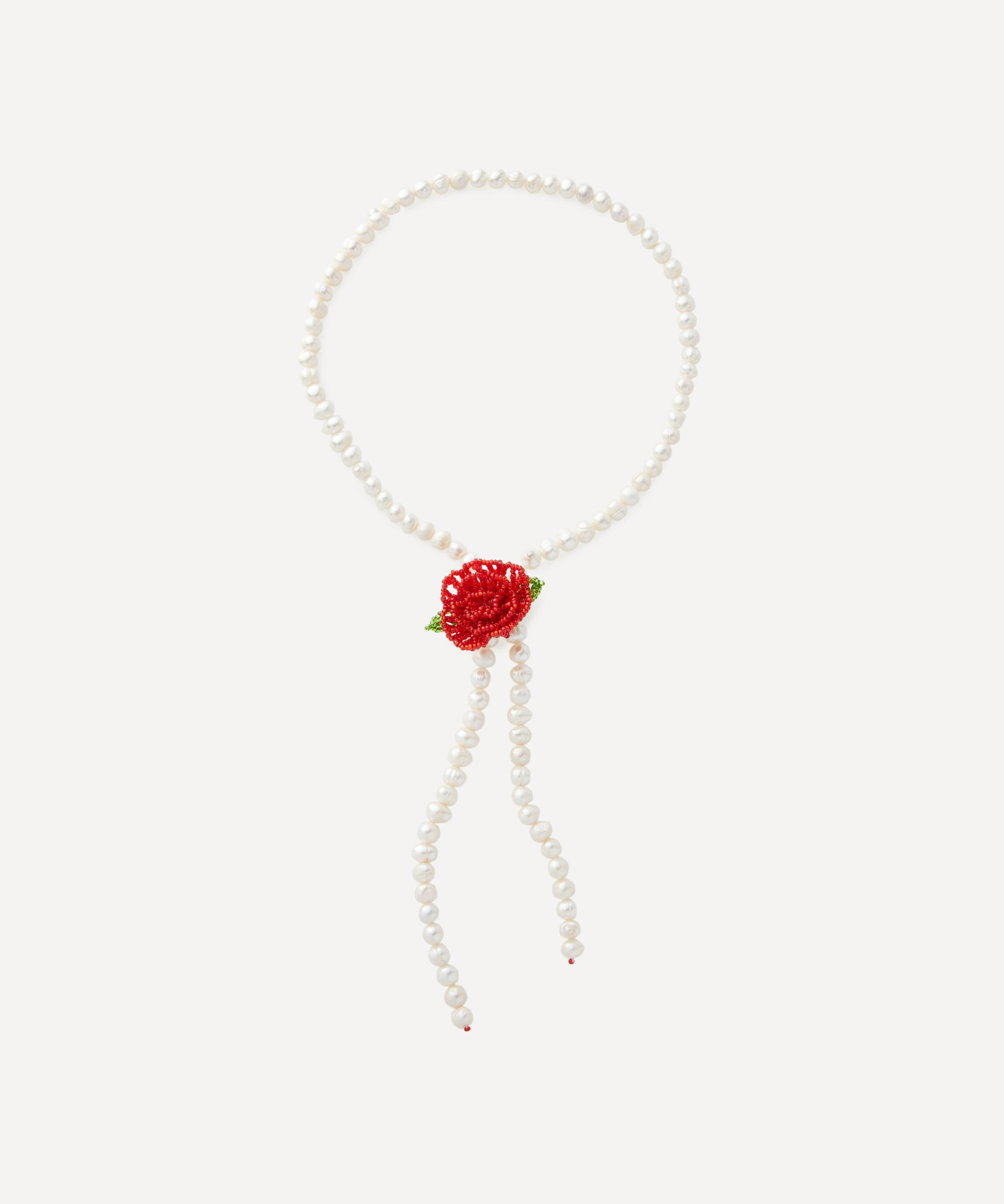 Elevate your accessory collection with this delectable lariat necklace from Pura Utz. Handmade by skilled artisans in Guatemala, it features a Texas tie-inspired string of freshwater pearls with a beaded rose, made entirely from red and green glass beads. Offering a fun and playful way of accessorising, style it solo, or mix and match with other styles from the brand’s fruity assortments.