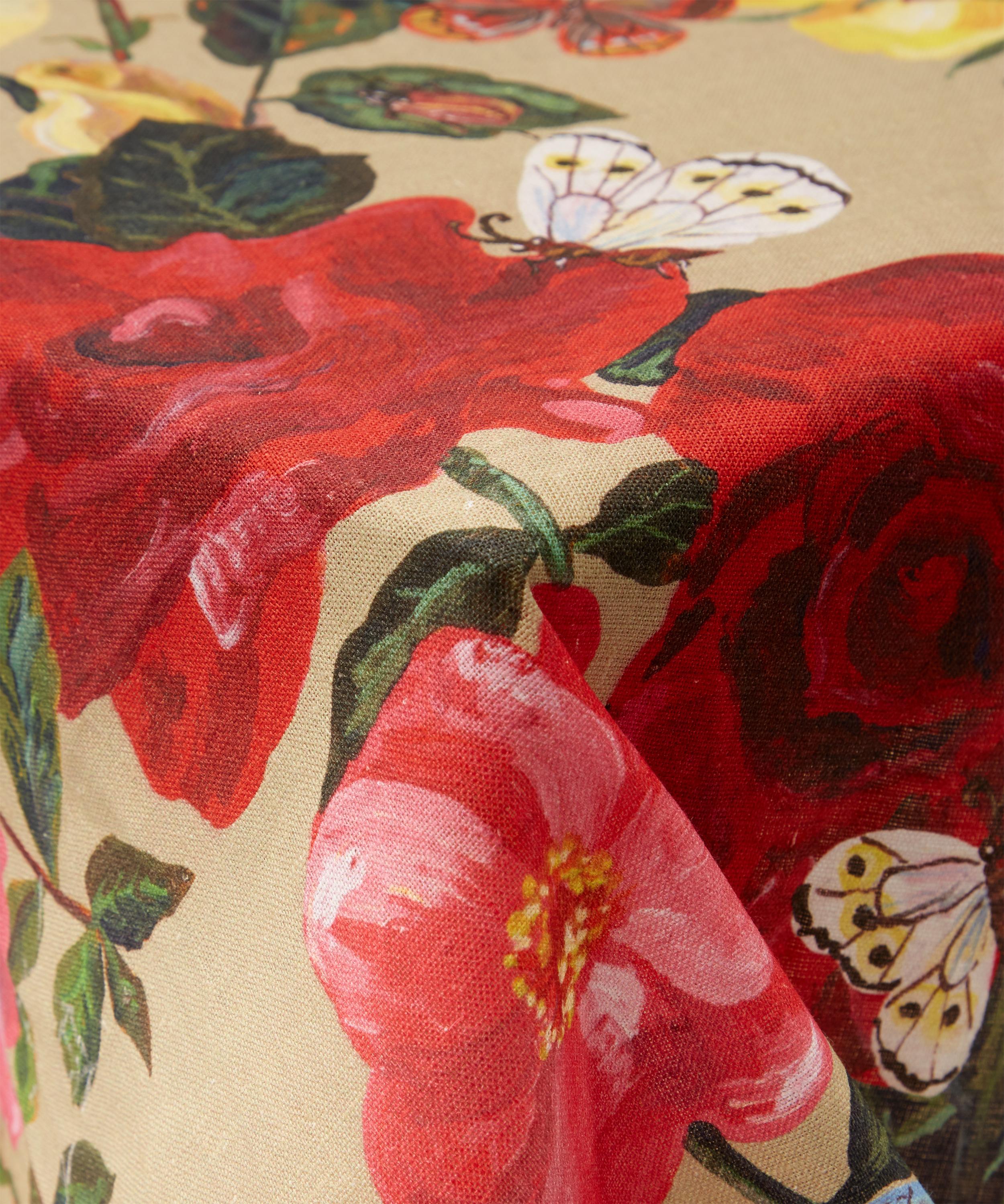 Inspired by the wild British countryside and bird life, this timeless tablecloth features intricate illustrations of four much-loves roses: Bourbon, Tea, China, and Damask. The addition of butterflies and lady birds adds a touch of frivolity – typical of the brands quest for the unique. Crafted from natural linen, drape over a wooden table to bring a bright and botanical aesthetic to your dining curation.