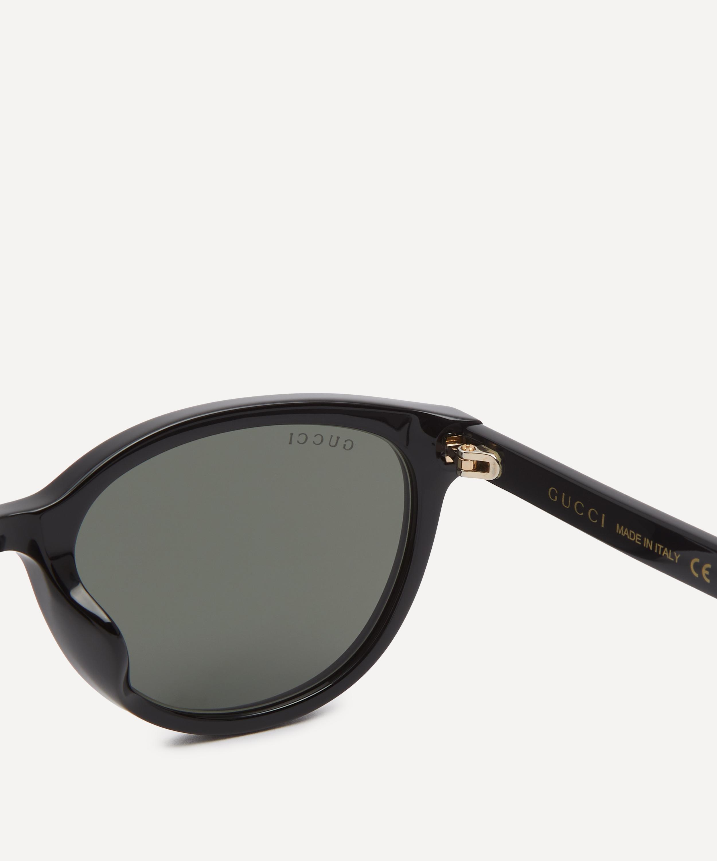 Crafted from glossy acetate in a timeless black colourway, these elegant sunglasses feature a sleek round silhouette fitted with grey tinted lenses, and are complete with the Italian fashion house's logo at the temples for an authentic finish.