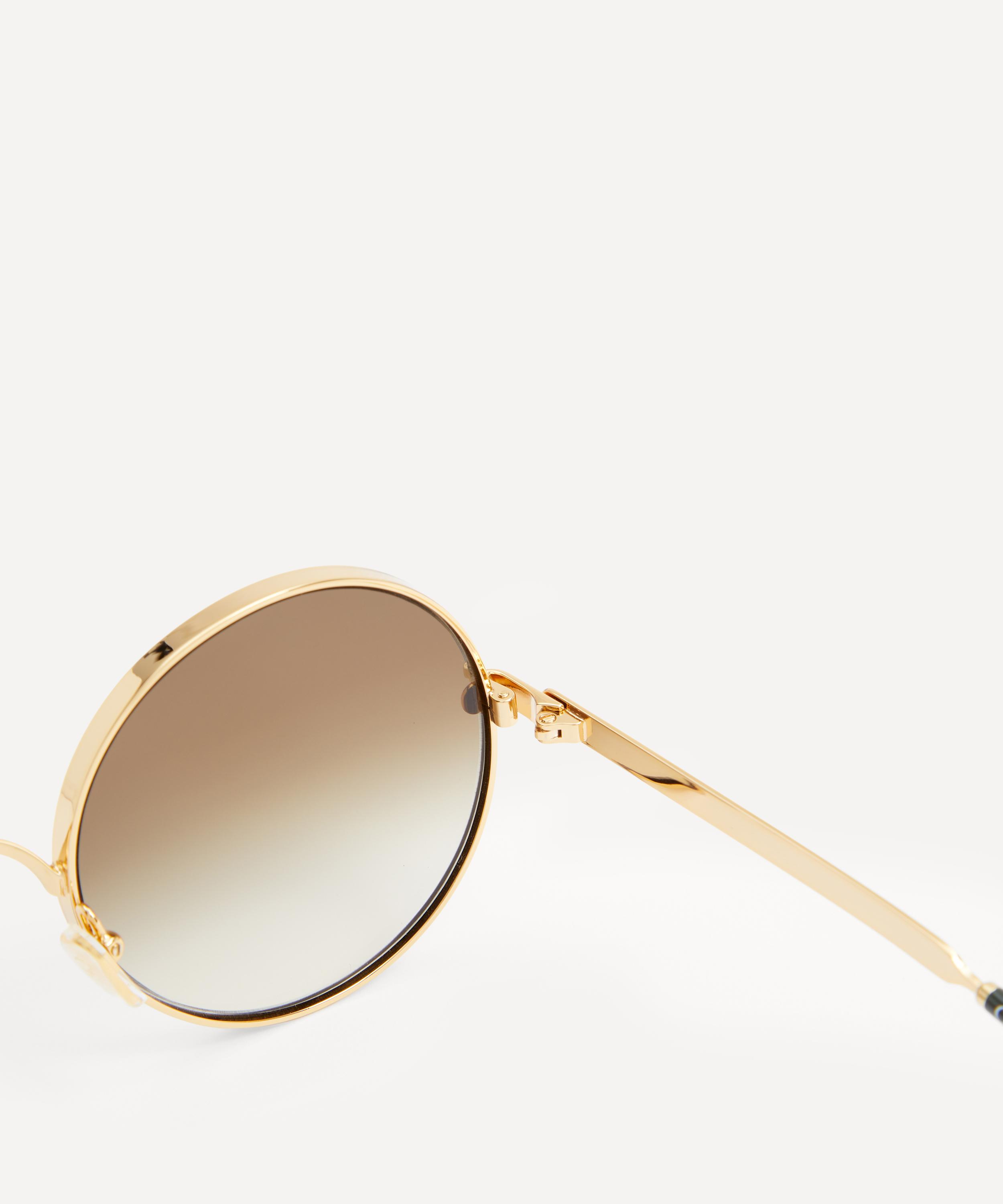Designed for a large, round frame, these elegant sunglasses boast a timeless gold-tone colourway, and are fitted with tinted lenses that further accentuate the style's glamorous, vintage flair. Complete with acetate tips for added comfort, they make for an ultra-chic finish to your curated looks.
