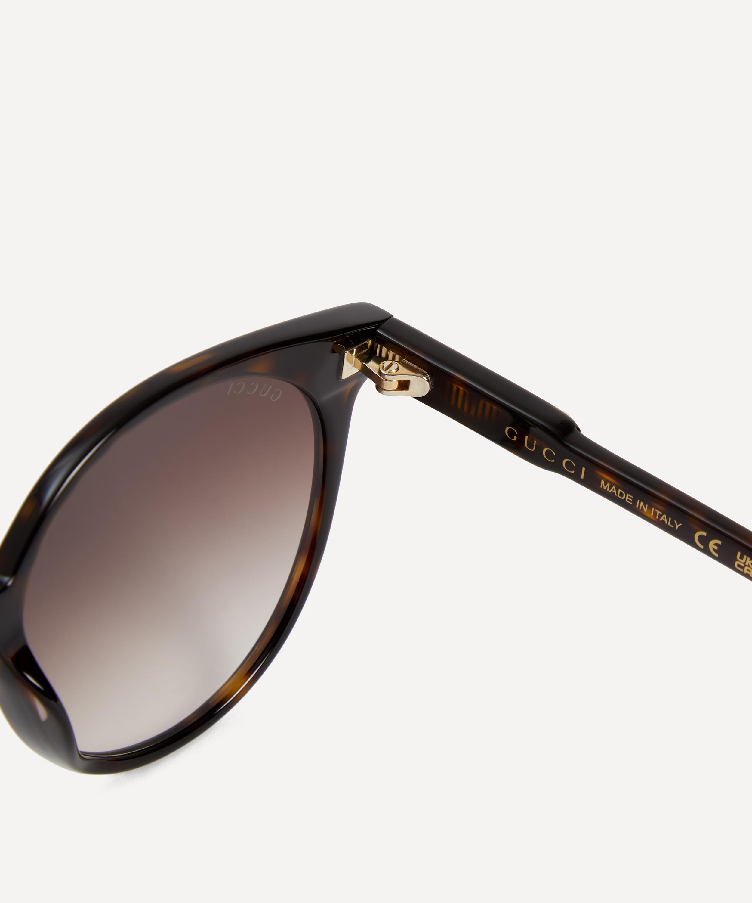 Revive your look with these round sunglasses from Gucci for that effortless cool your outfit craves. Spotlighting the brand’s penchant for vintage-inspired frames, they feature a round silhouette – ideal for oval and square-shaped faces - crafted from Havana acetate and brown-tinted lenses to shade and protect your eyes from glare and UV light. An accessories staple to bring out year-round, this pair is finished with a subtle brand logo to the temples and come with a protective case and cleaning cloth to preserve peak conditions.