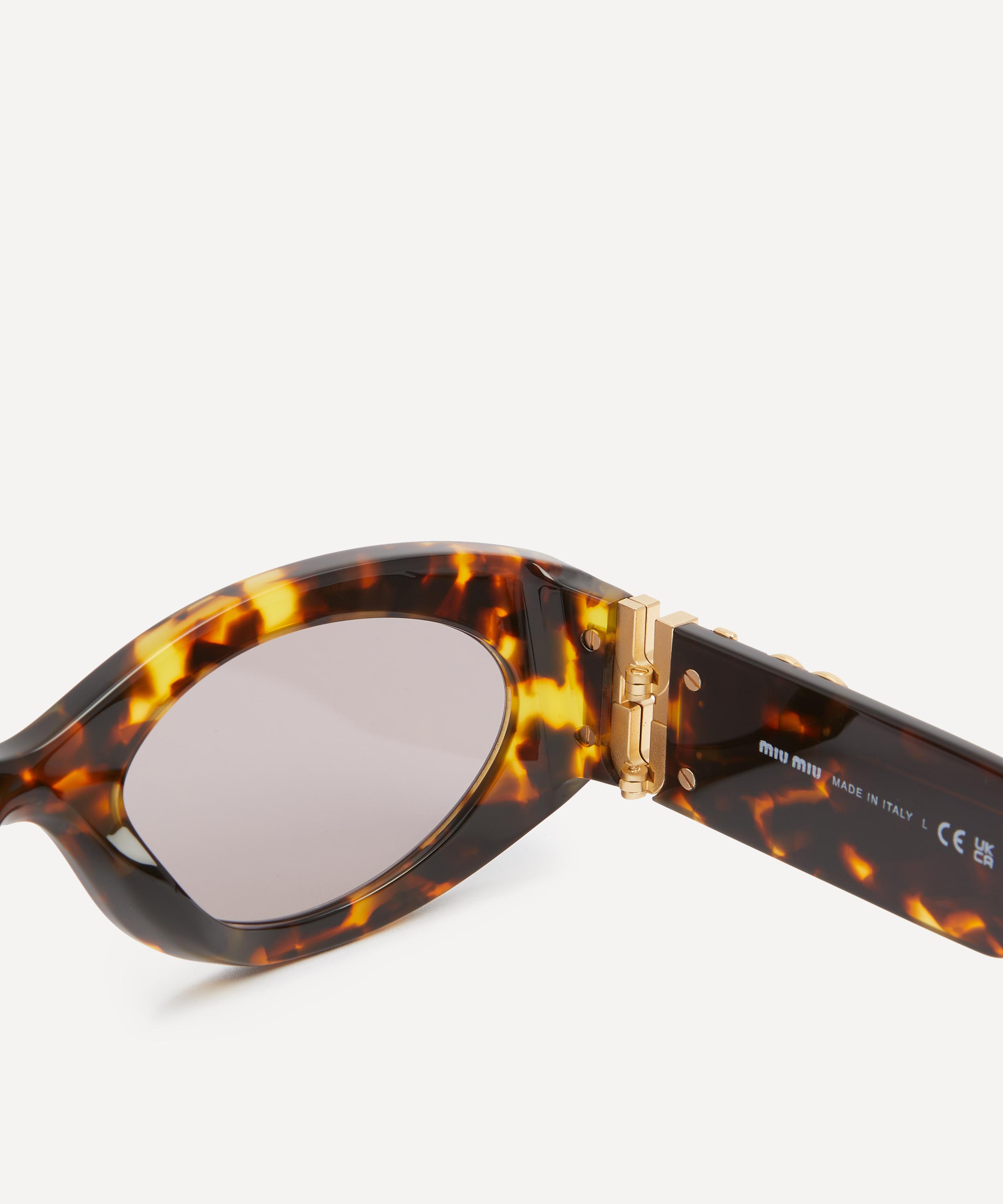Heighten the impact of any attire with these round sunglasses from Miu Miu. Expertly crafted from Havana acetate, to create a statement pair that instantly draws the eye, these sunnies are fitted with a saddle nose bridge and brown gradient lenses to shade and protect your eyes from UV light. Complete with the signature branding at the temples, they make for an ultra-chic finish to your curated looks.