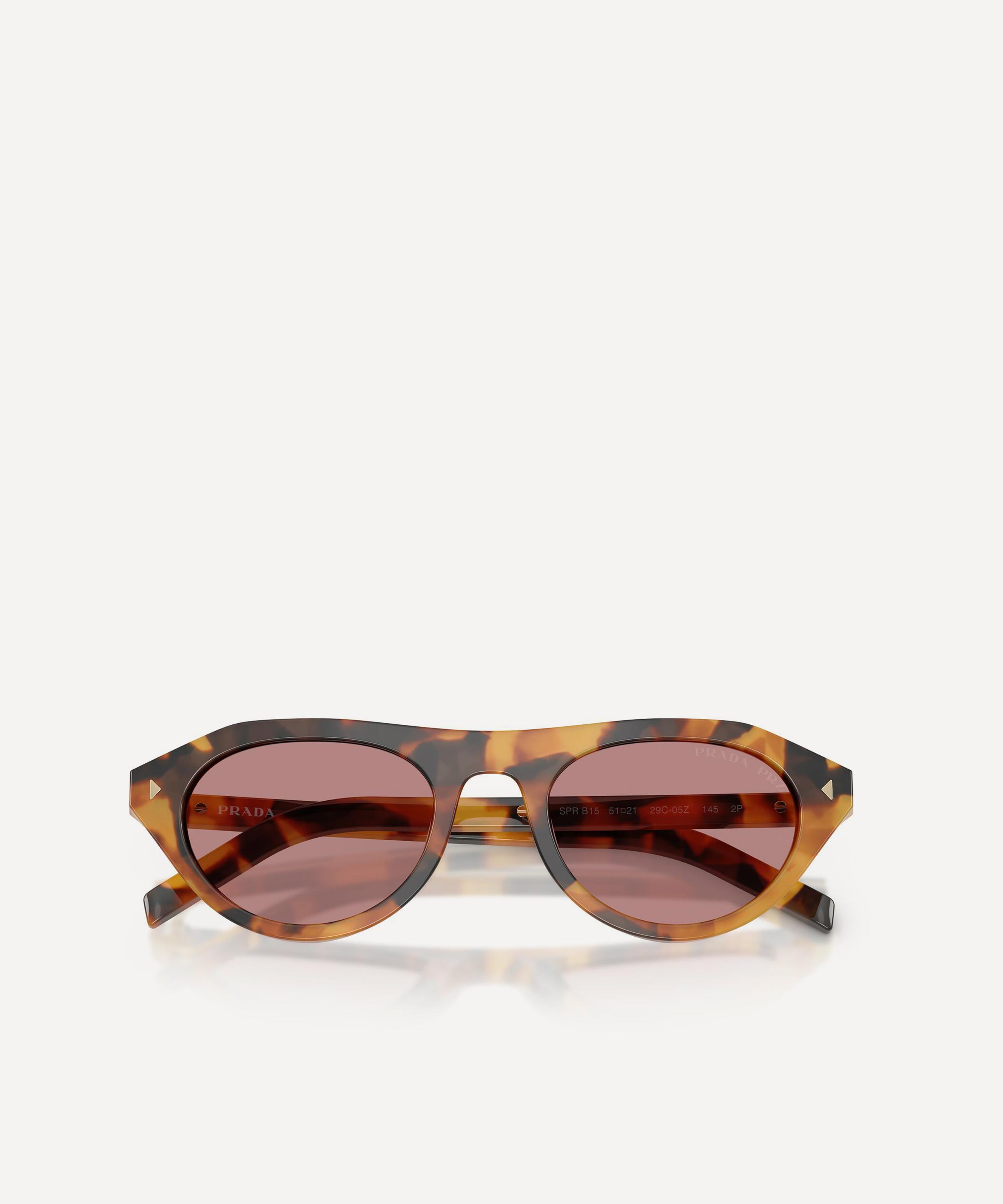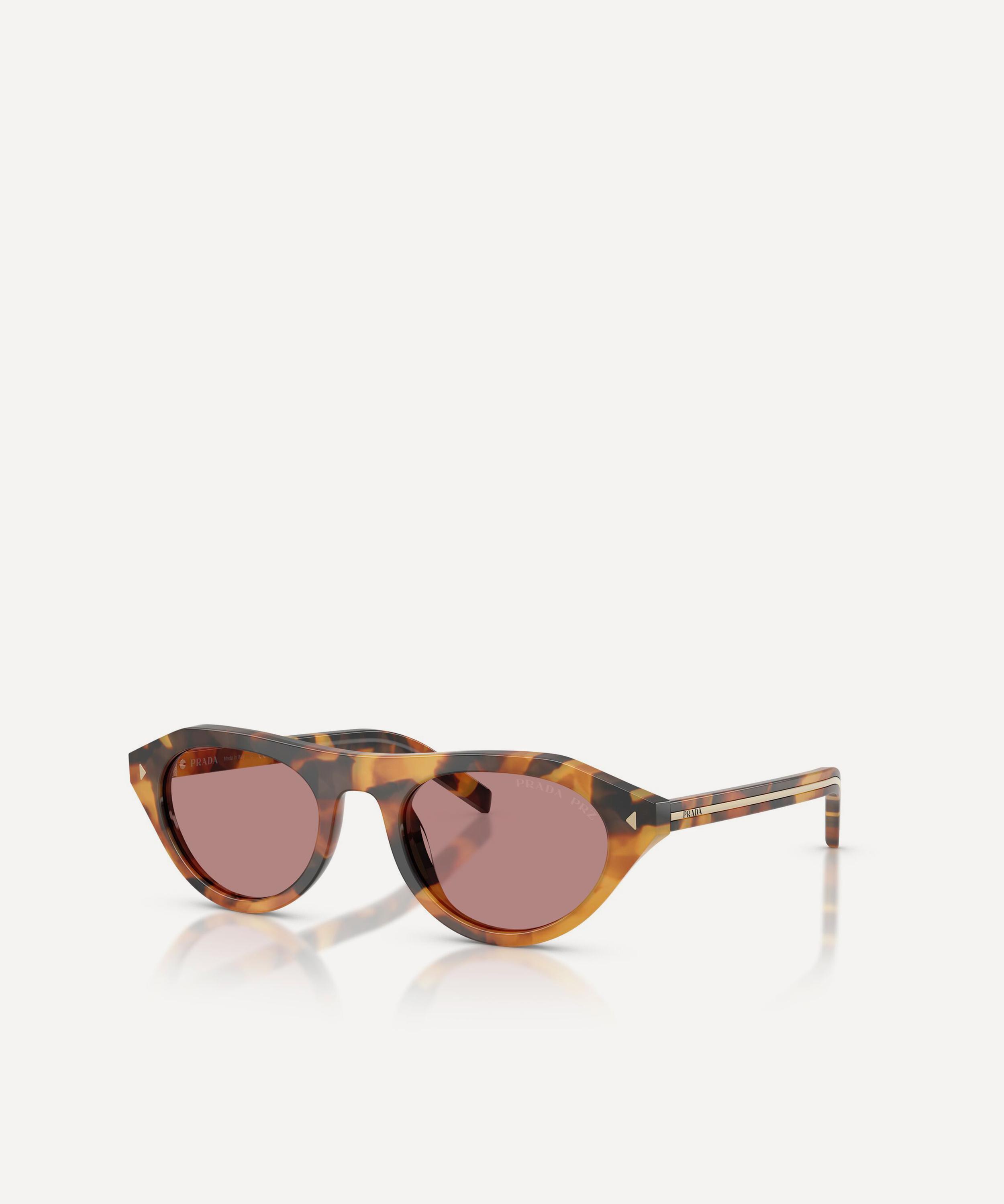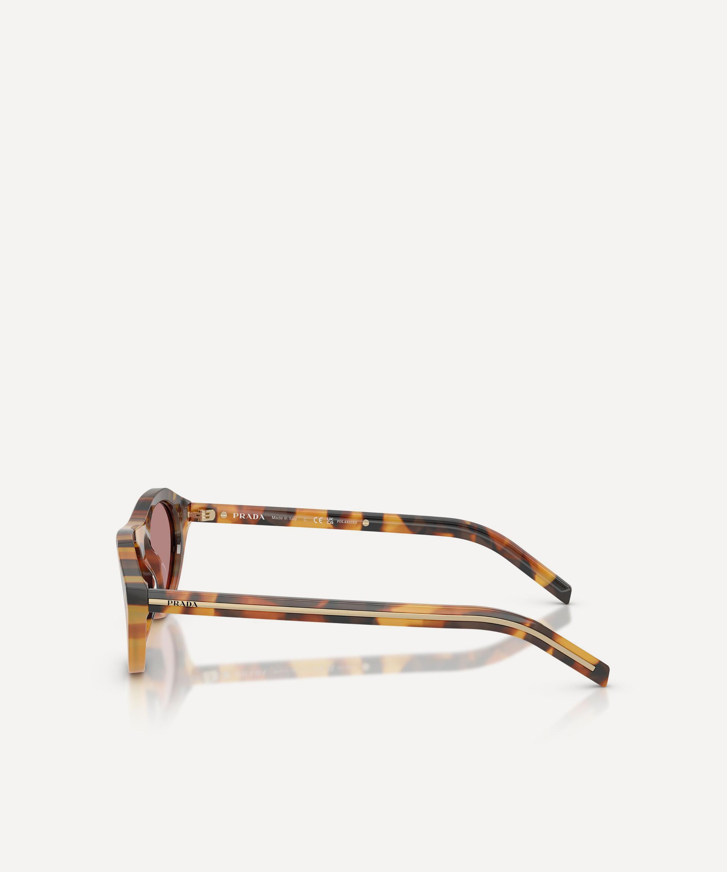 Invigorate any attire with Prada’s round sunglasses for a highly contemporary flair. Expertly crafted from premium acetate in a tortoise colourway, this stylish pair feature an irregular silhouette with a comfortable saddle nose bridge and dark-pink lenses to give you a clearer view on sunny days whilst protecting your eyes from UV light. Finished with a subtle brand logo at the temple for a punctuating finish, throw them on whenever you need a statement boost.