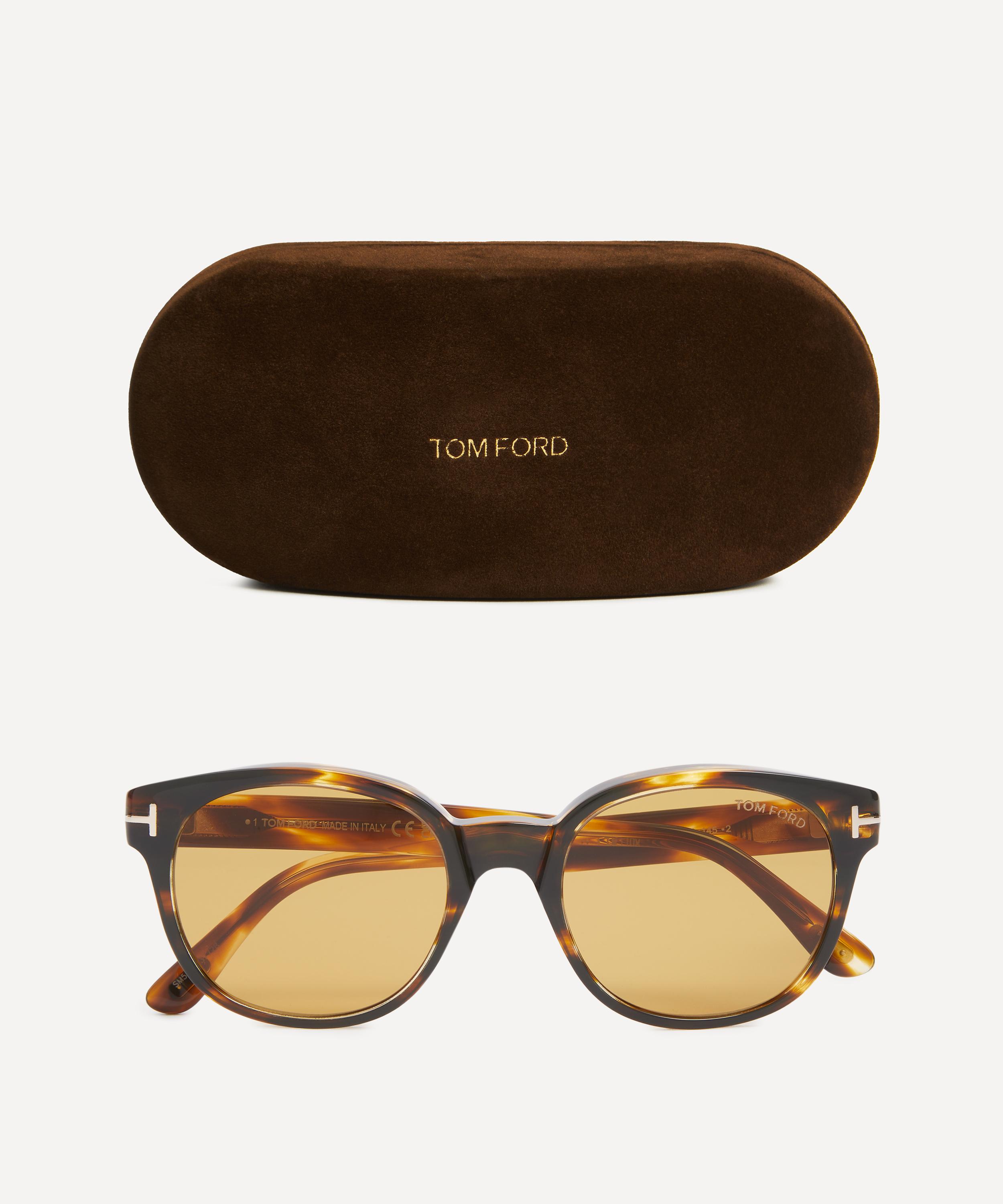 Refresh your sharp sartorial edit by choosing Tom Ford’s round sunglasses. The house’s retro-inflected design cues are evident in the smooth, streamlined silhouette, which are artfully shaped from shiny tortoiseshell acetate. The pair is fitted with brown tinted lenses and signature metal T-logo inlays – lending further refinement to daily dressing.