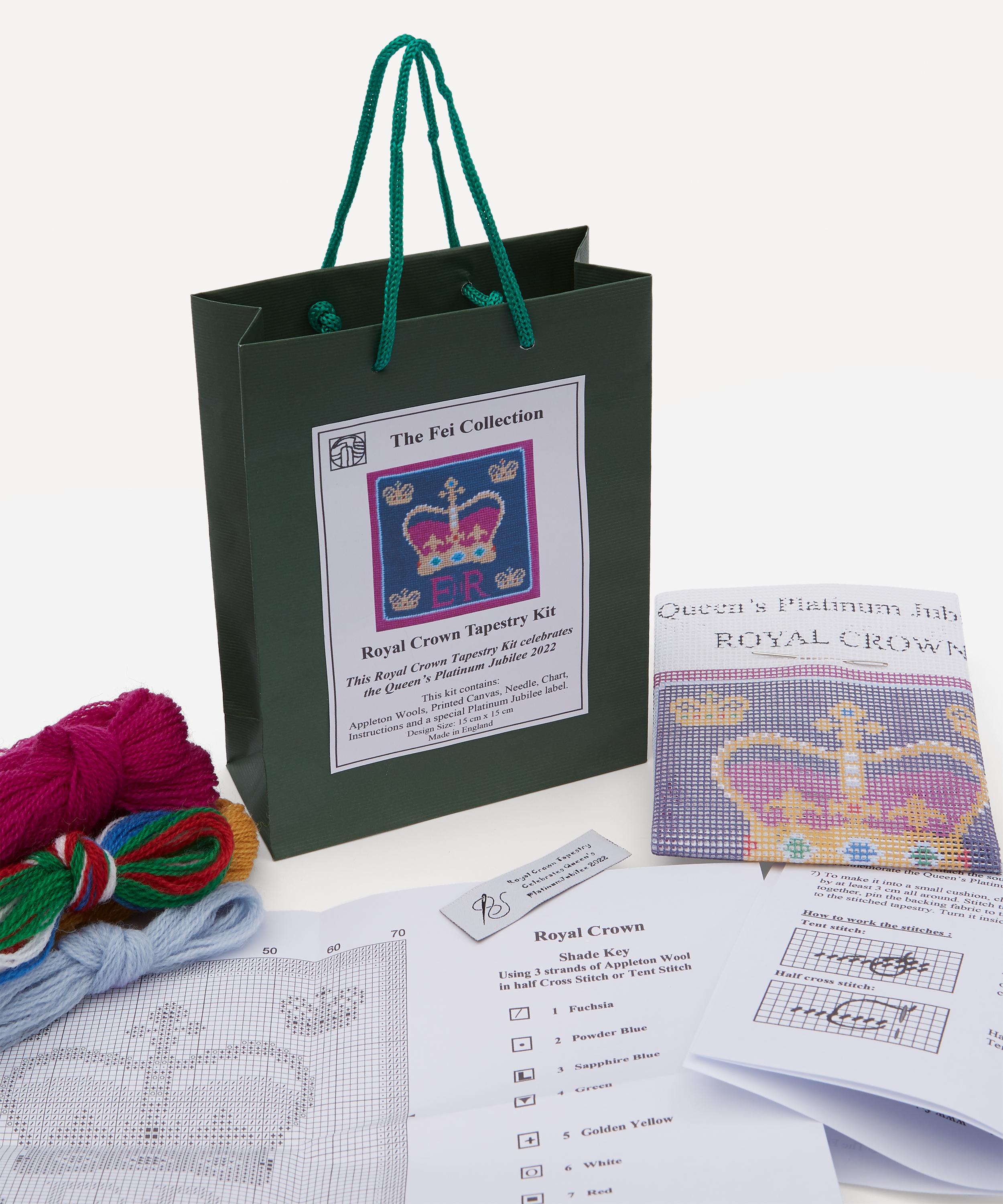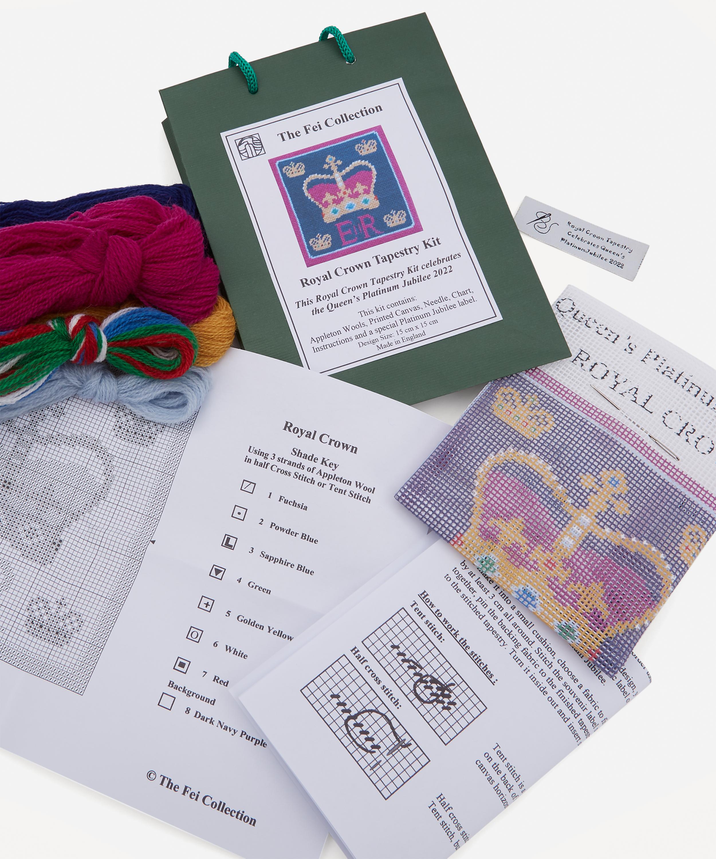 - Includes: Appleton Wool, Printed Zweigart Interlock canvas (12 hpi), a tapestry needle, chart, instruction sheet and a special Platinum Jubilee label