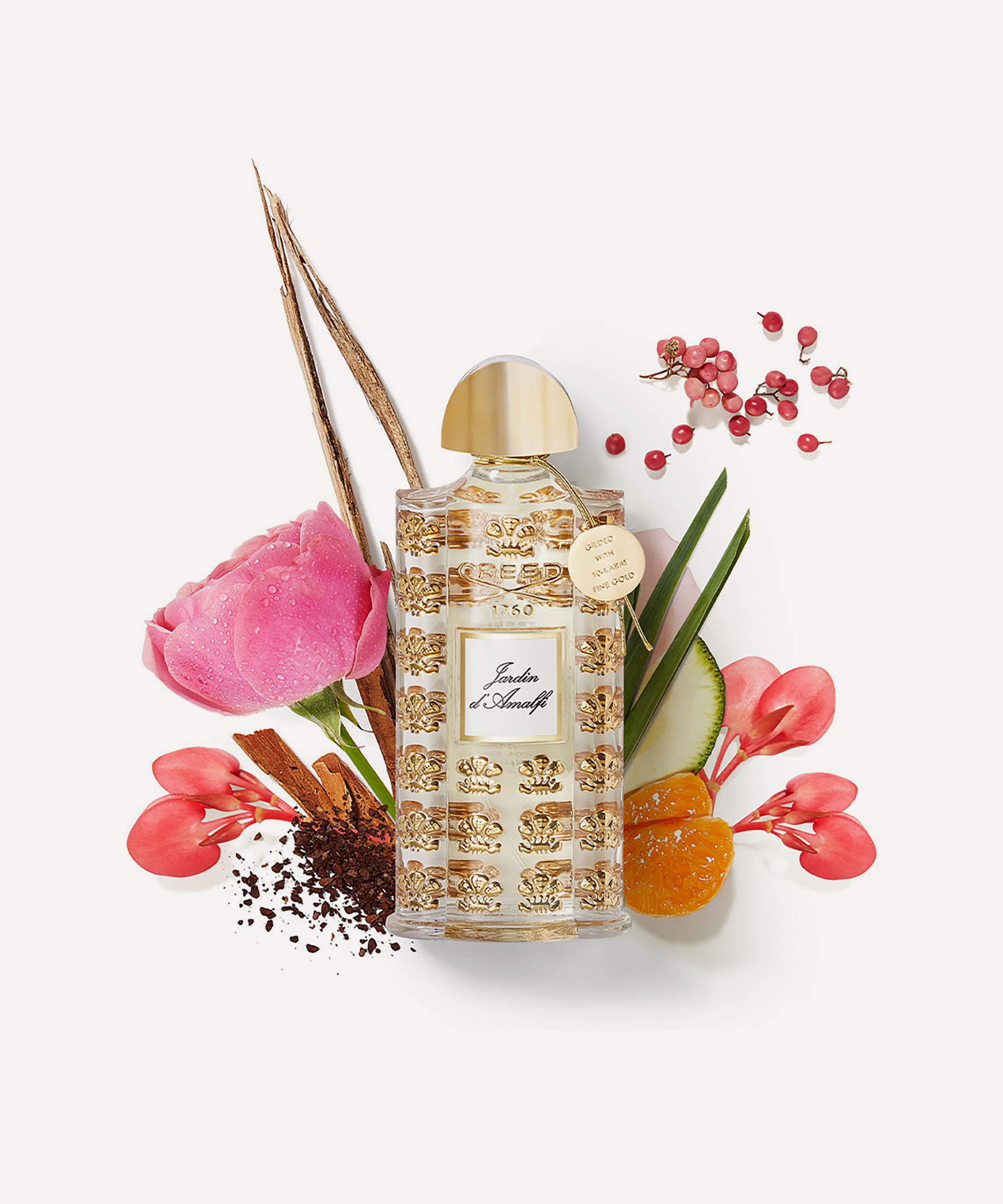 Creed's Royal Exclusives Jardin d'Amalfi fragrance is a shimmering scent of citrus fruits, precious spices, wood, rose, vetiver and musk that pays homage to la dolce vita – a cruise up the Amalfi Coast and its breakthtaking landscape, balmy air and iridescent seas.