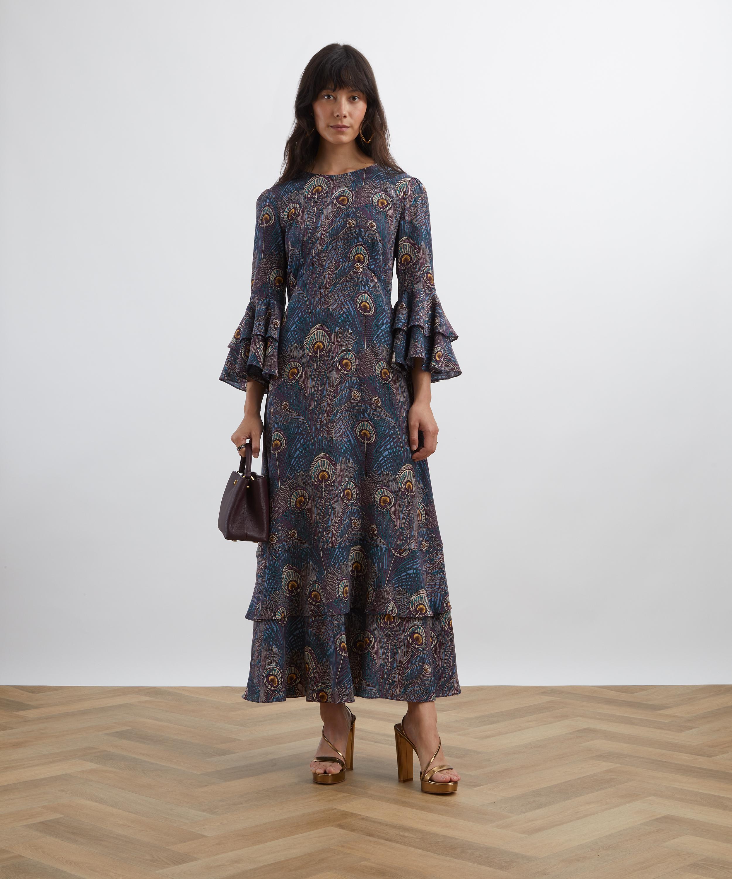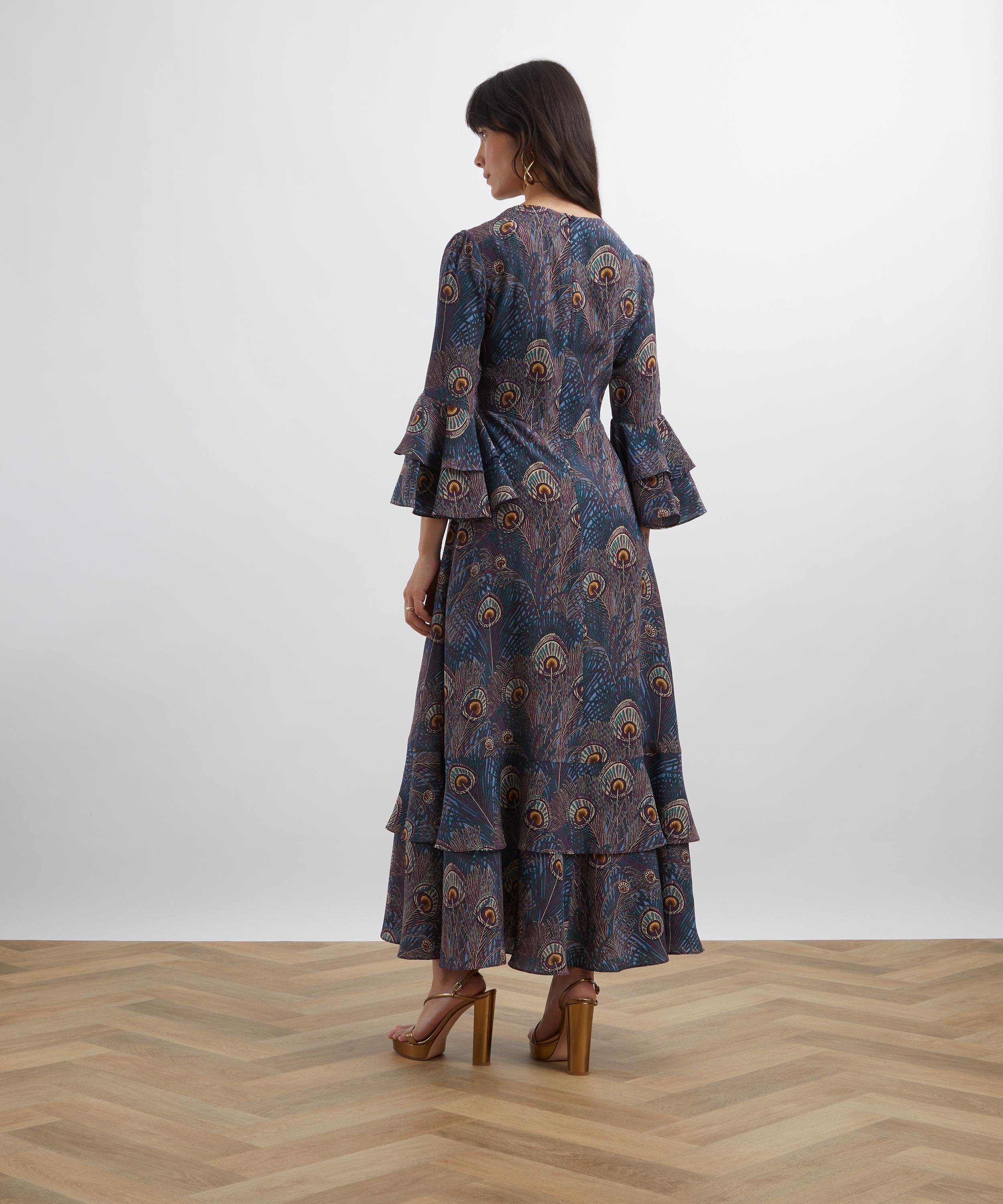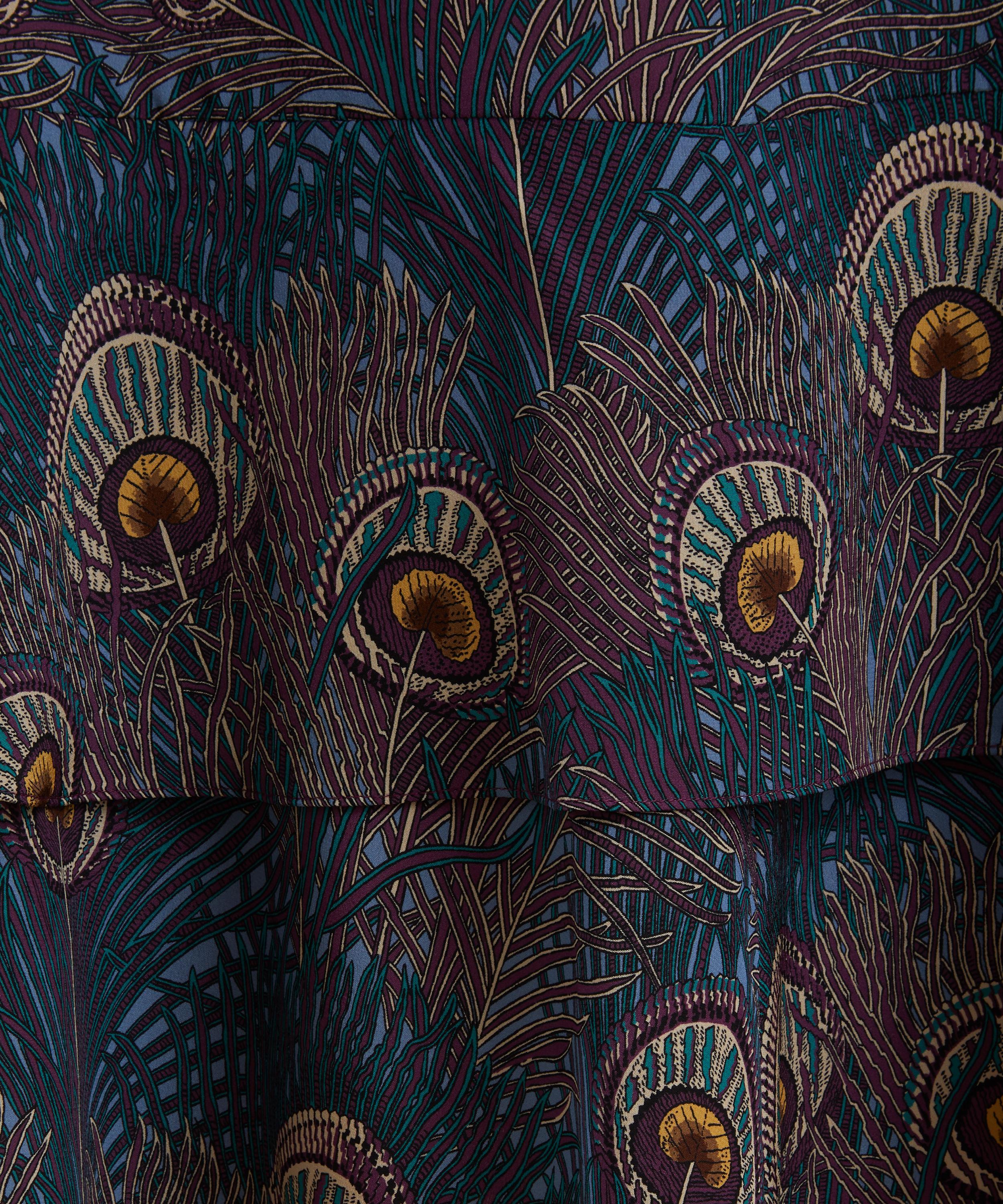 Printed in Italy at the Liberty Printing Mill, this stunning piece is brought to life by our Royal Hera print. Credited to an 1887 design by Arthur Silver, Hera print has been a Liberty favourite since the mid-1890s when it was first printed as a furnishing fabric. A joyous celebration of the magnificent peacock feather, Royal Hera has been redesigned into an intricate, larger-scale composition, and hued in a range of complementary colourways.