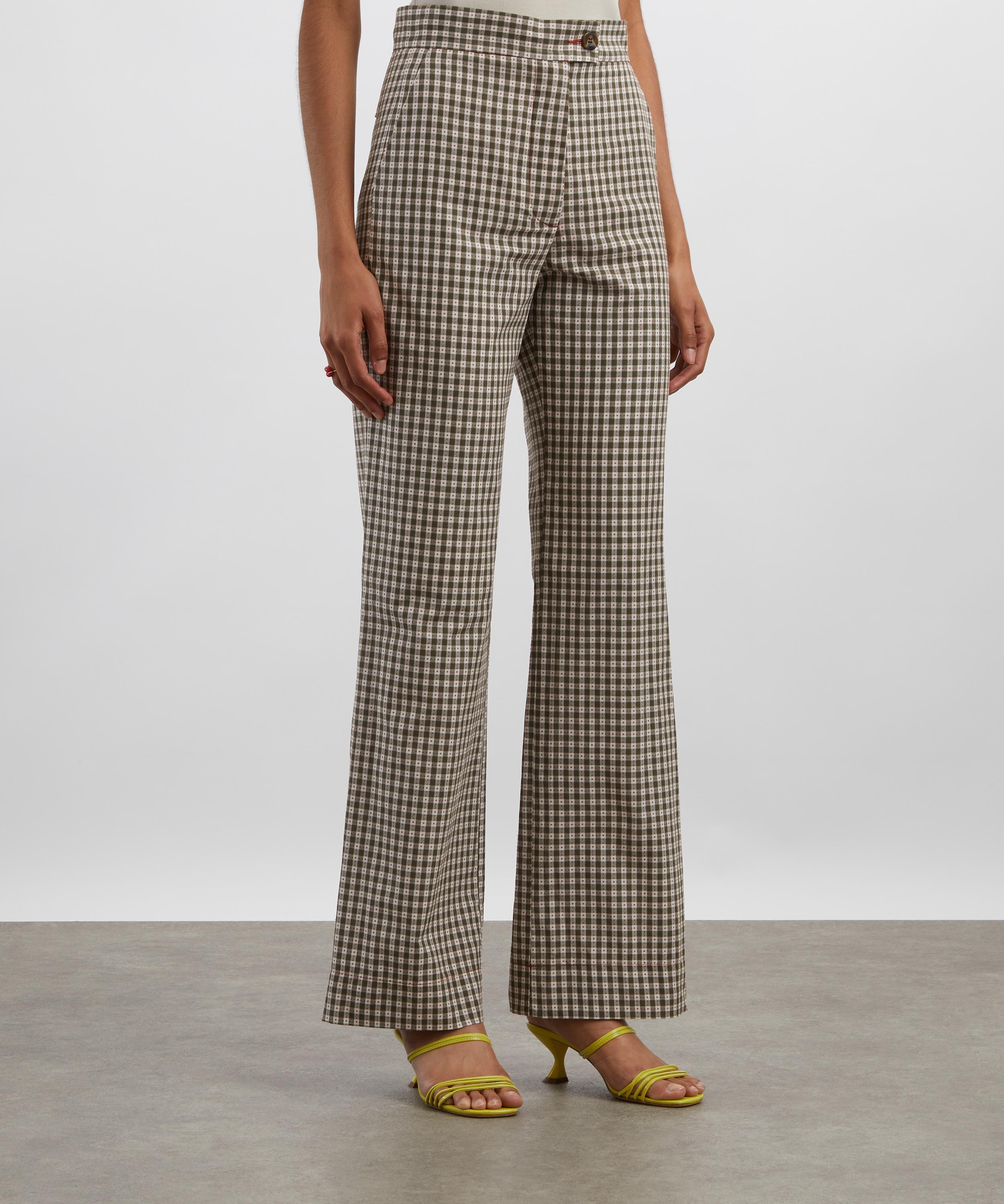 - Cotton khaki gingham trousers