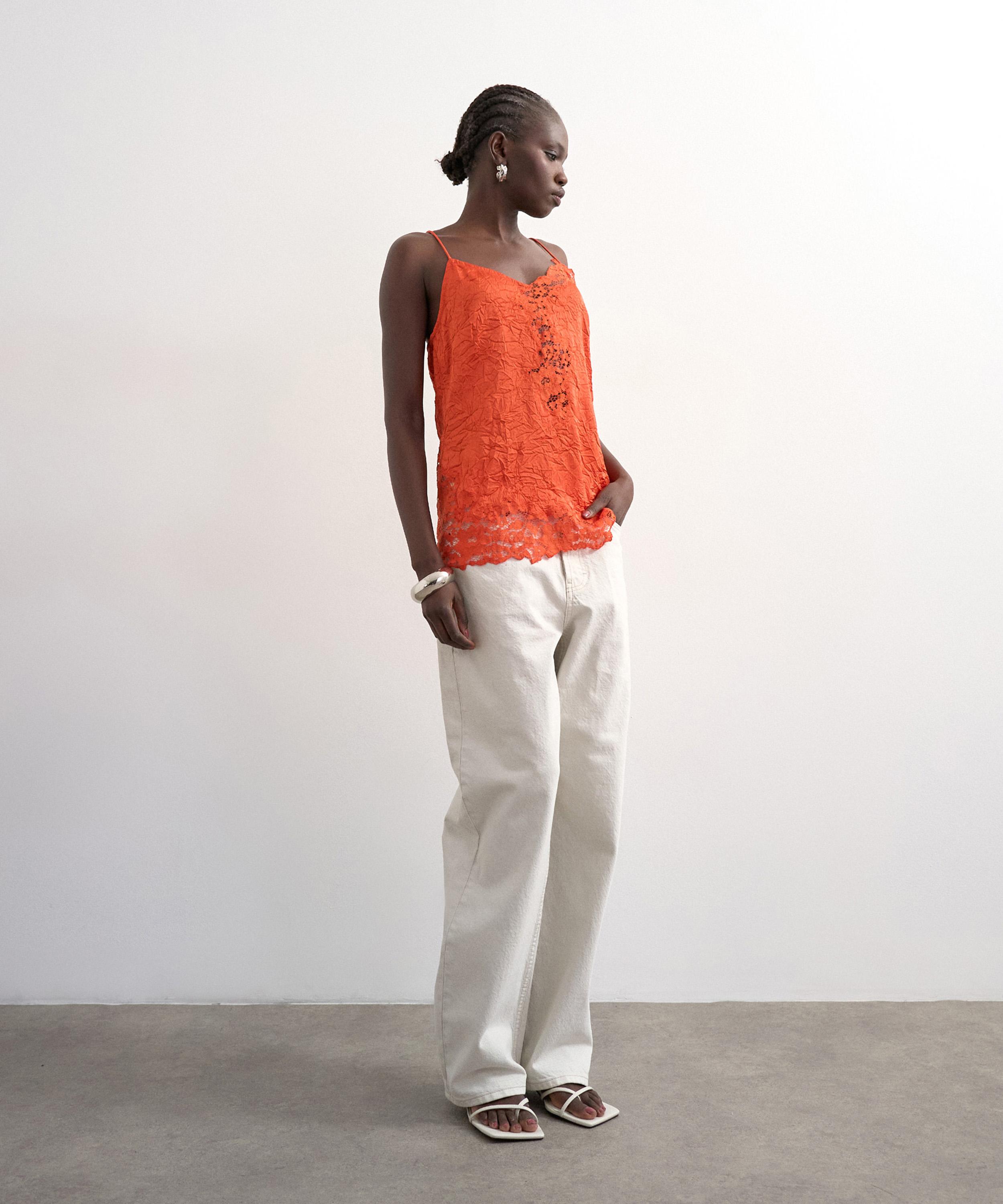 The Rust Crinkle Satin Lace Insert Top is part of the exclusive Liberty x TOPSHOP residency, marking TOPSHOP’s highly anticipated relaunch at Liberty.