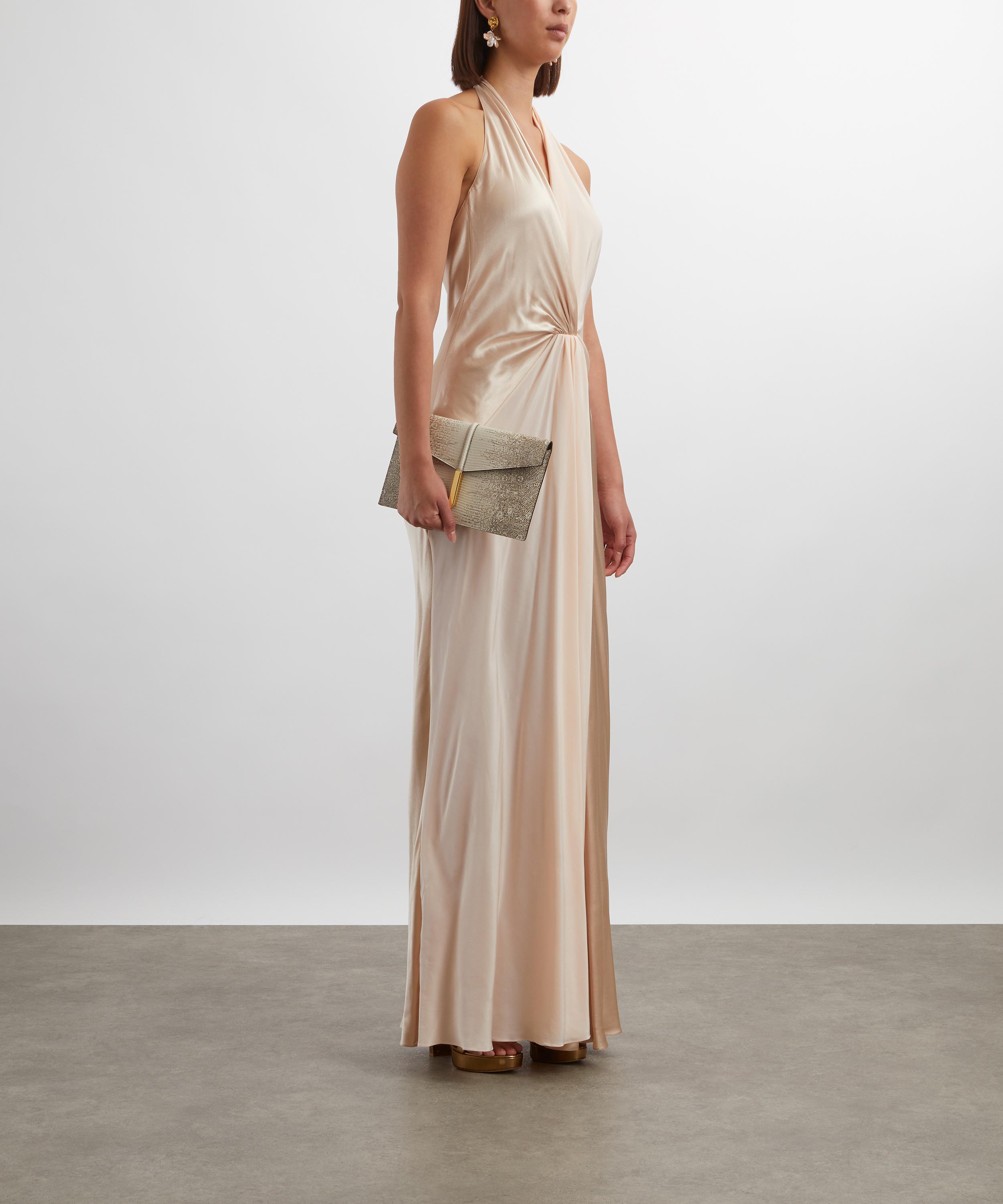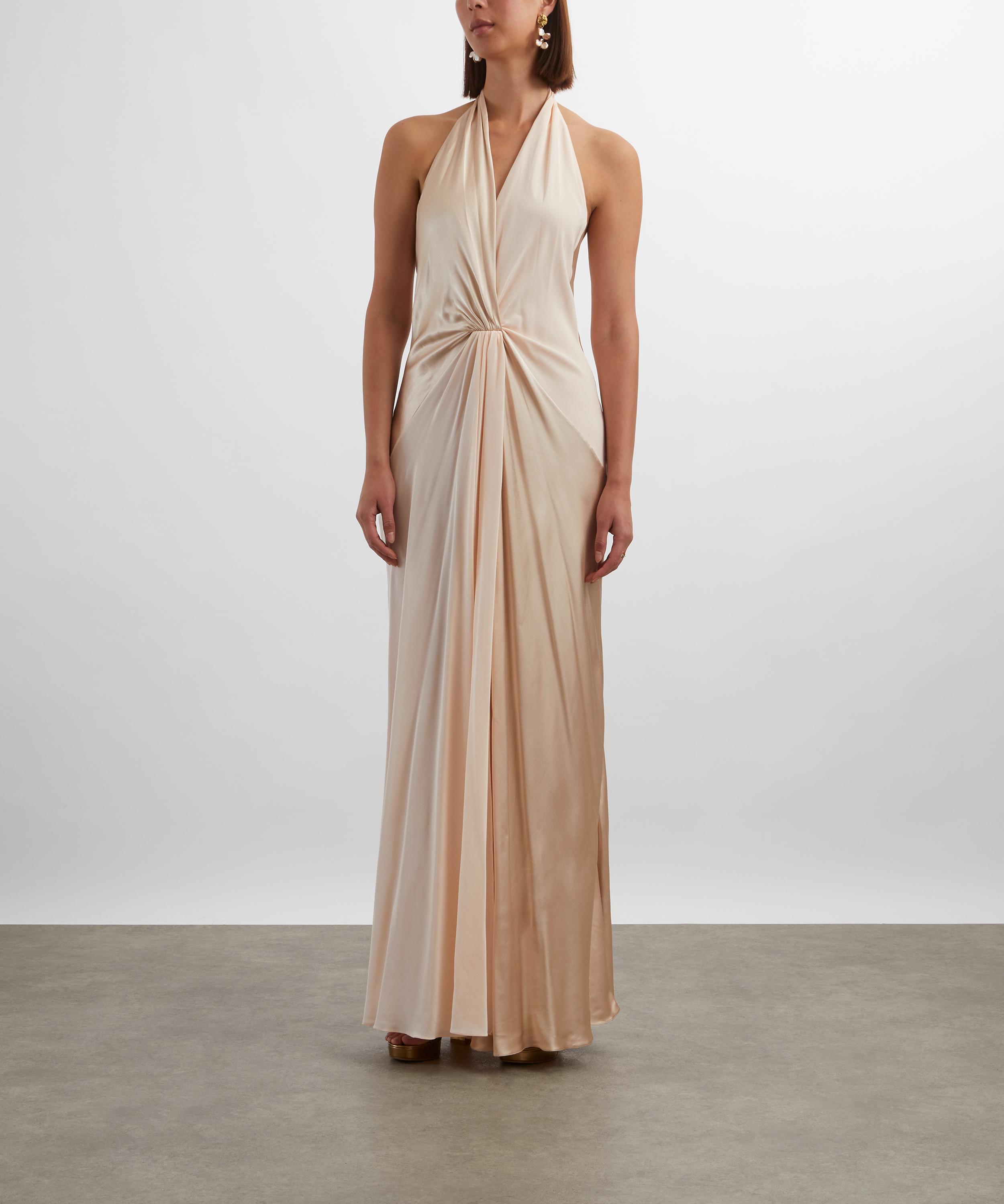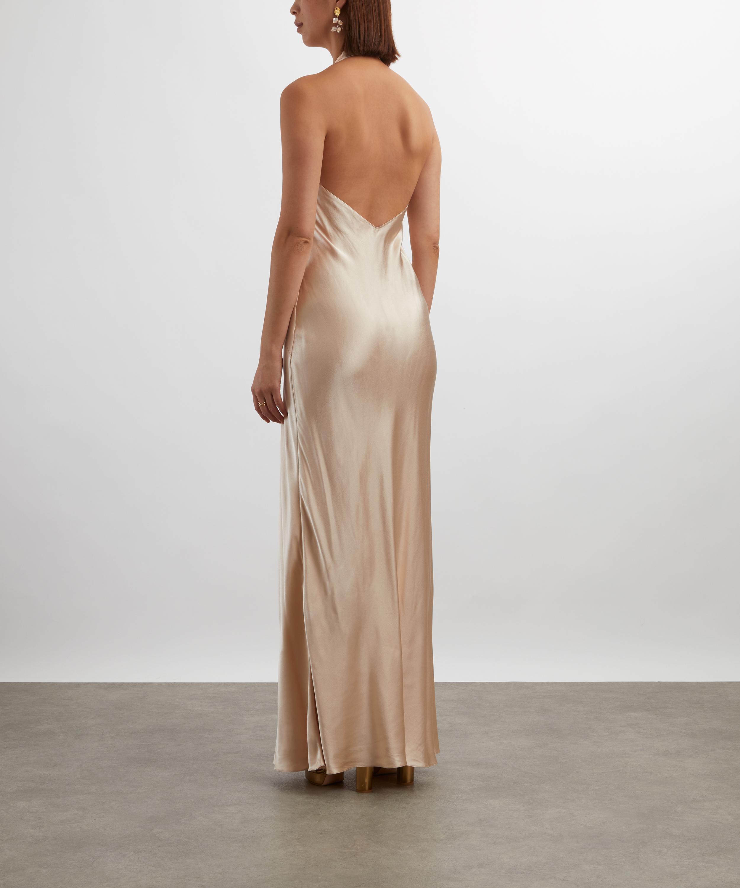 Rendered in champagne-pink silk, the Ruth dress channels old Hollywood glamour with its plunging V-neckline, open back, and softly gathered front - offering timeless elegance with a sultry edge.