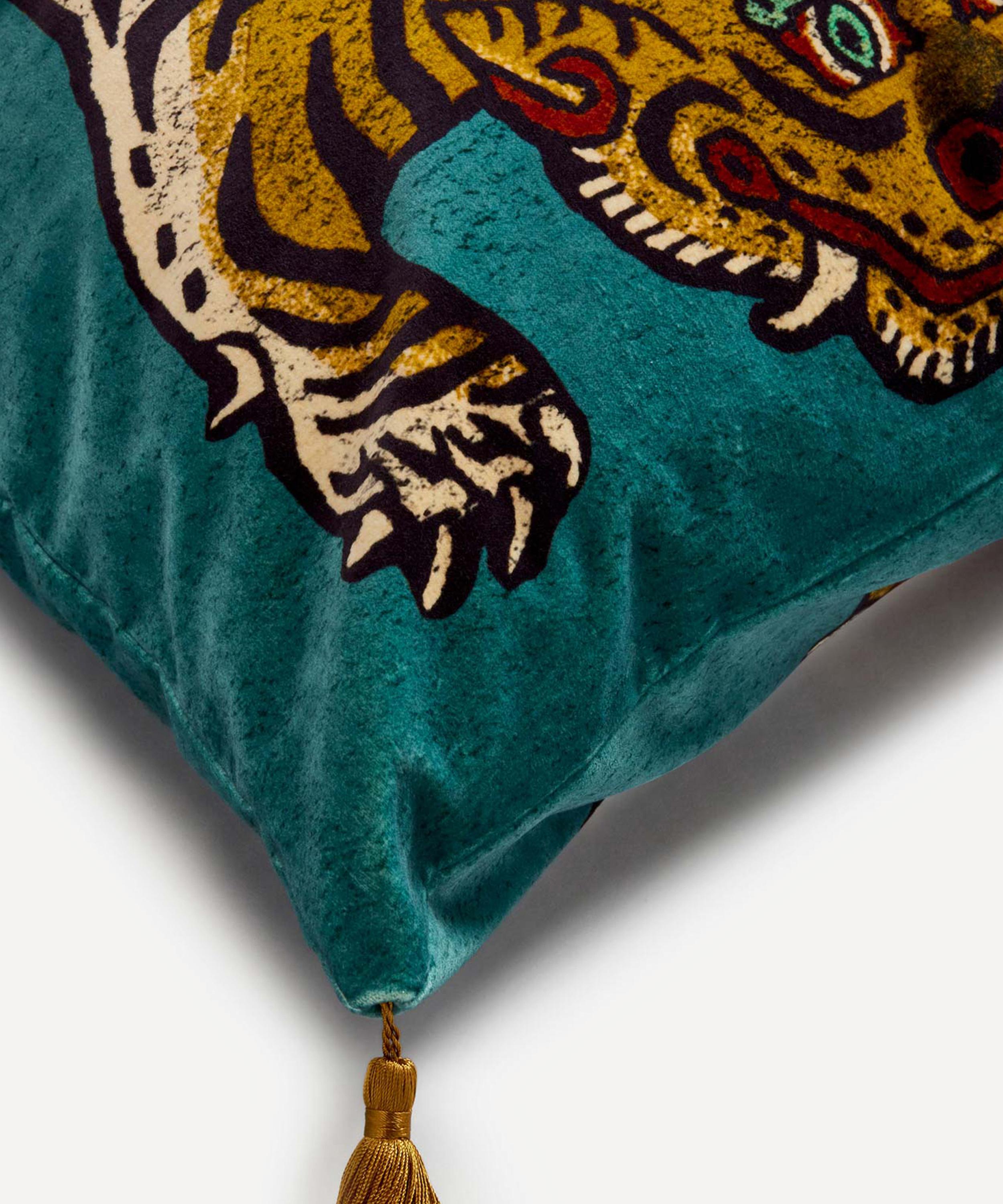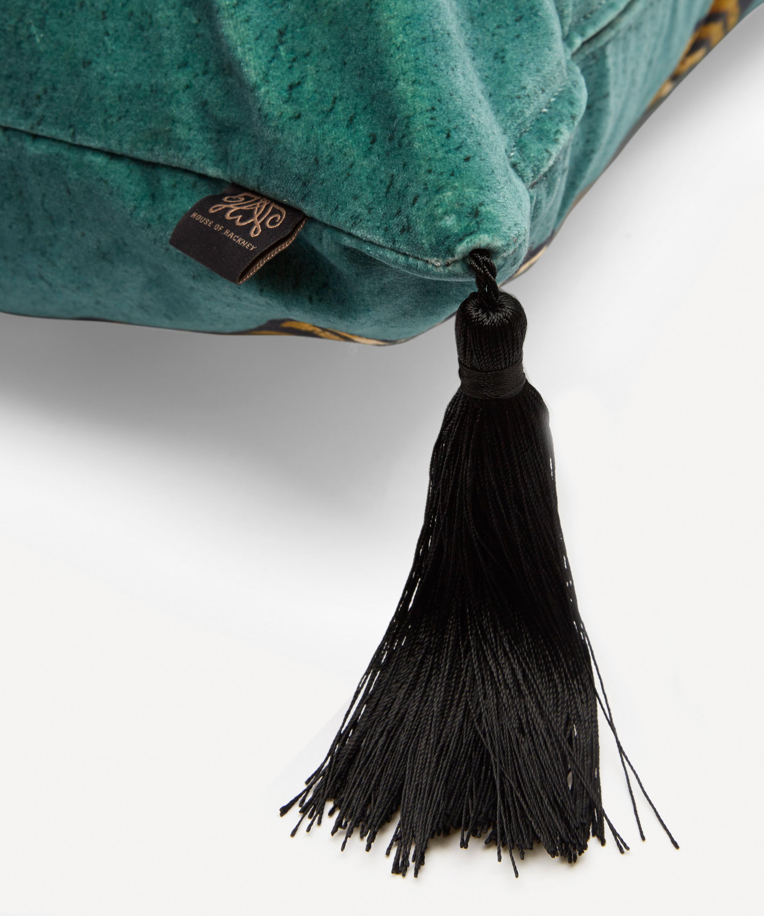 Bringing instant colour and texture to reading nooks and living spaces, the Saber Large Velvet Cushion from House of Hackney lends a decadently wild touch to eclectic home interiors.