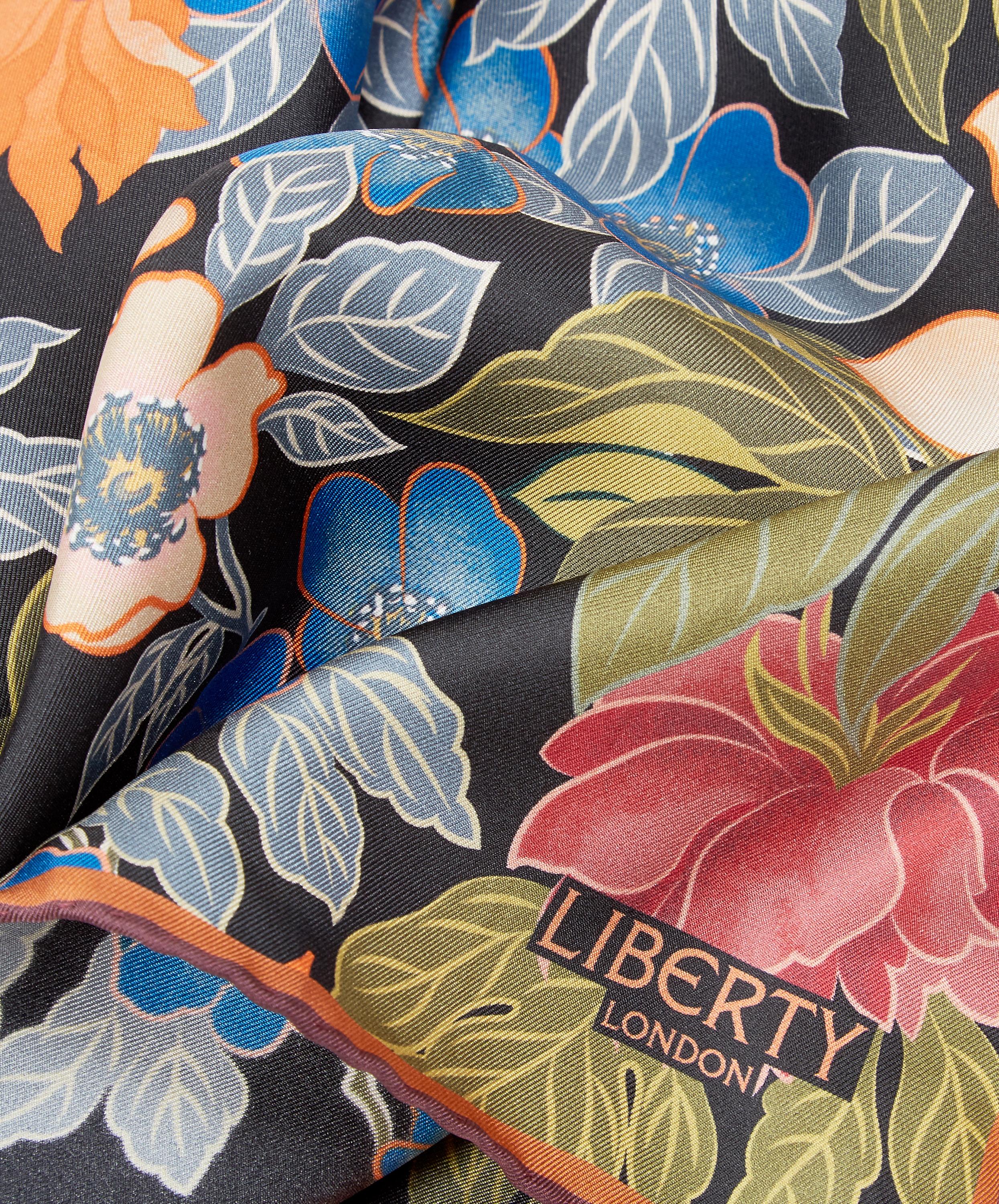 Our Sakura scarf is crafted from rich silk twill and expertly printed in Italy with a design created in the Liberty studio – a life-long modern icon to brighten up daily dressing.