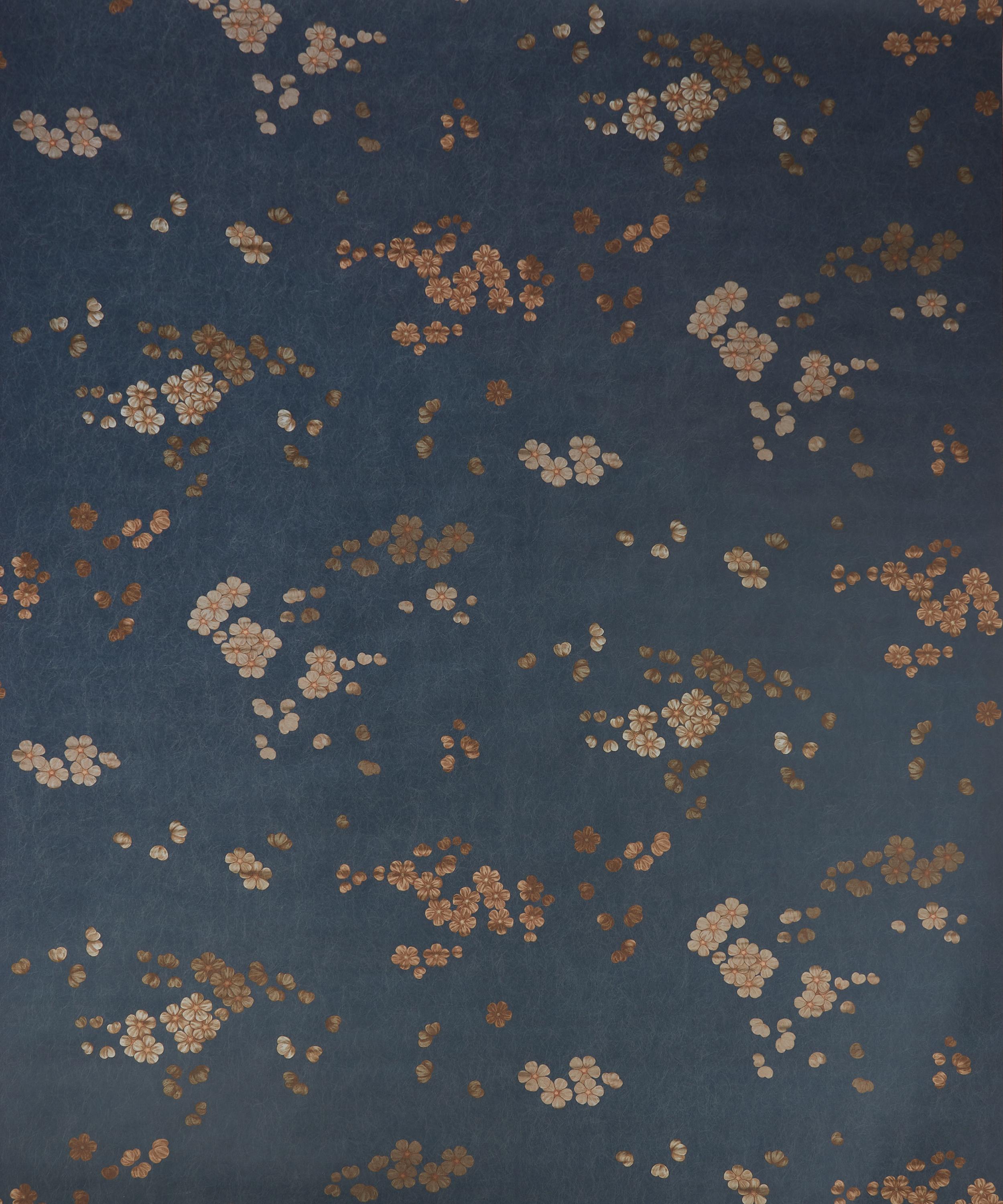 Sakura pays homage to the beautiful, Japanese cherry blossom by embracing its minimalistic aesthetic, hand-painted in delicate watercolours. The print features scattered clusters of simplified buds and blooms that appear to float through a windswept sky.