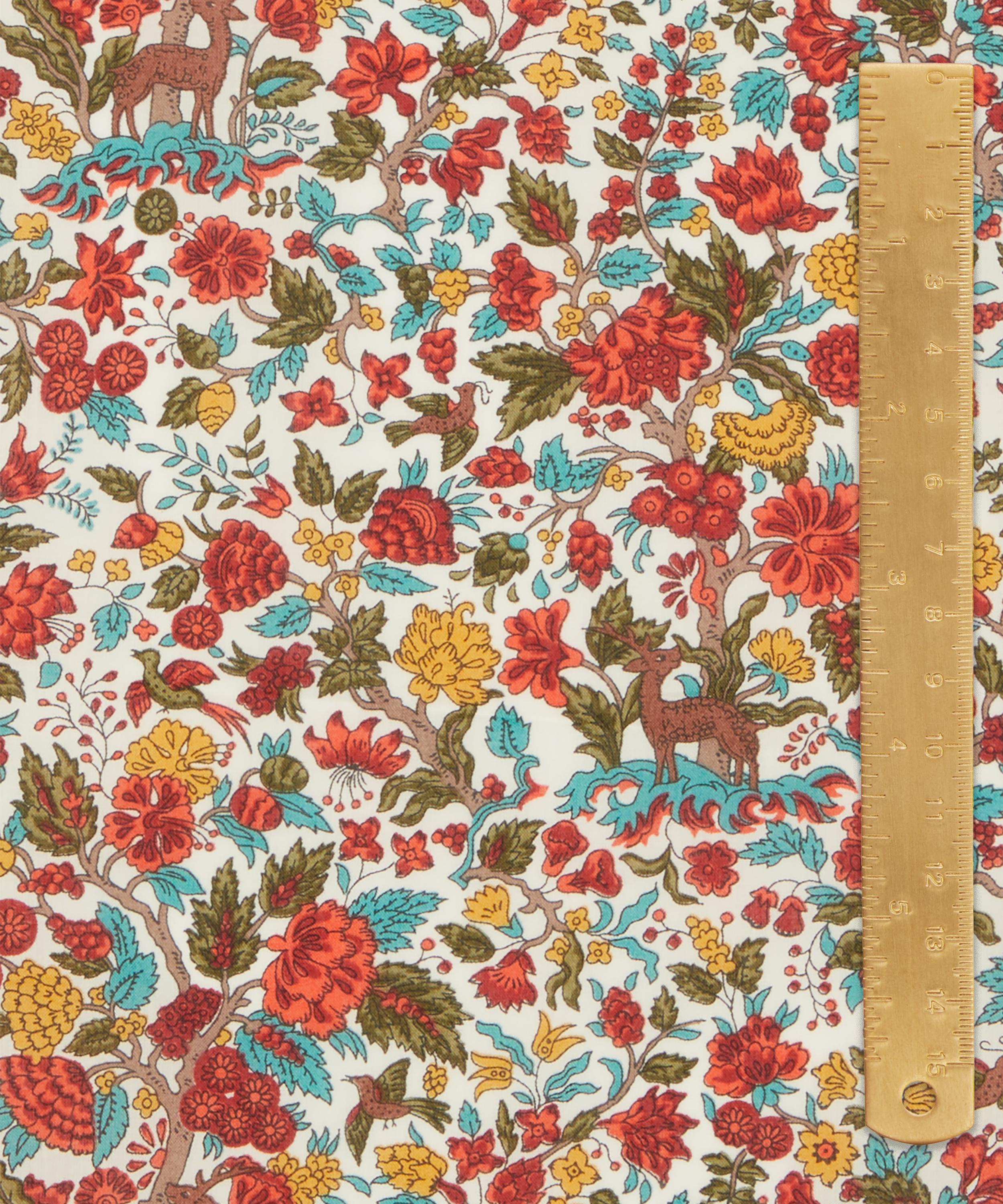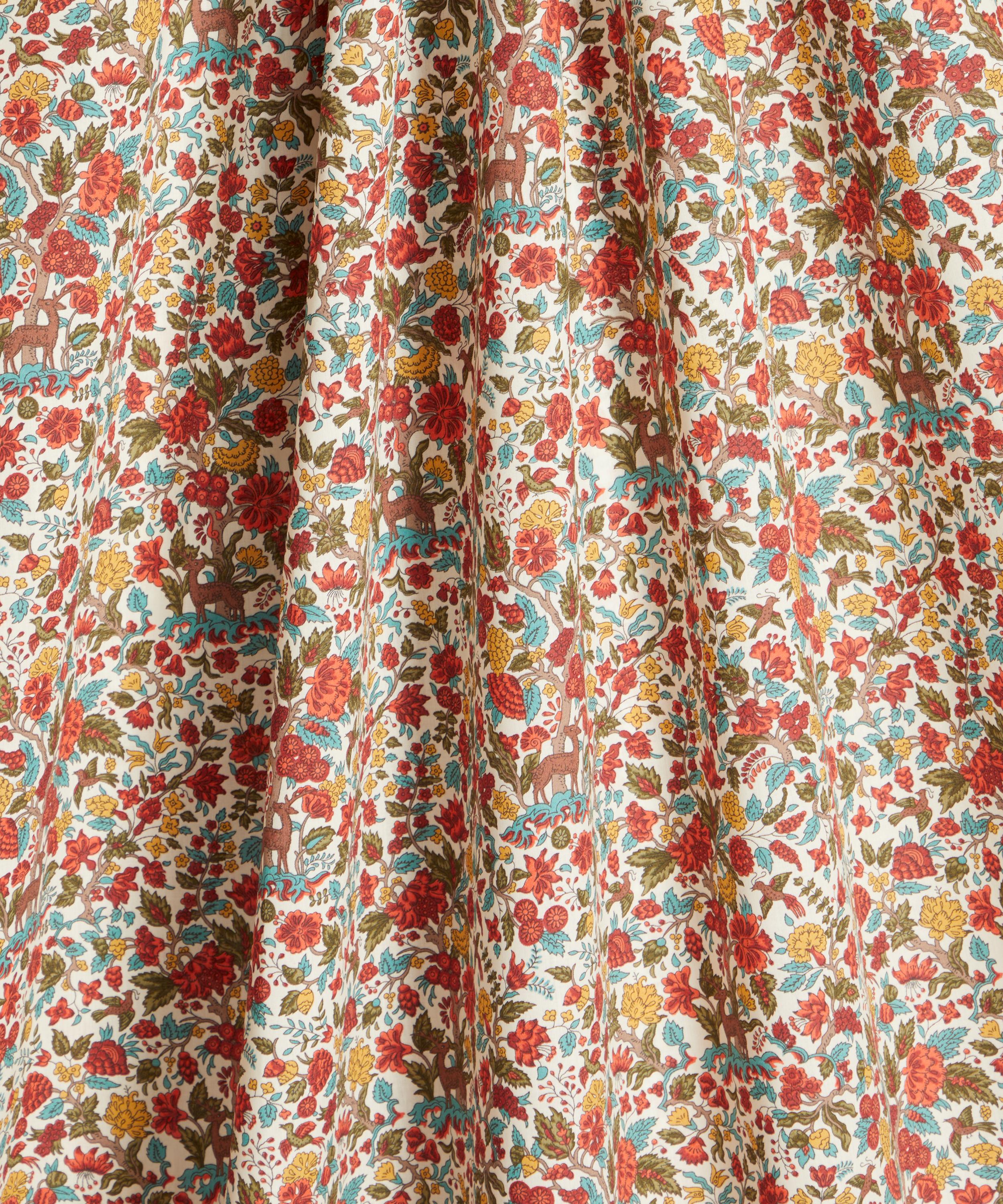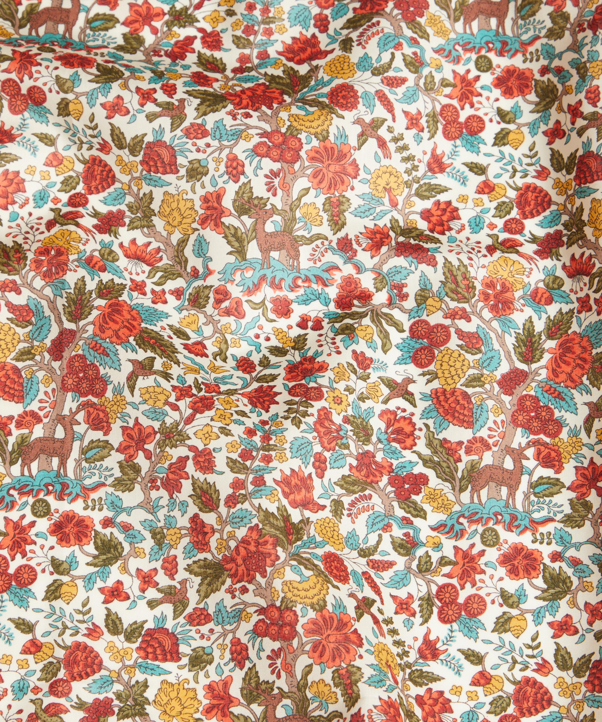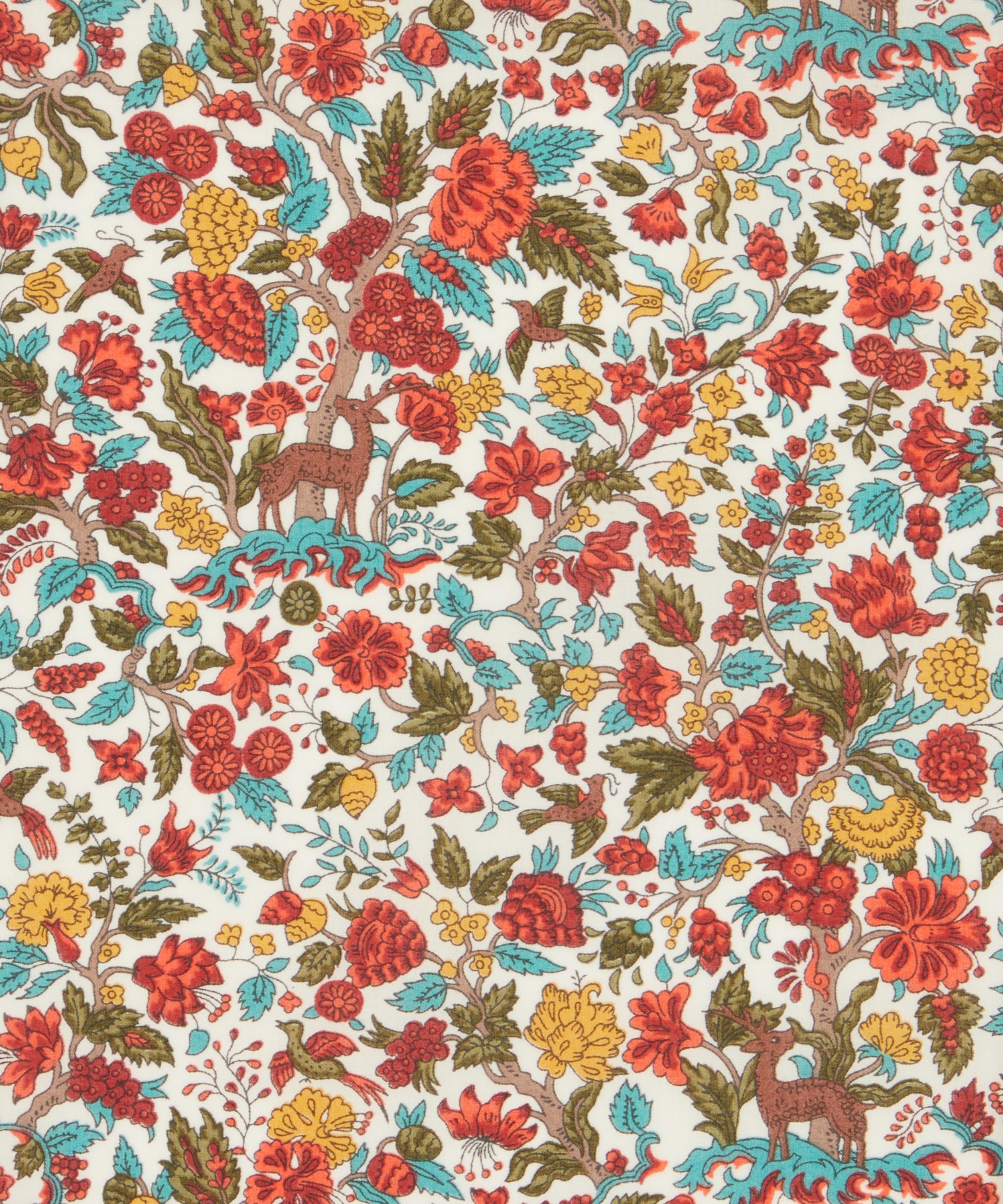 Salters Forest is an enchanting conversational design, based on a Liberty archive print dating from the 1940s. Reimagined as a celebration of Artemis, the ancient Roman goddess of the wild, this artwork depicts an imaginary landscape of blossoming flowers and lush vegetation as a rich Tree of Life tapestry unfolds, revealing playful illustrations of birds and deer. Salters Forest is part of the Earth story of our Autumn/Winter 2023 collection - a tribute to the earth’s bounty, these designs immerse us in the captivating details of the natural world.