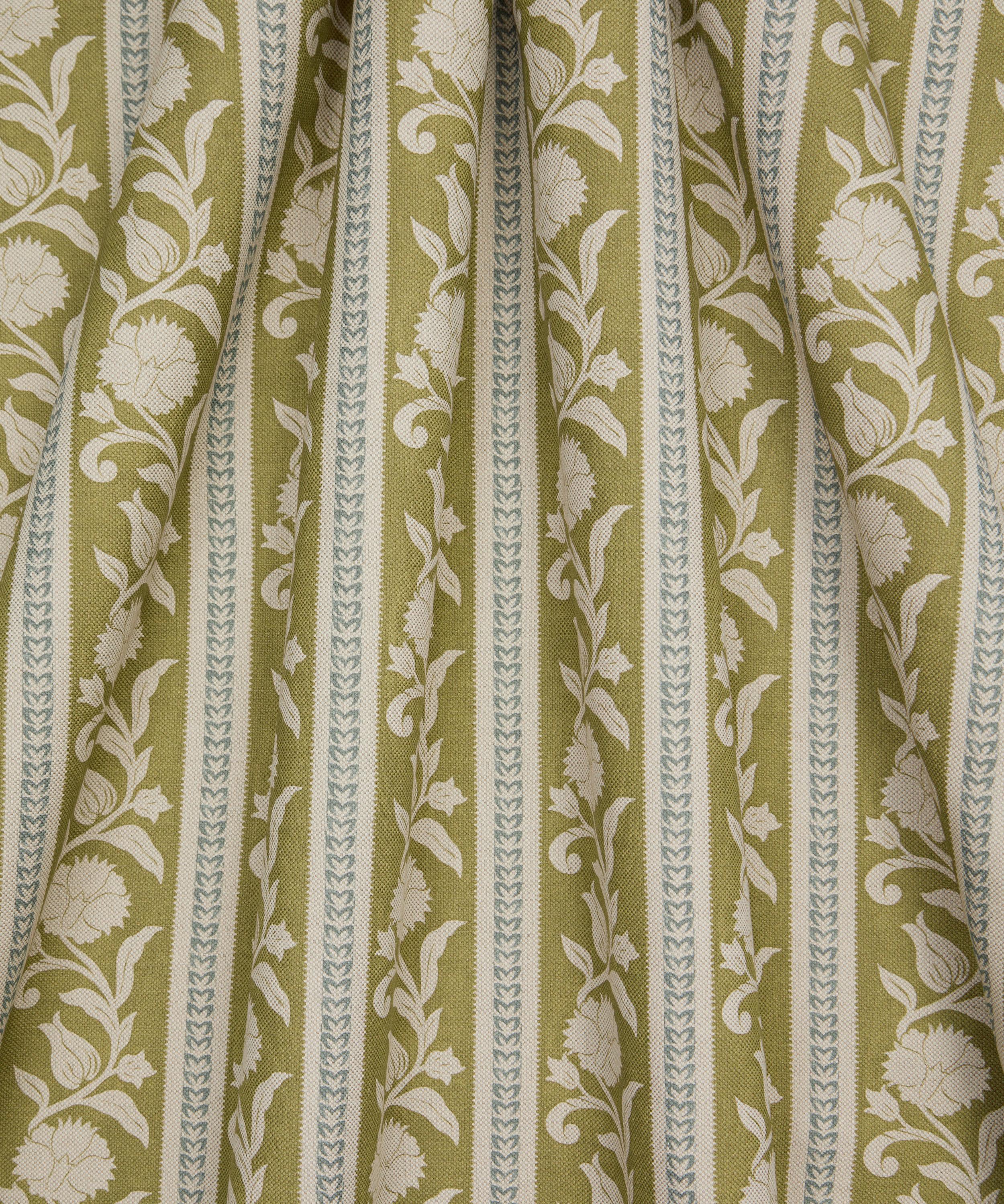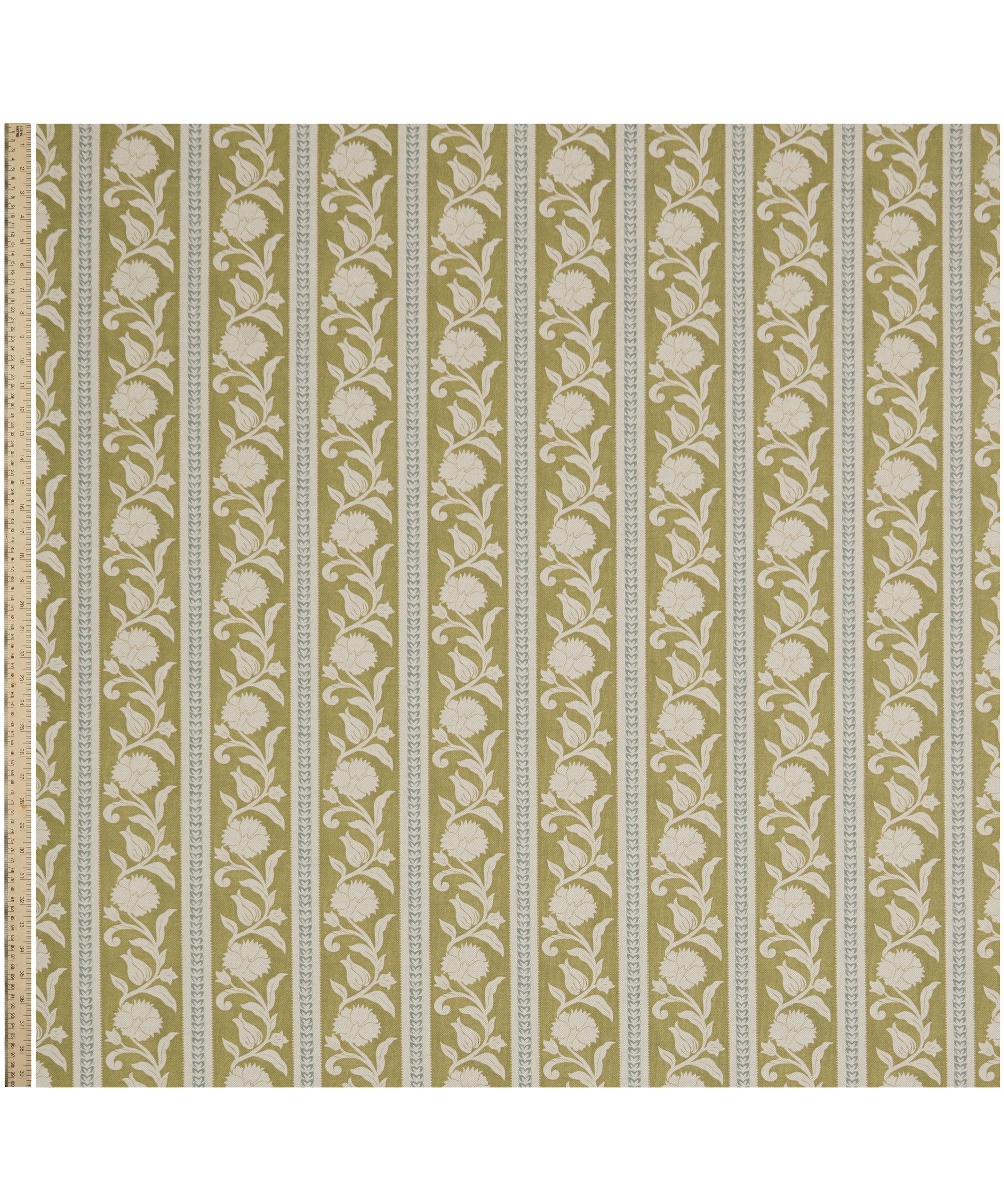 The Botanical Atlas fabric collection celebrates our historic lineage of craftsmanship and design through a cross-pollination of styles and visual narratives. Richly layered embroideries, opulent textured weaves, and contemporary printed velvets and linens are juxtaposed with a selection of elegant stripes and mesmerising geometrics - expertly crafted using traditional and cutting-edge techniques in Italy, Belgium, and India. Inspired by decorative shawls from the 1900s, Sambourne Stripe incorporates intricate floral motifs from Sambourne Vine in an elegant floral stripe.