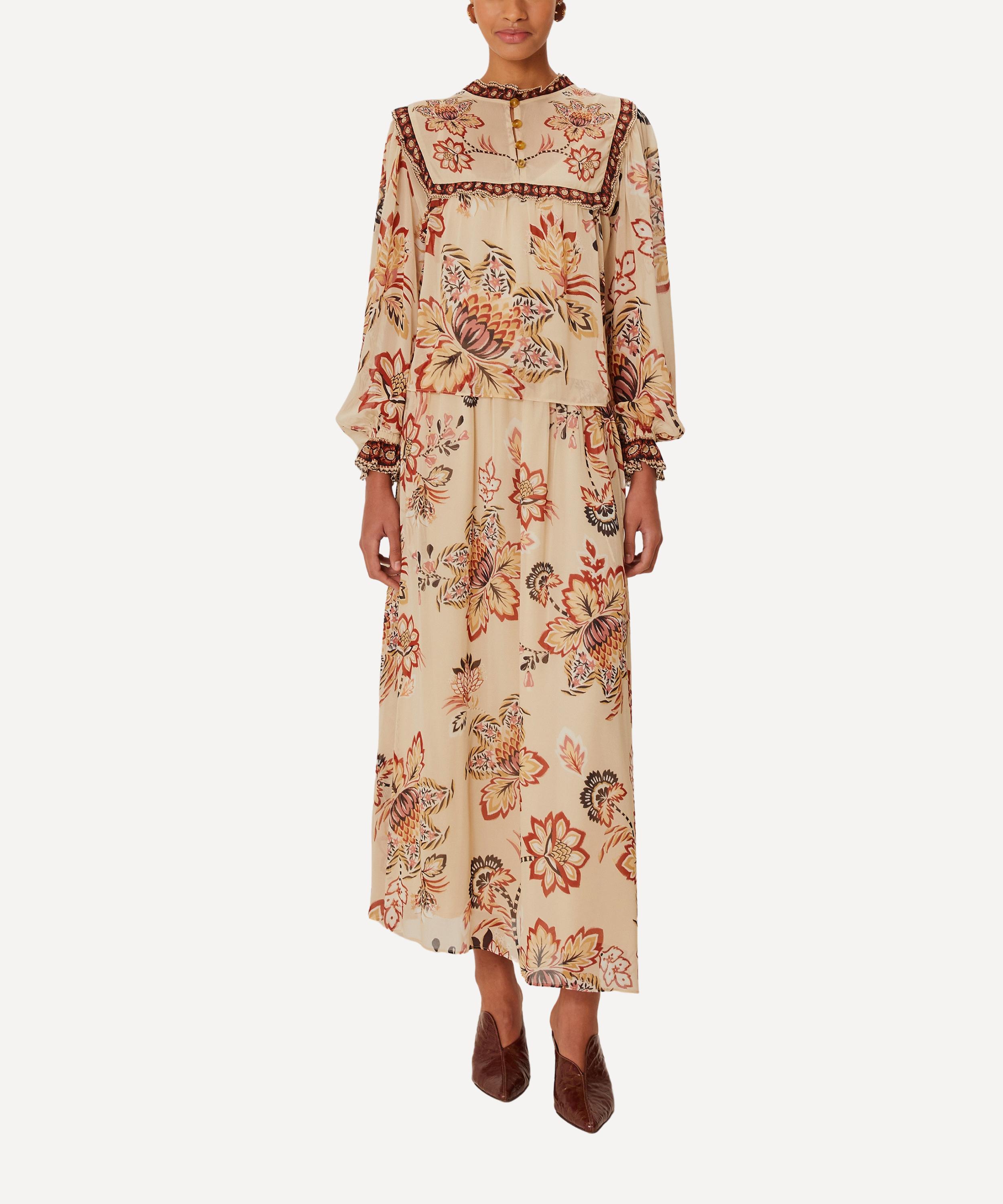 Sand Aura Floral Midi Skirt