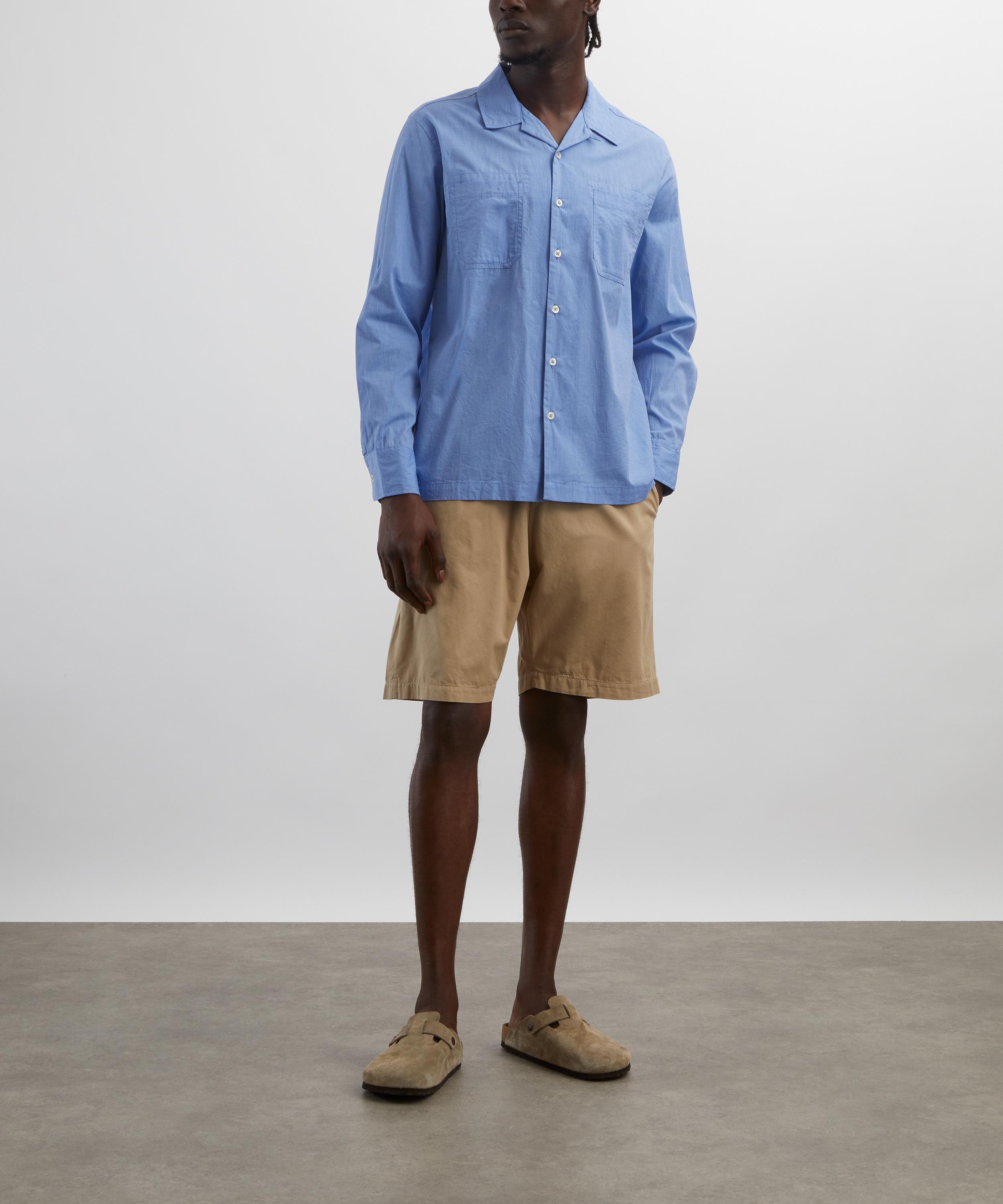 Universal Works merges heritage workwear with modern design in the Sand Kelly Simple Shorts, offering a contemporary take on a timeless staple.