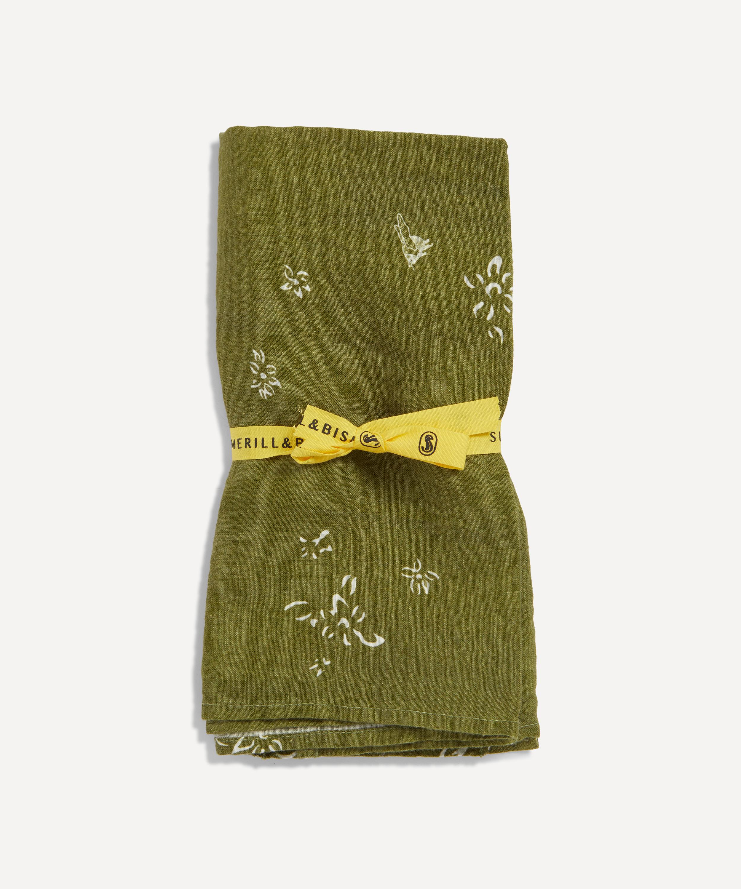 Designed to bring a sense of hope, joy and happiness to any table setting, this set of avocado green napkins is adorned with a gentle cascade of flowers, with the occasional bee flying amidst them. Crafted from 100% linen with a beautifully tactile, slightly crumpled texture, the design is equally at home in a casual, outdoor setting, as it is as part of a more formal, indoor tabletop.