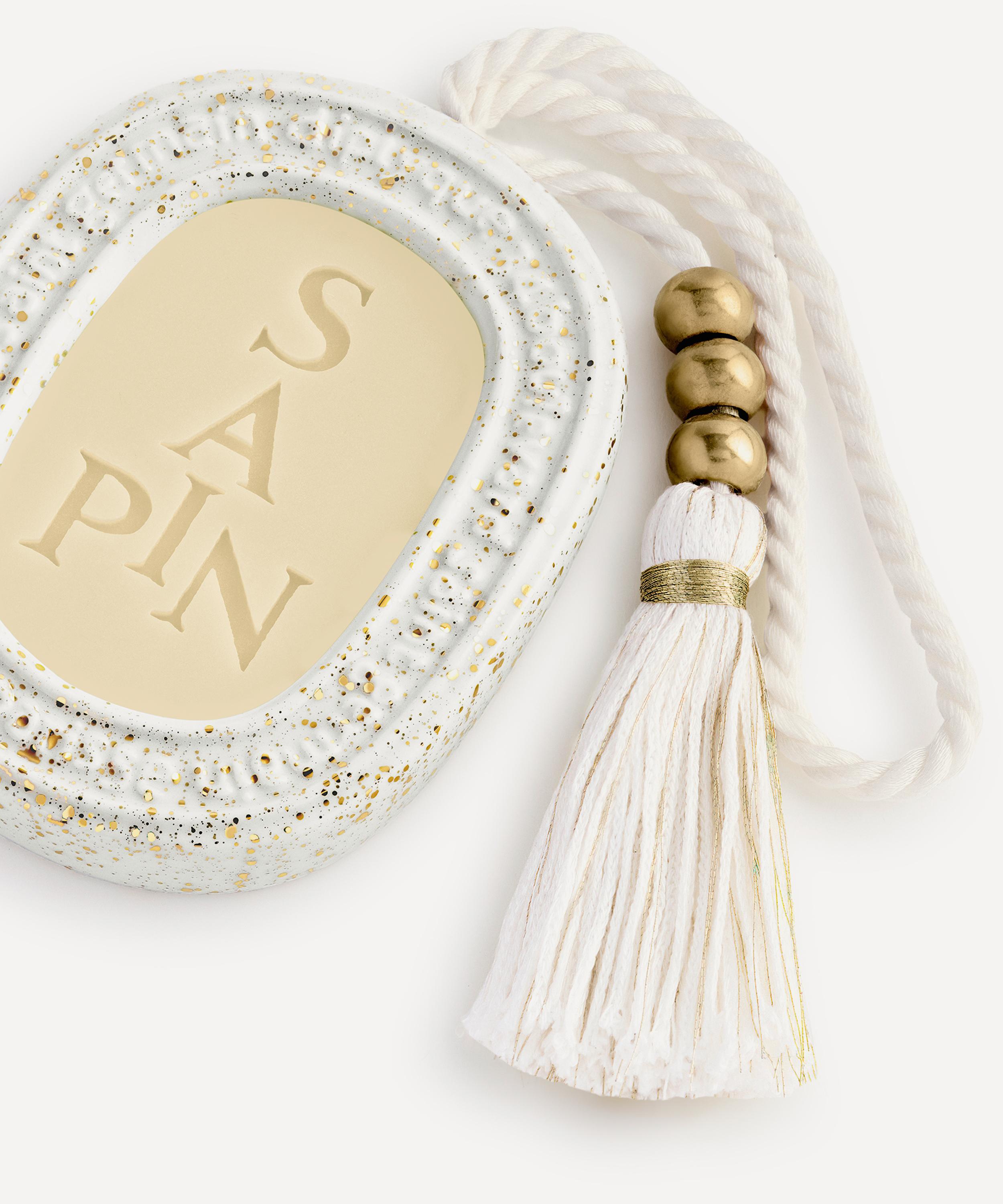 Create a heavenly festive olfactory atmosphere in your home with Diptyque’s limited-edition Sapin scented oval.