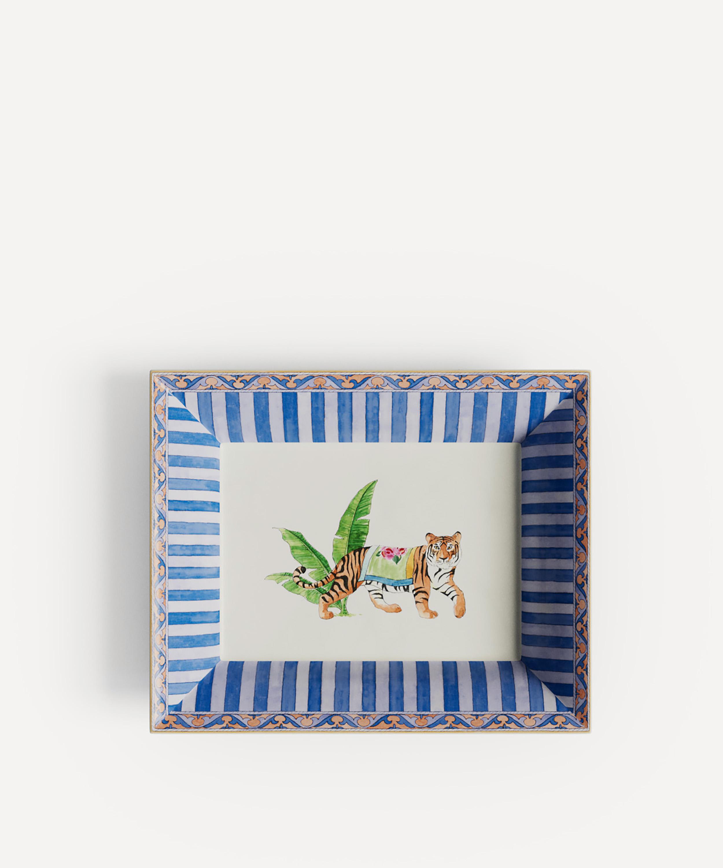Lisa Corti channels her singular affinity for colour, ancient crafts and the art of travel into the Sariska vide poche tray - a must-have piece for interior enthusiasts.
