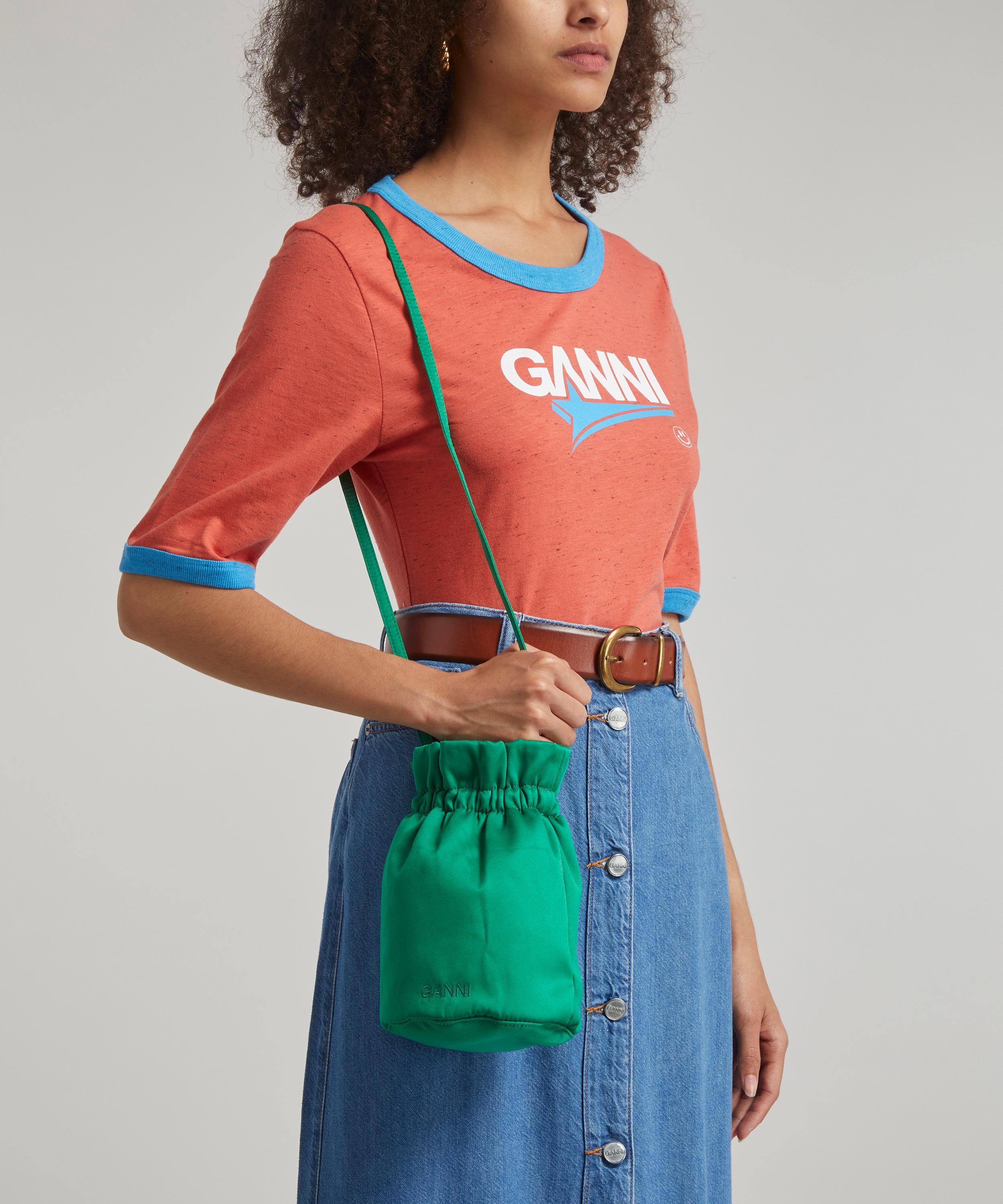 p>This mini pouch bag is crafted from a sleek satin-effect fabric that's made with 51% recycled polyester by millennial-favourite Danish brand Ganni.