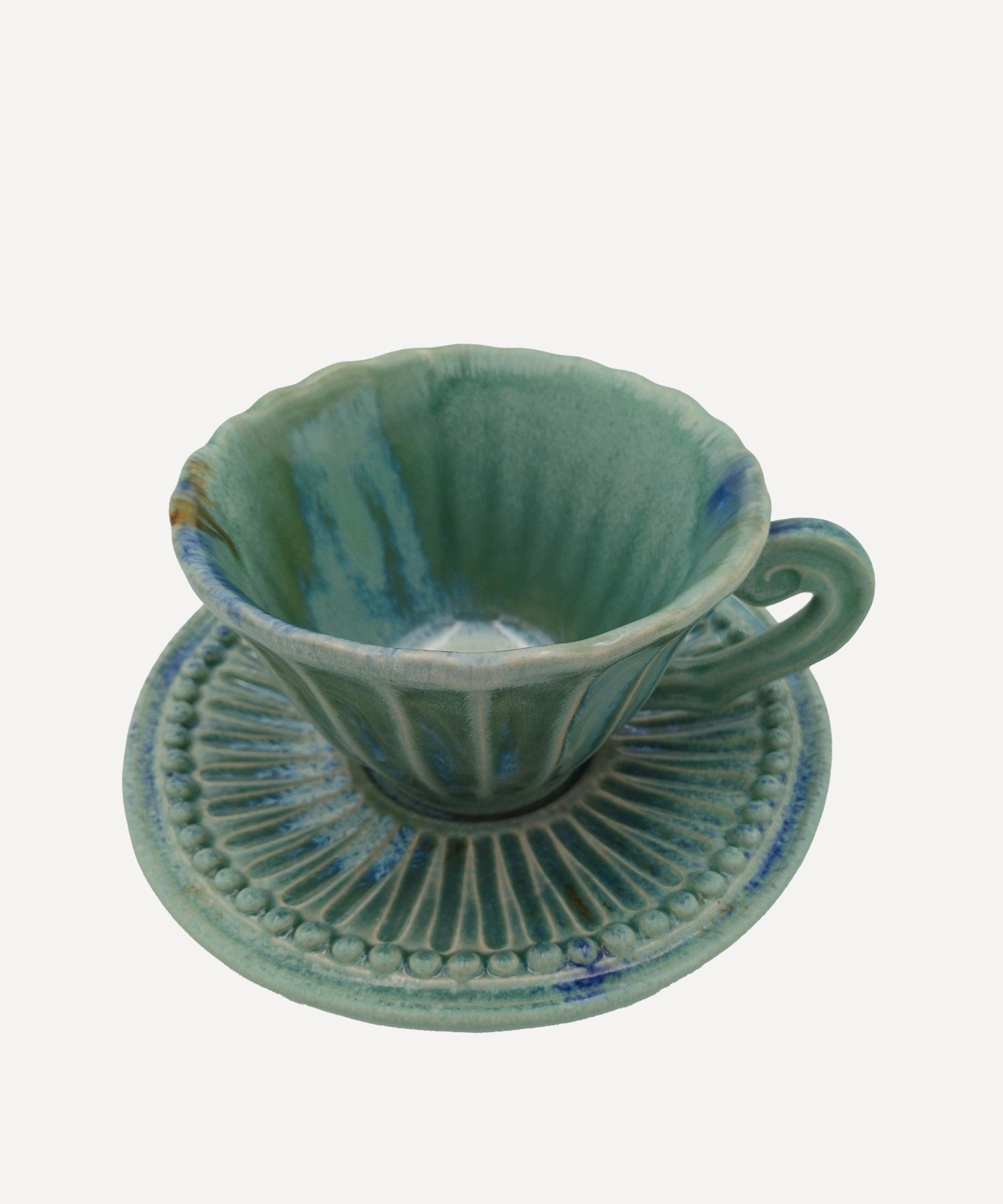 Practice the art of tablescaping with the Scallop teacup and saucer - a beautiful stoneware piece, bursting with vibrancy and fine craftsmanship.