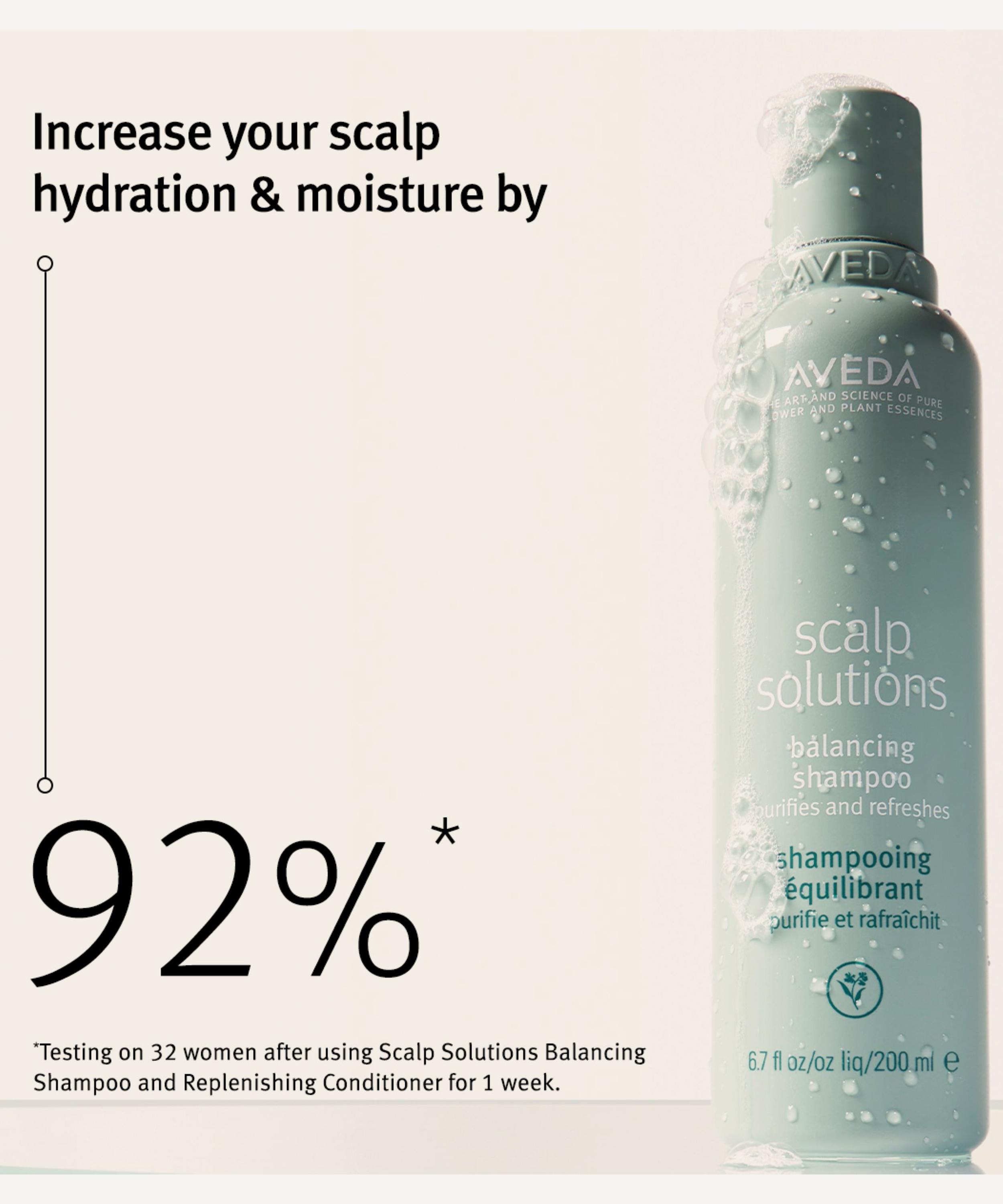 Aveda’s Scalp Solutions Balancing shampoo boasts a gentle formula that lavishes hair in nourishment, while cooling and soothing the scalp to defend against dryness.