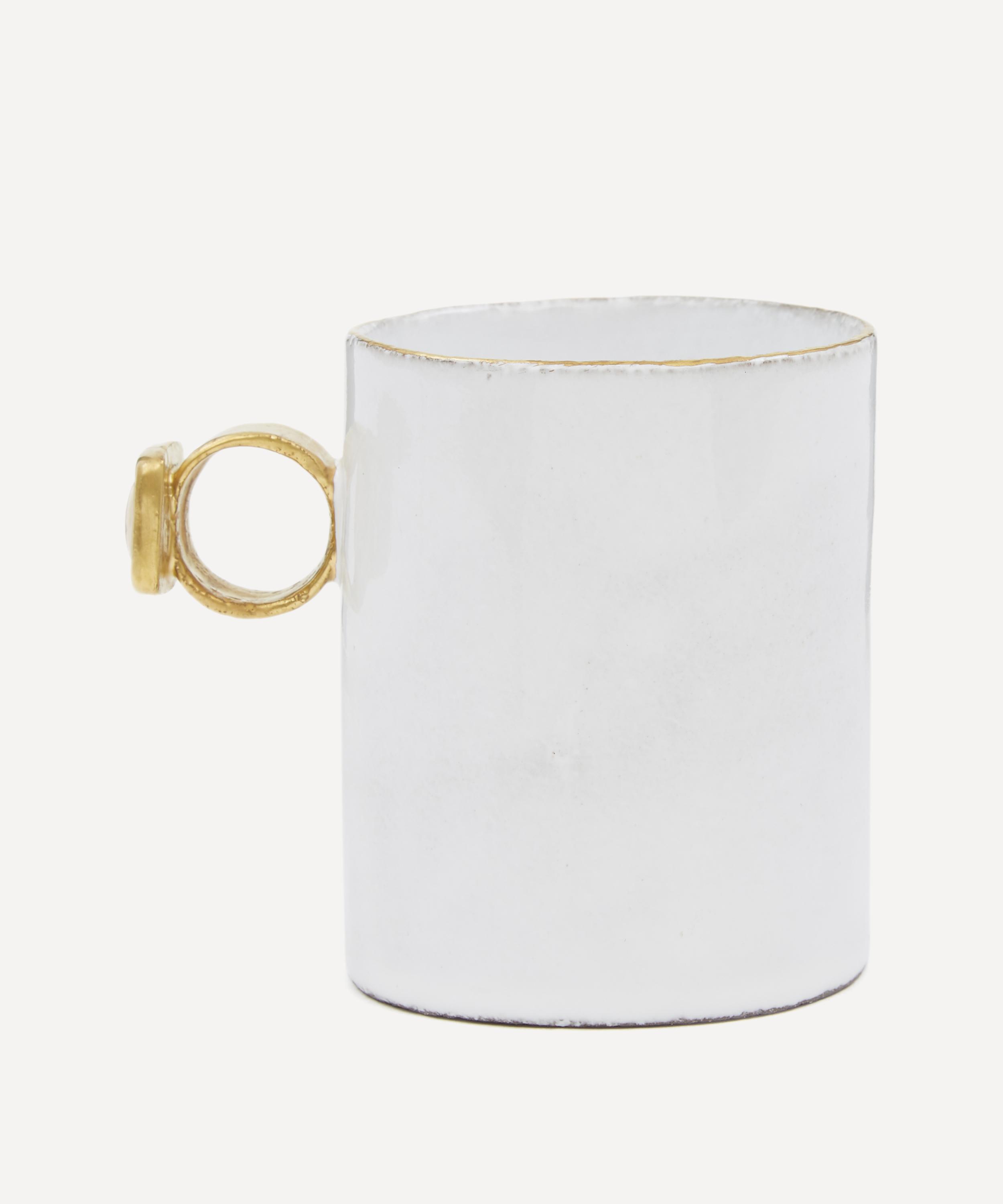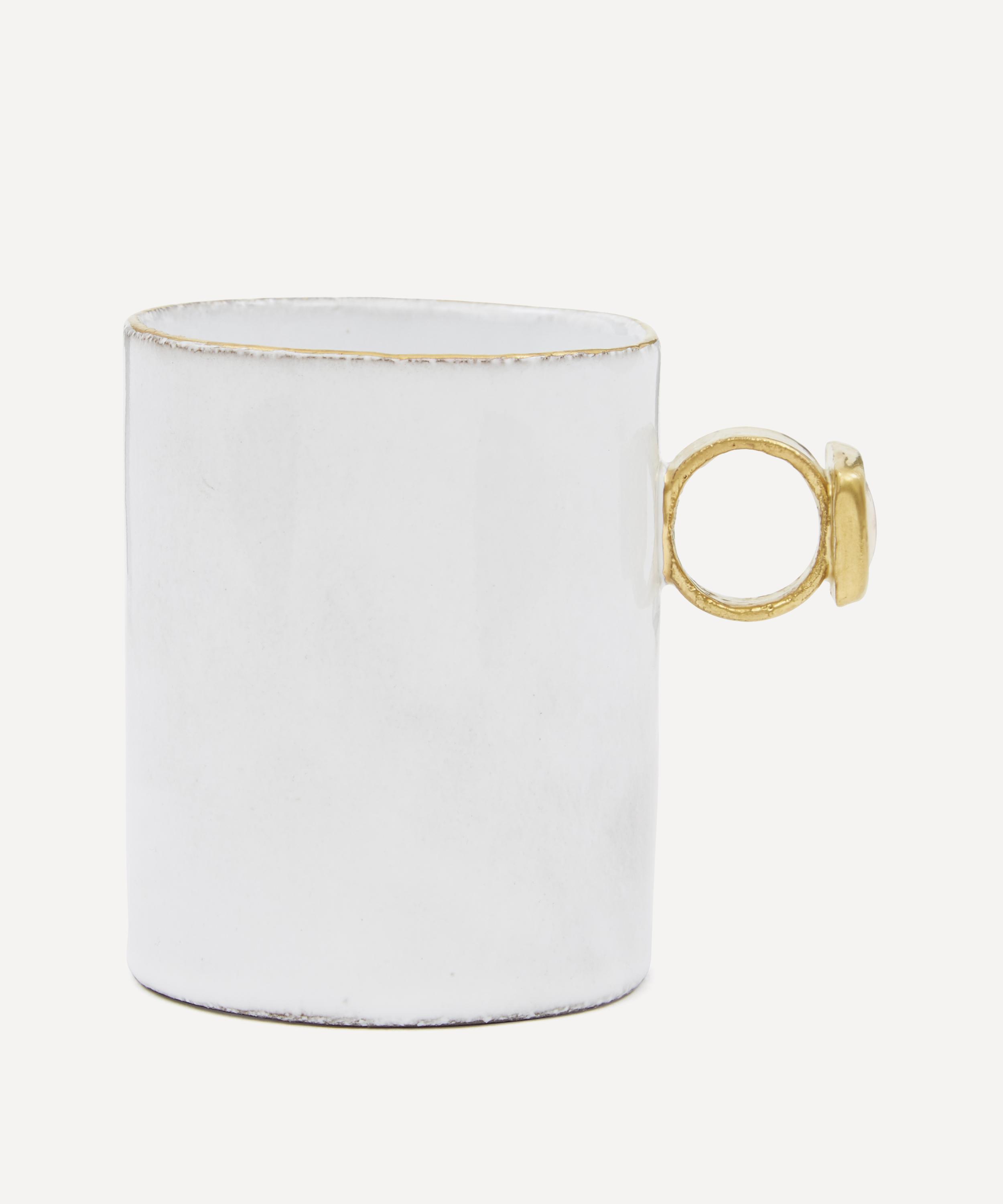 Votary of pre-industrial fabrication, Astier de Villatte is celebrated for being the one and only studio in Paris to hold and harbour the traditions of artisanal ceramic production. Restoring the ancestral systems of moulding and stamping, the Serena right eye mug is made using techniques from the Middle Ages which involve moulding a sheet of handmade clay, double firing the ‘biscuit’ piece and glazing the product in white enamel – a lengthy process that requires a drying time of up to one month. Characterised by a ring-shaped handle with a distinctive eye motif, the mug is engraved with the brand’s signature crest - depicting an interlacing A & V - alongside the initials of one of the 40 master artisans who created it. Each handmade piece tells a beautiful story, it romances and imparts a sense of nostalgia into its owner. Arrange with other mugs in the collection to breathe an air of authenticity into your afternoon tea setting.