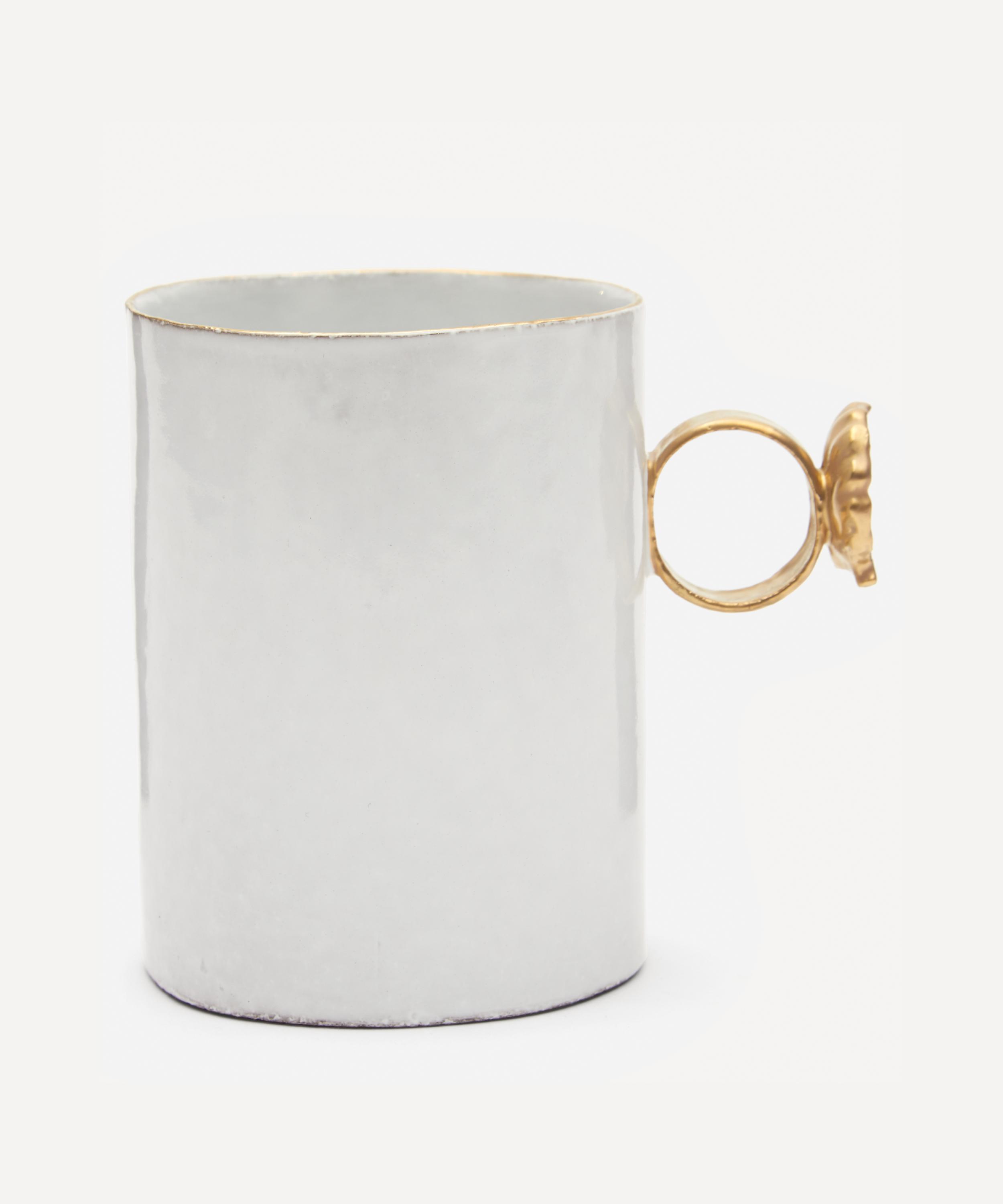 Votary of pre-industrial fabrication, Astier de Villatte is celebrated for being the one and only studio in Paris to hold and harbour the traditions of artisanal ceramic production. Restoring the ancestral systems of moulding and stamping, this cup is made using techniques from the Middle Ages which involve moulding a sheet of handmade clay, double firing the ‘biscuit’ piece and glazing the product in white enamel – a lengthy process that requires a drying time of up to one month. Part of the Serena collection, the cup is adorned with a shell on the handle and finished with the brand’s signature crest – depicting an interlacing A & V – engraved alongside the initials of one of the 40 master artisans who created it. Each handmade piece tells a beautiful story, imparting an irresistible sense of nostalgia; use it to give your table setting an authentic French mood.