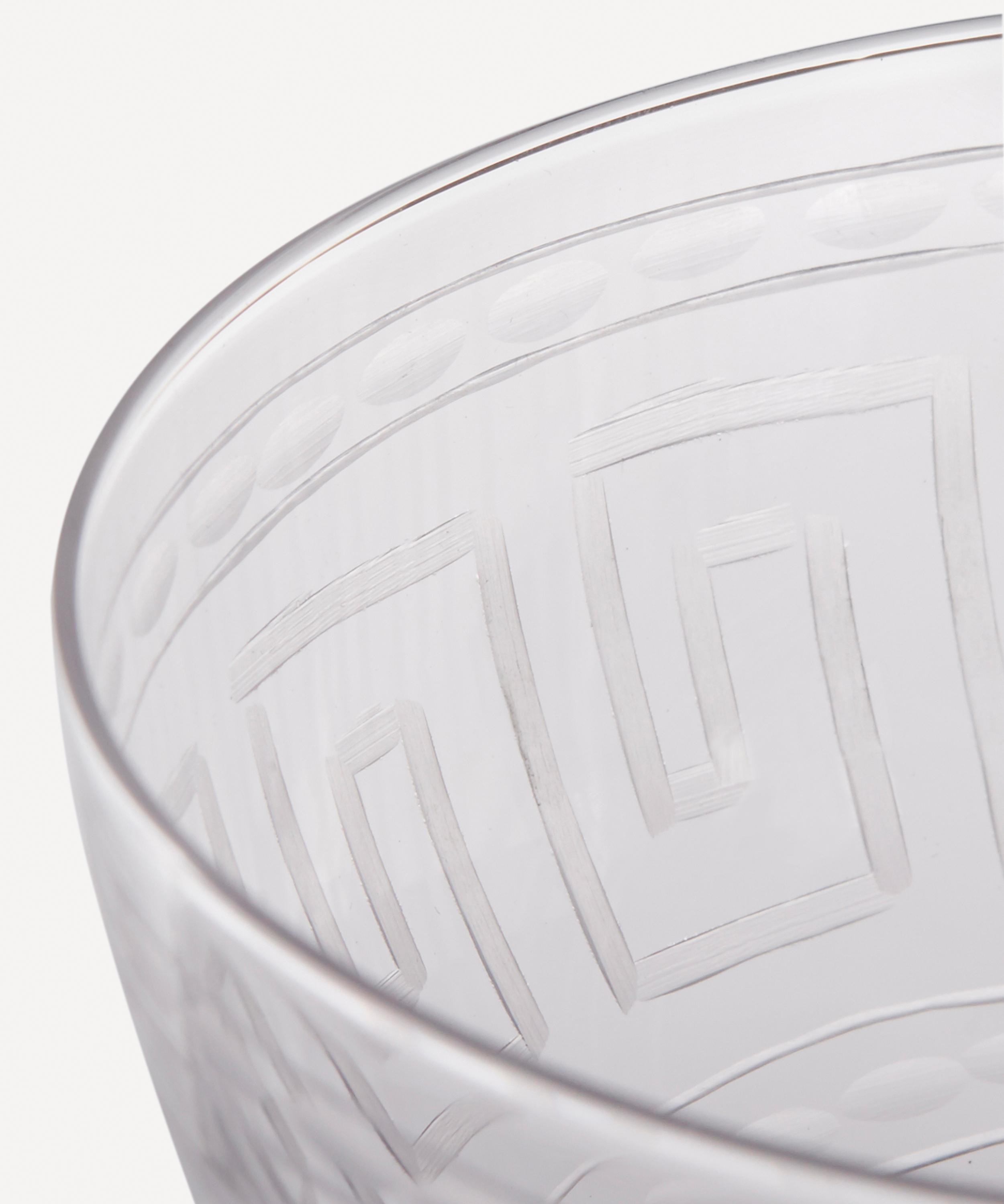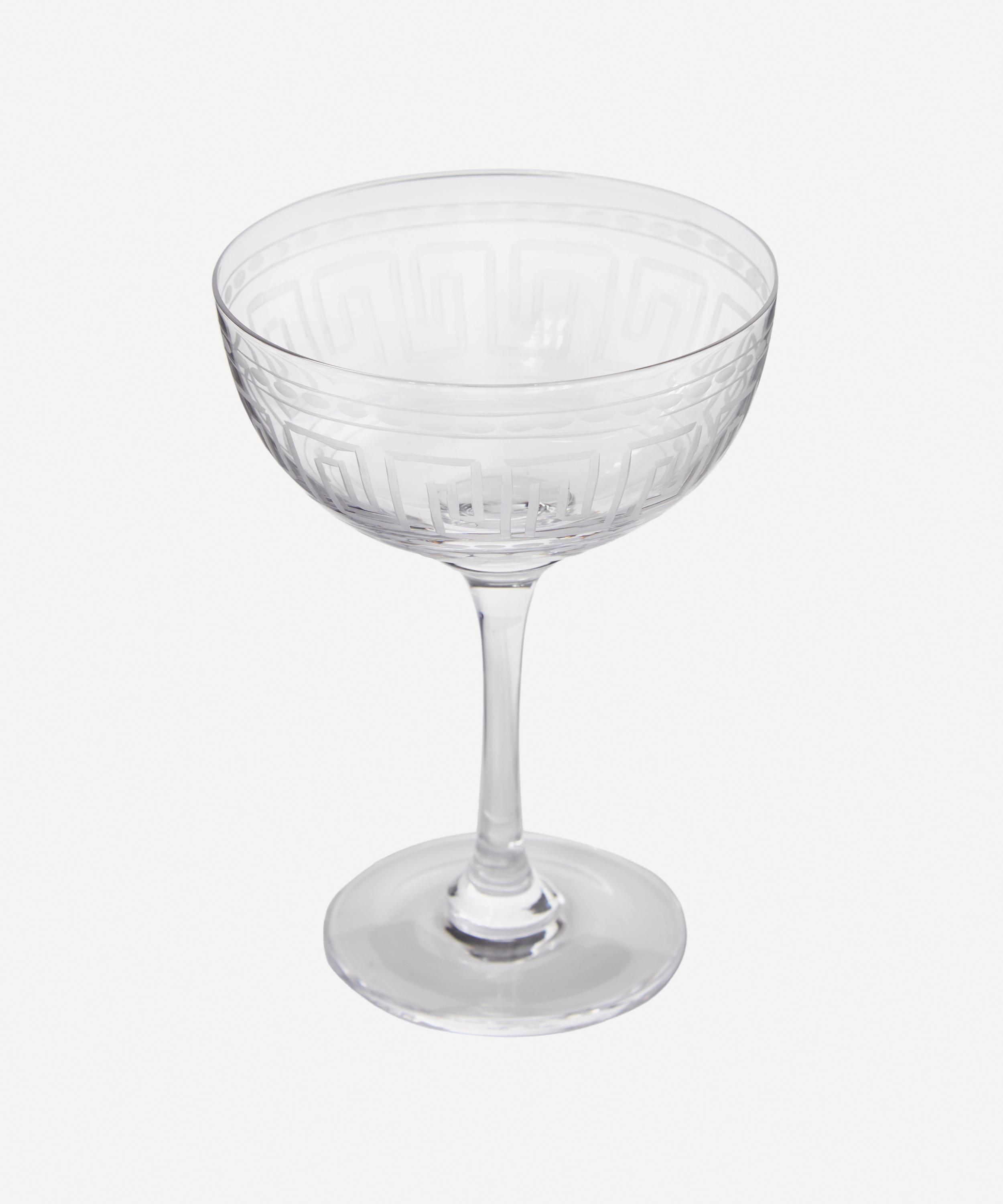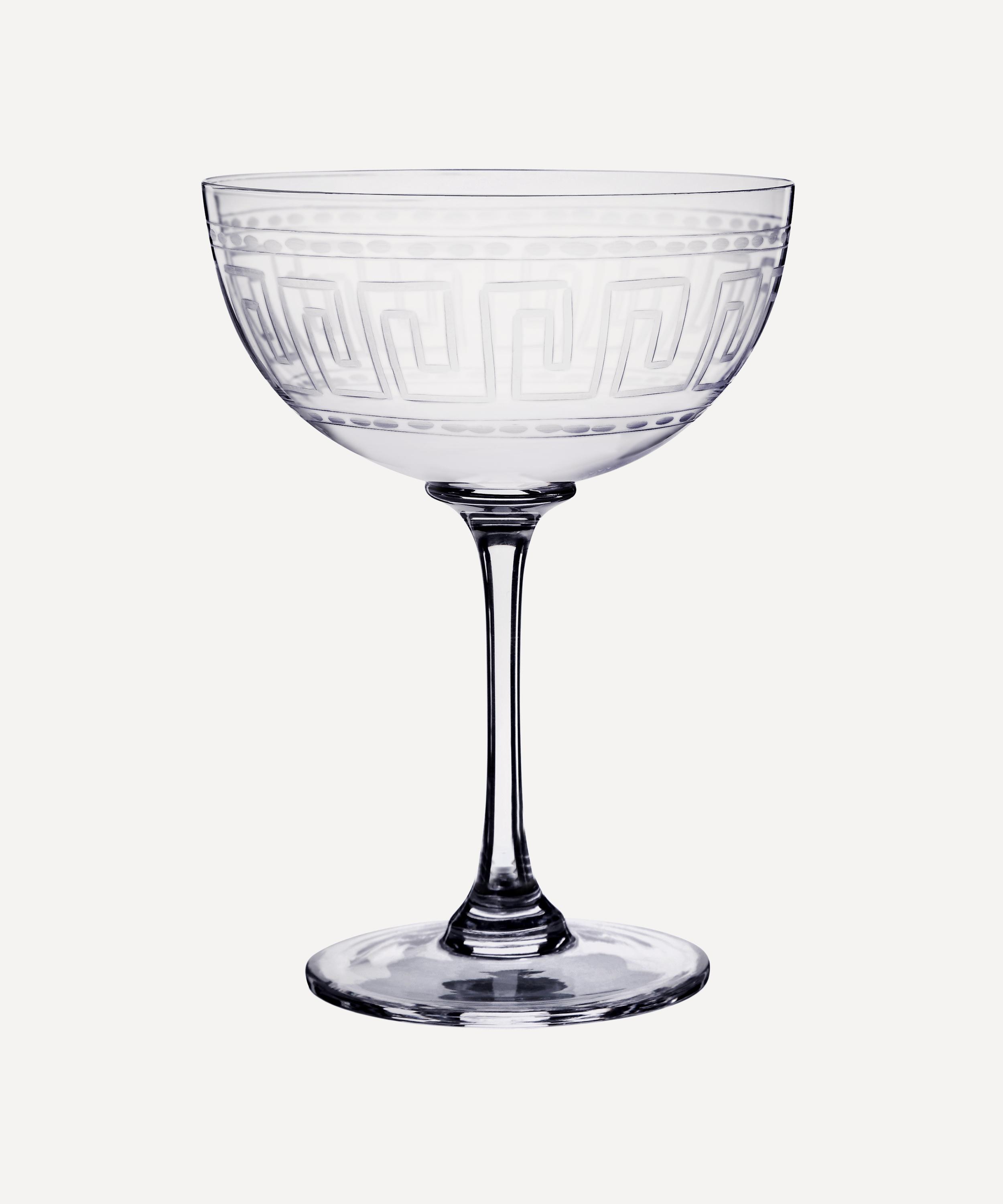 True to British heritage, The Vintage List Champagne Coupes are inspired by 19th Century and early 20th Century English glassware, providing a vintage aesthetic to modern dining. Cut from fine crystal glass, these exquisite hand-engraved glasses feature a traditional Greek key pattern.