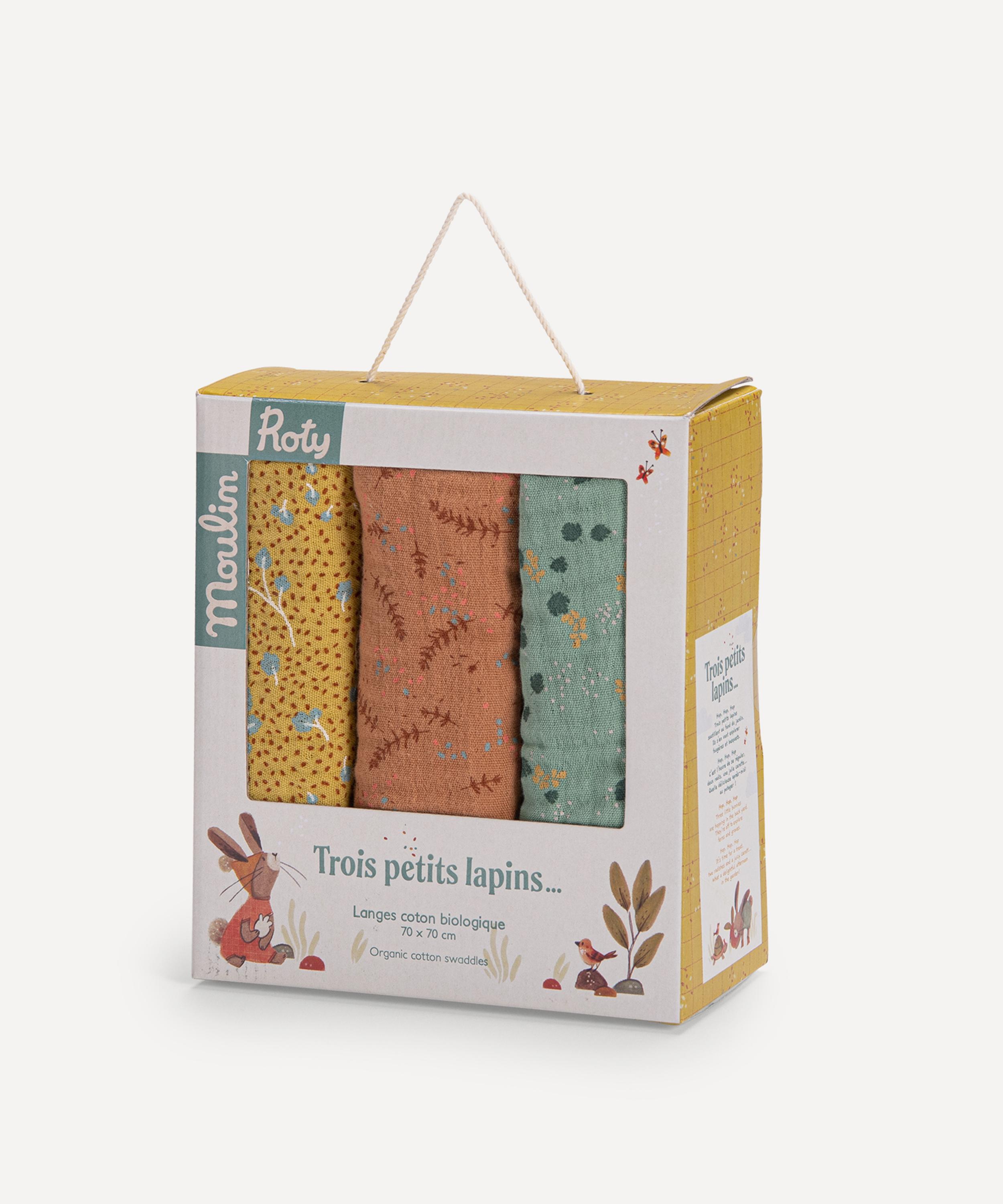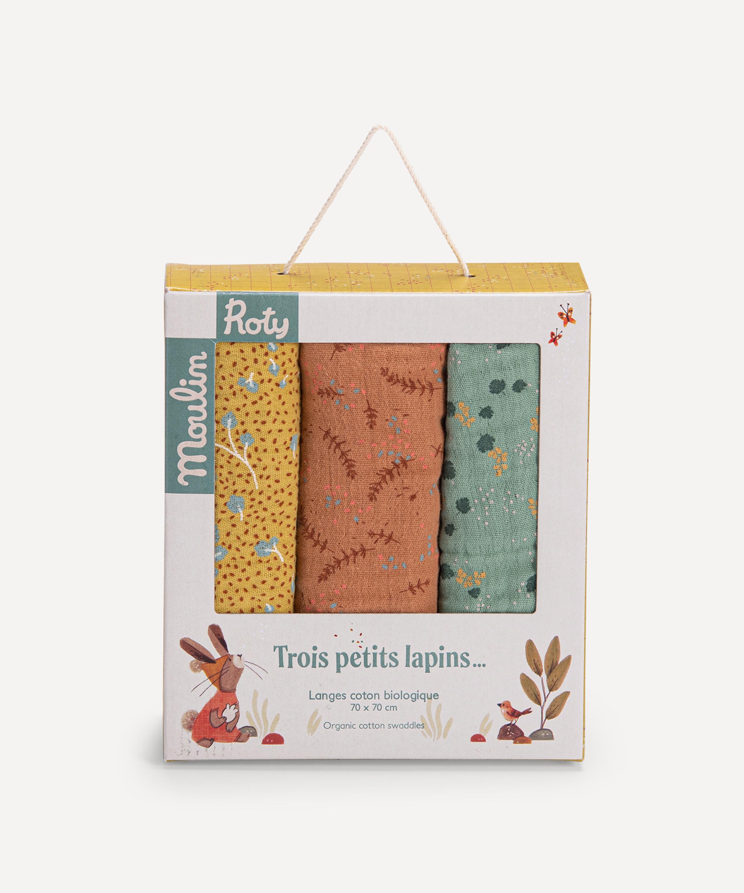 Set of Three Trois Petits Lapins Muslin Squares