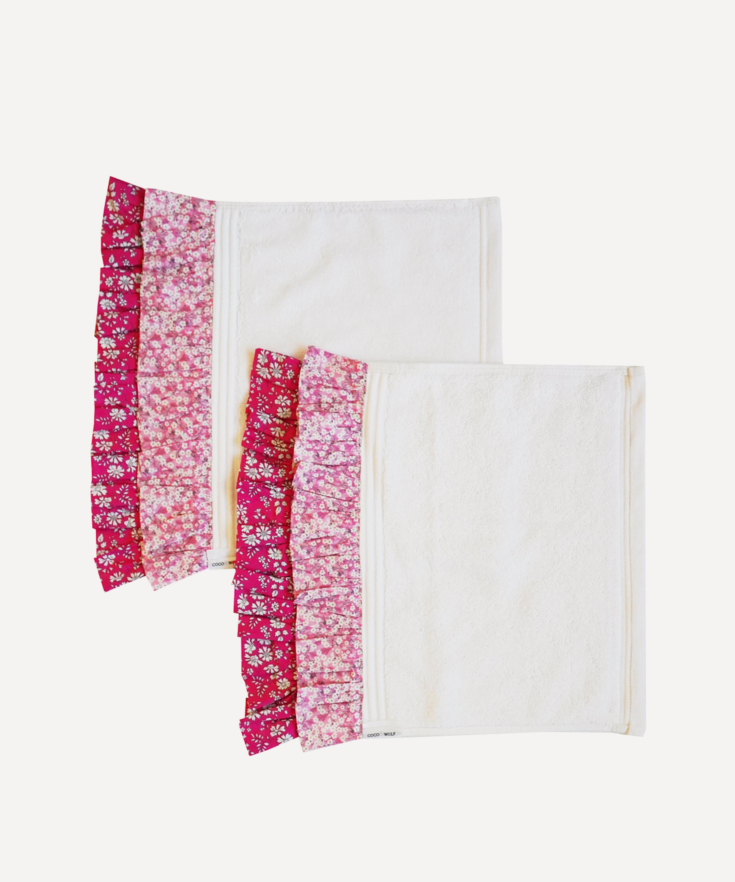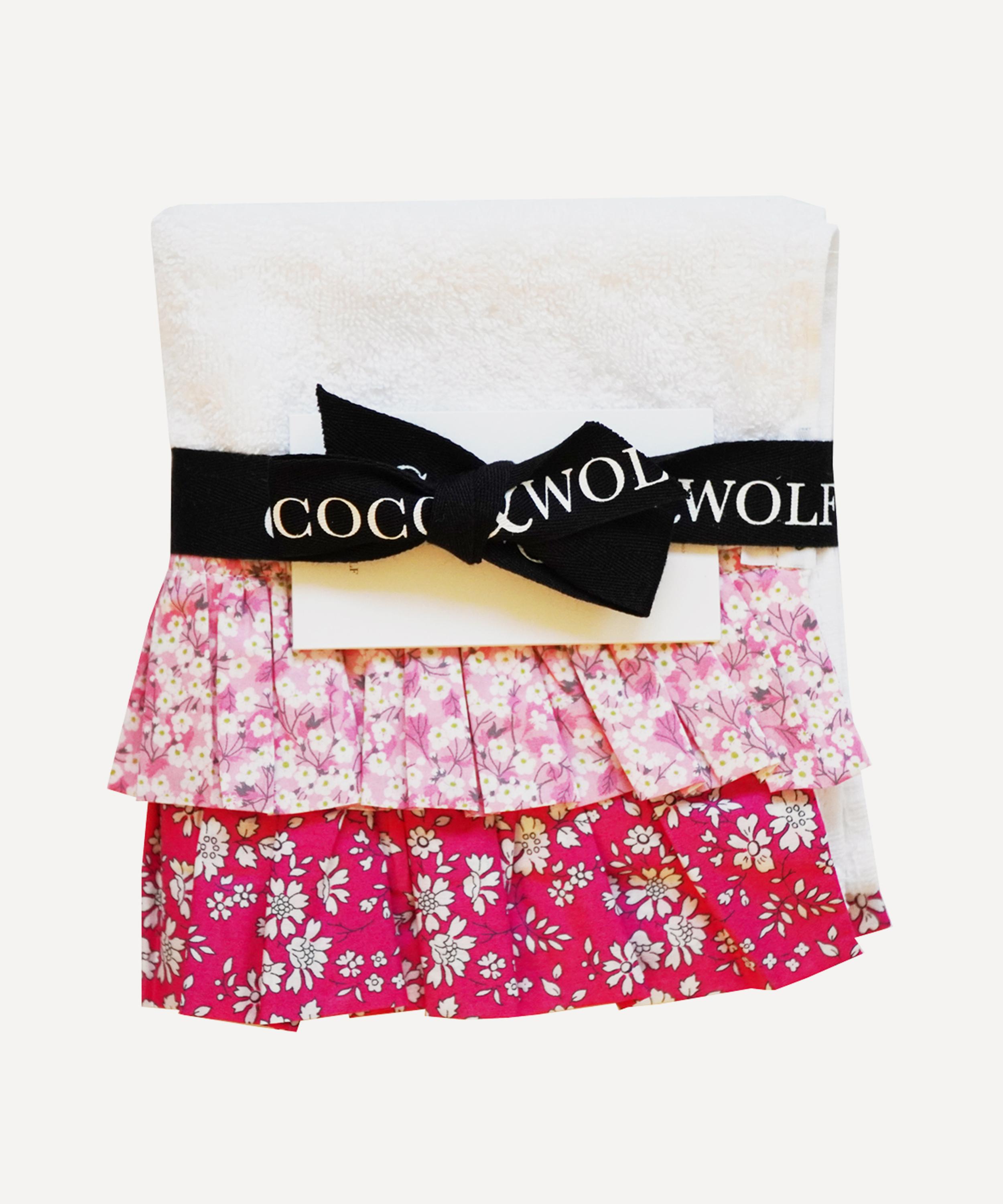 Add a touch of Liberty print charm to your bathroom with the double ruffle face towel set from Coco and Wolf. Handcrafted from a super soft combination of cotton and bamboo, these premium quality face towels are finished with beautiful, ruffled edges in Liberty's classic Mitsi Valeria print in pink.