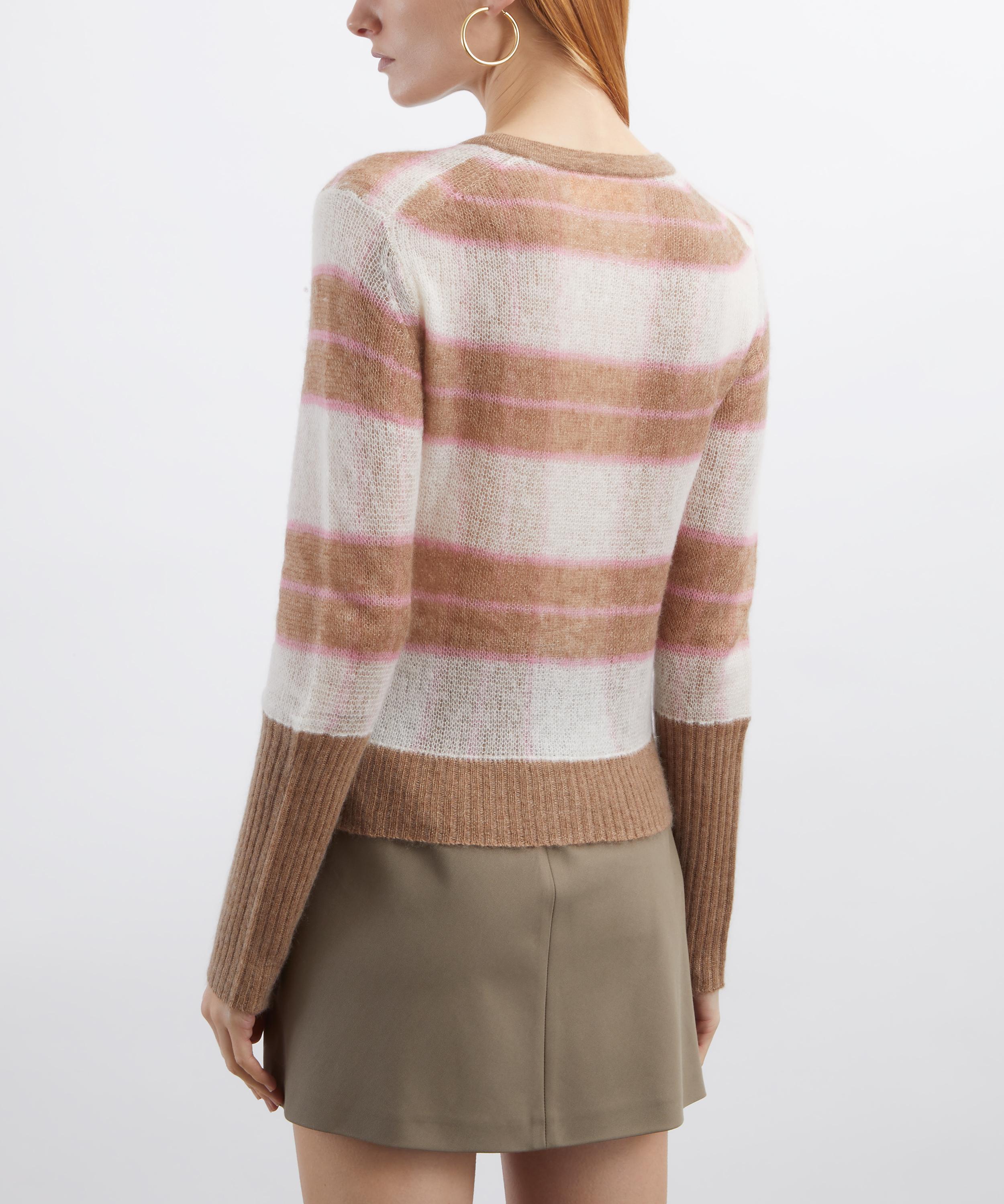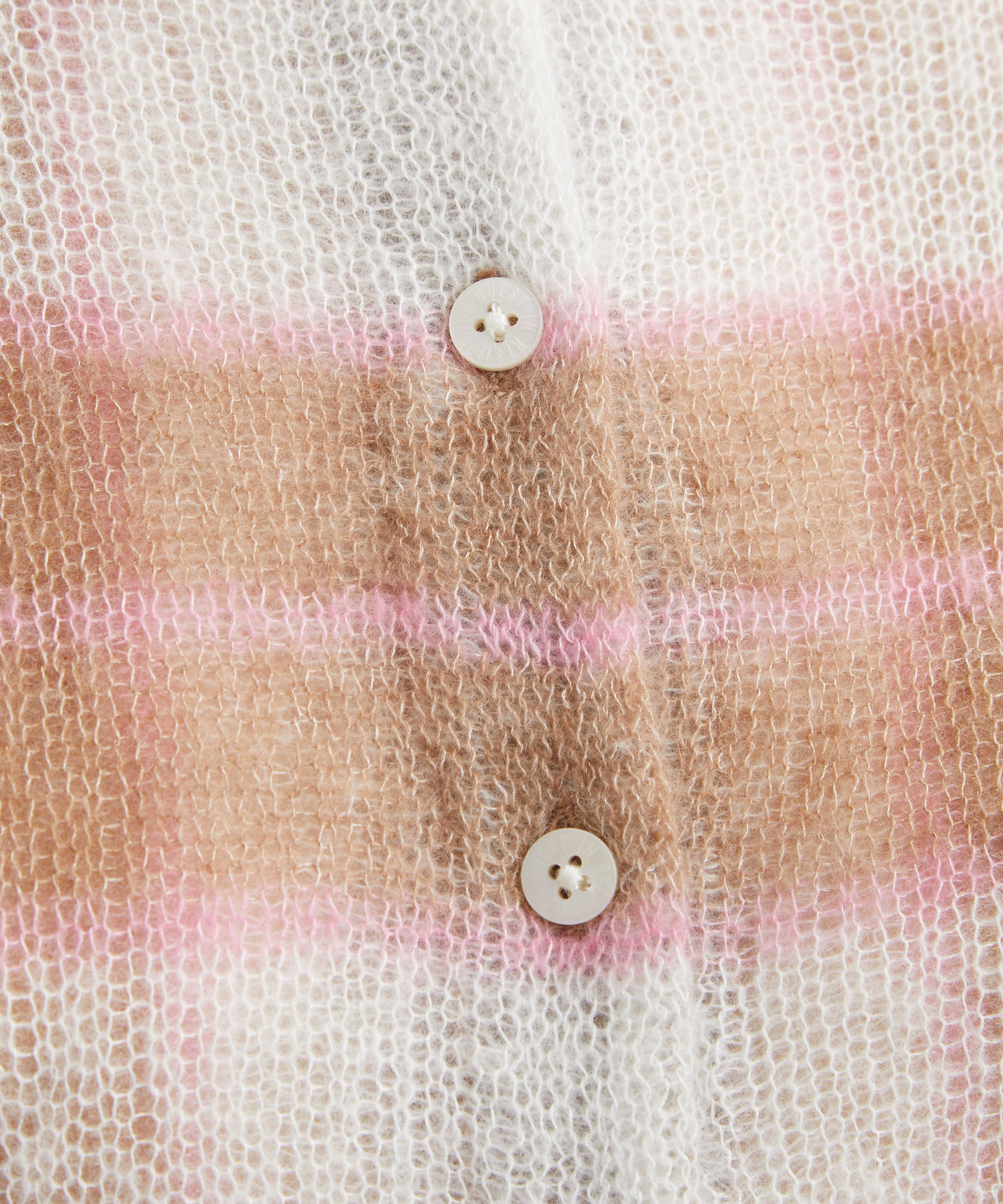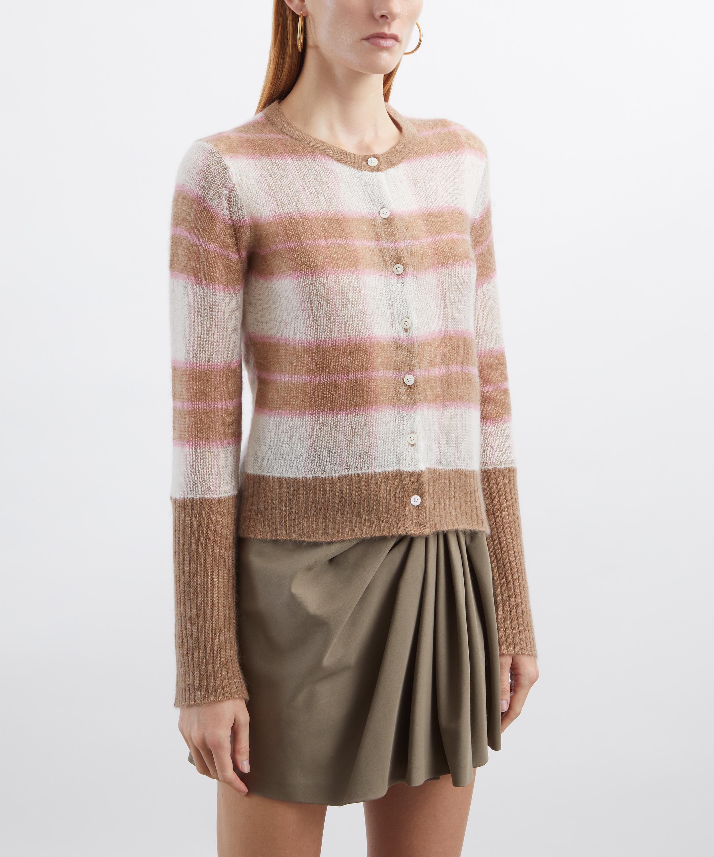 Crafted from a lightweight cashmere-silk blend with a unique double-layered construction that creates a soft shadow plaid effect, this cardigan is cut for a cropped fit and finished with button fastening and ribbed trims - offering an effortless blend of comfort and sophistication.
