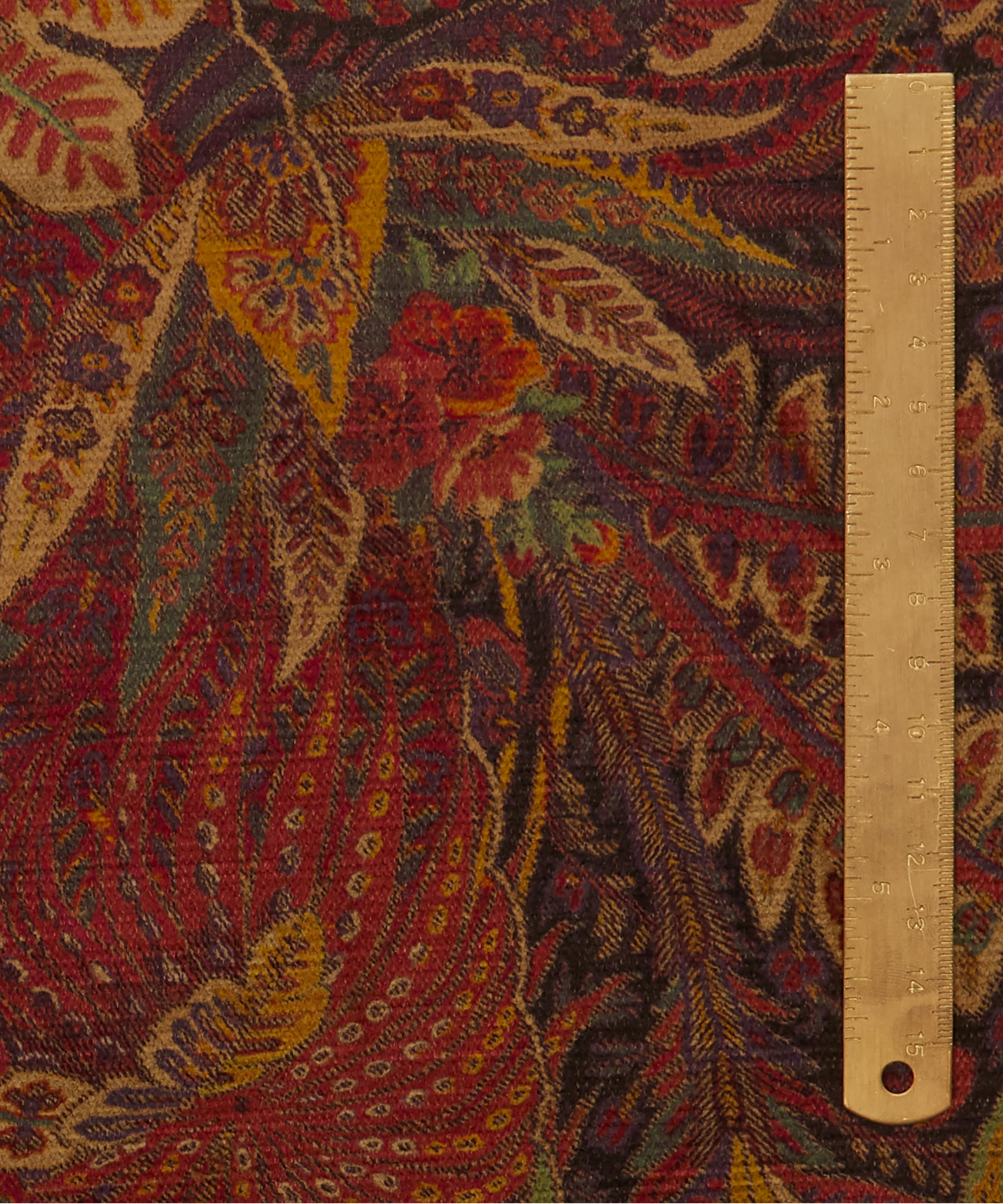 Shand Voyage is inspired by one of a collection of mid-19th century hand-painted shawl designs, discovered in the Liberty archive and reworked in our in-house design studio. It is expertly printed in Italy onto our Vintage Velvet – a beautiful mixed-fibre base that’s suitable for both heavy domestic and contract use. Luxurious in feel and vibrant in colour, this velvet’s elegant drape also makes it ideal for heavier curtains with blackout or draft-excluding qualities.