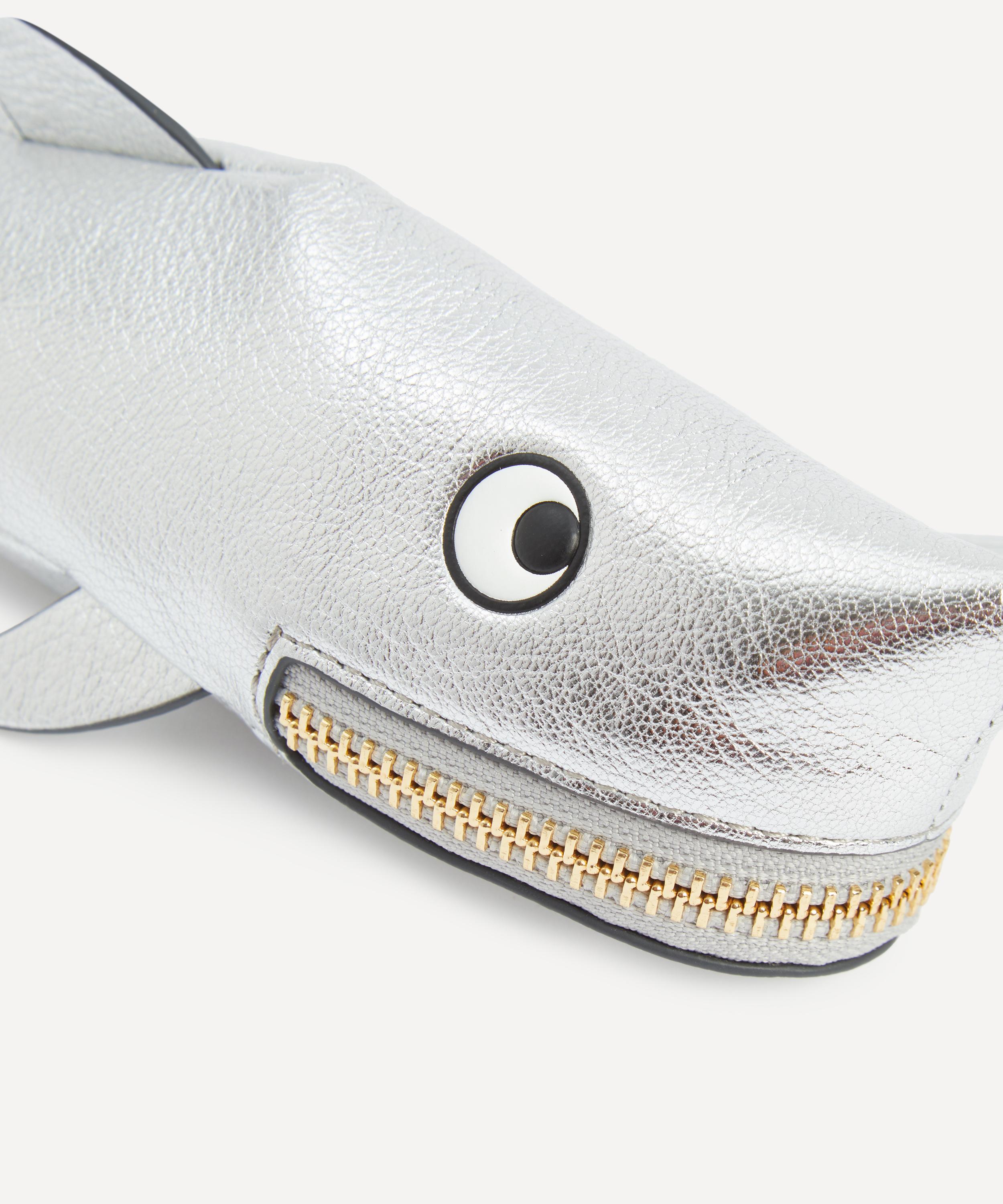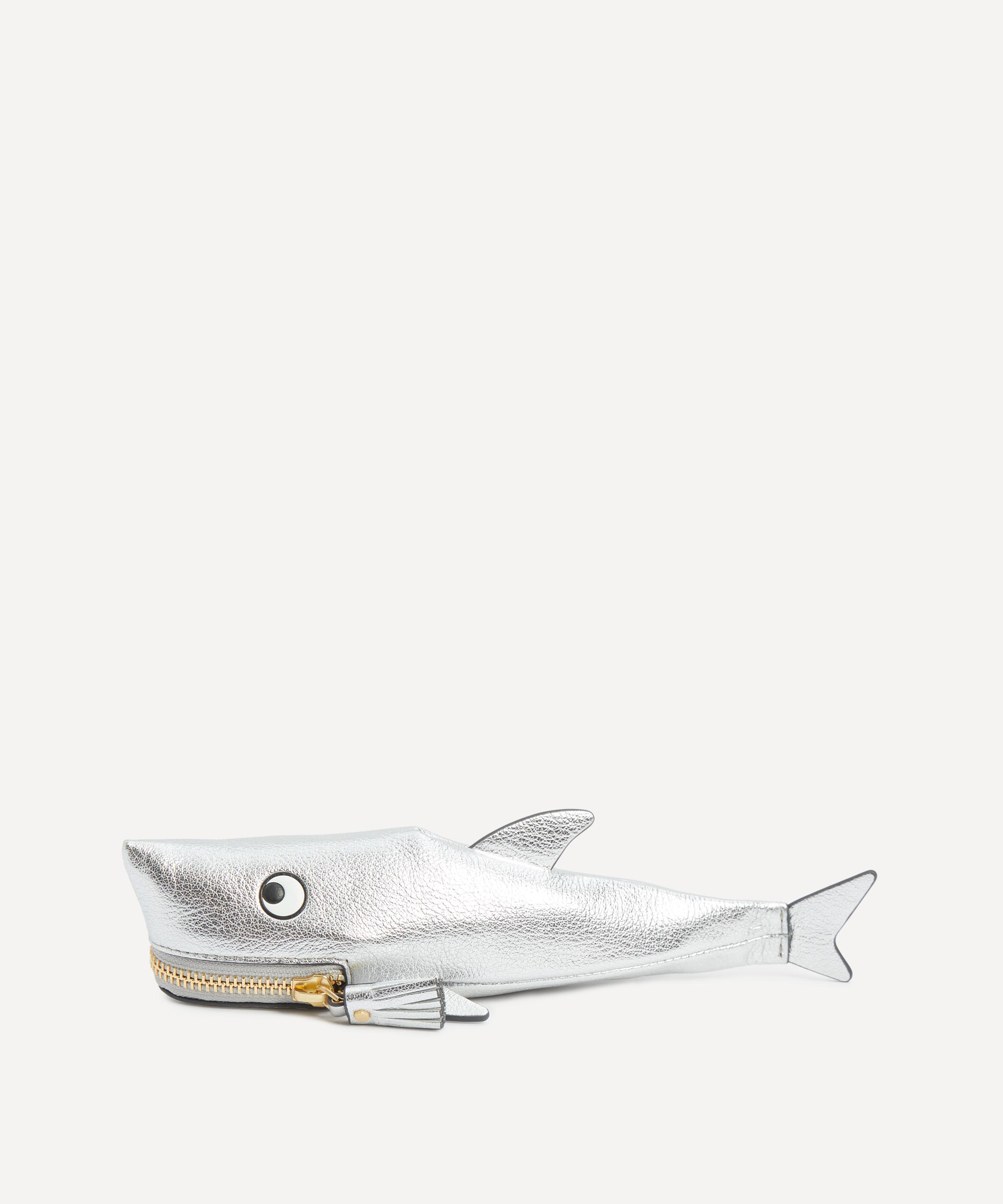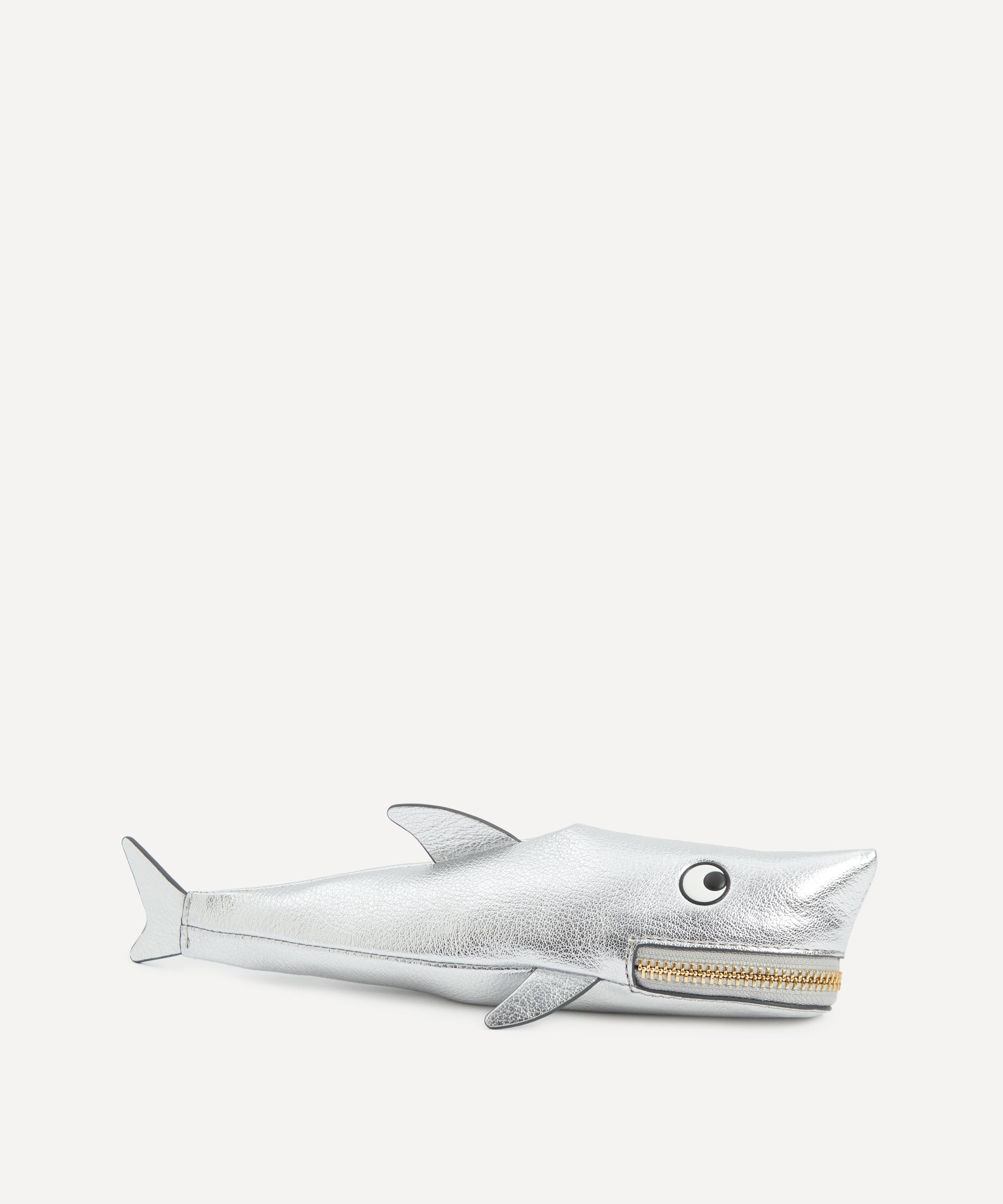Crafted from petrol blue nylon with leather accents to look exactly like a shark, this pencil case is complete with a tassel zip pull over the mouth and ’FEED ME’ gold embossing - reflecting the brand’s skill for fun, functional accessories.About Anya Hindmarch