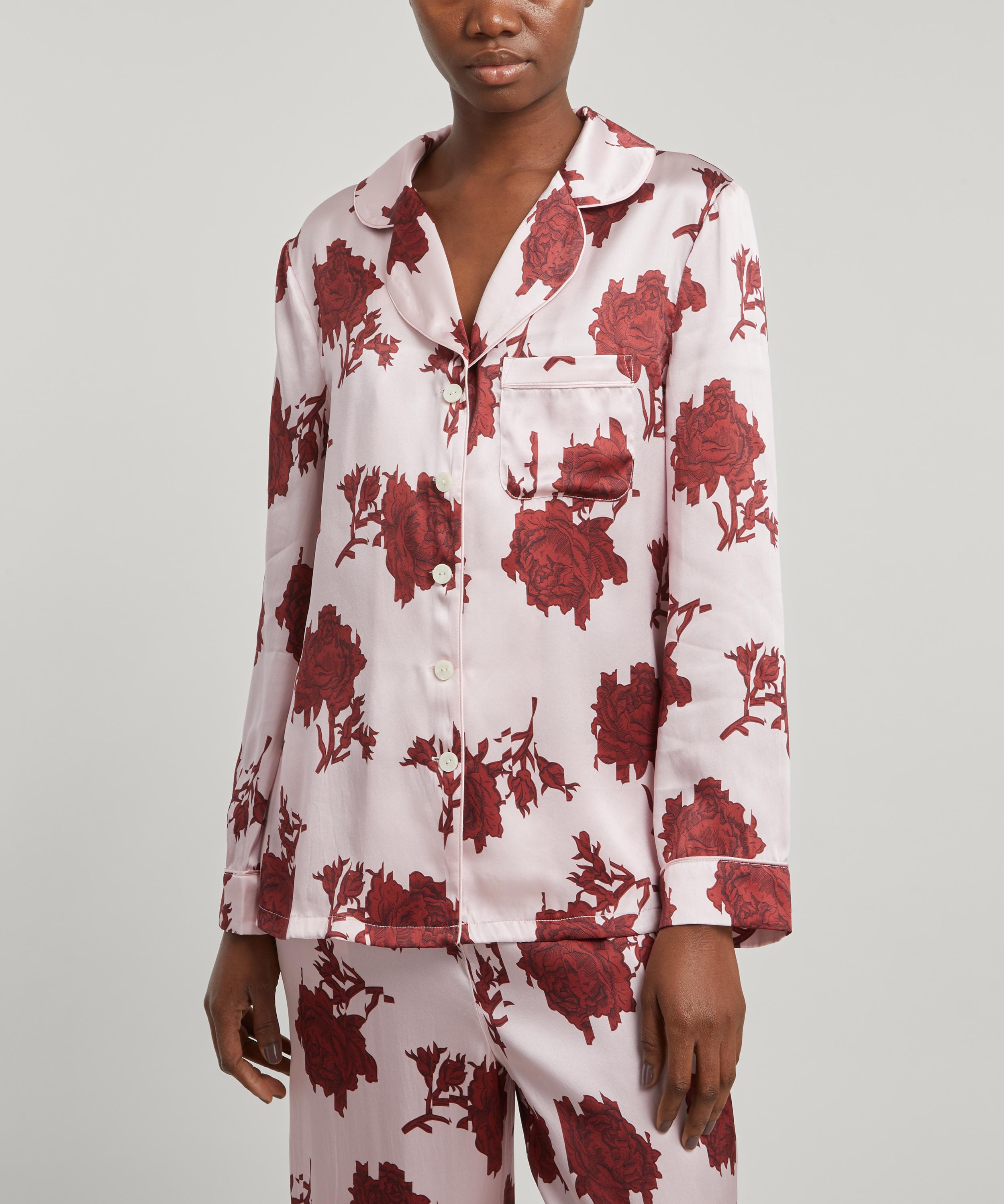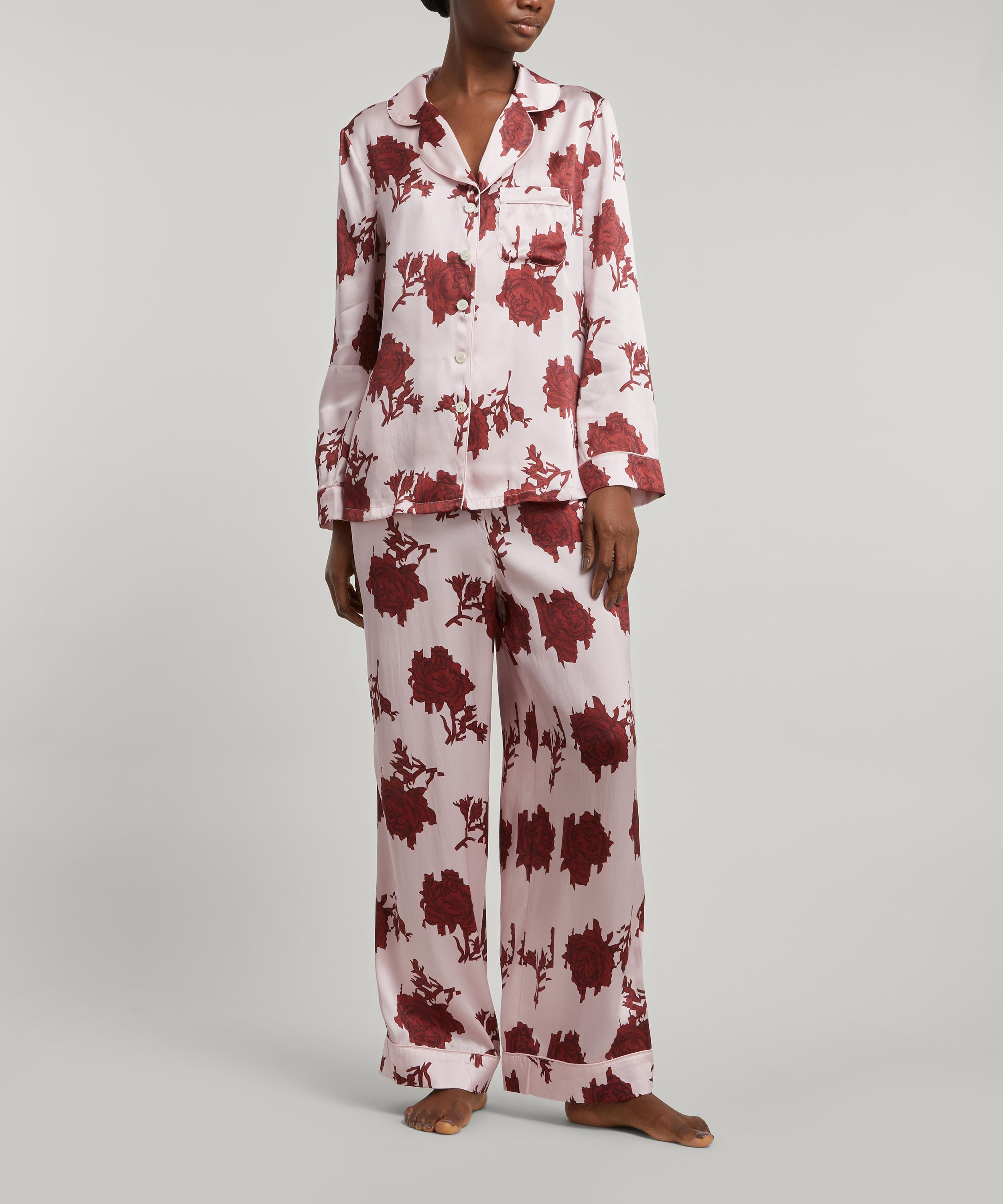 Cut in a relaxed silhouette and finished with an elasticated waist for comfort and wearability, Liberty’s classic silk satin two-piece pyjama set captures the mood for lounge-worthy pieces that are versatile enough to be worn day or night. The pyjamas feature elegant detailing throughout including piping on the cuffs and collar, notched shirt lapels and a chest pocket. Liberty’s luxury pyjamas spotlight our Shattered Story print – inspired by the white roses in Alice in Wonderland, this boldly fragmented floral artwork was drawn in fine-line pen in the London design studio.