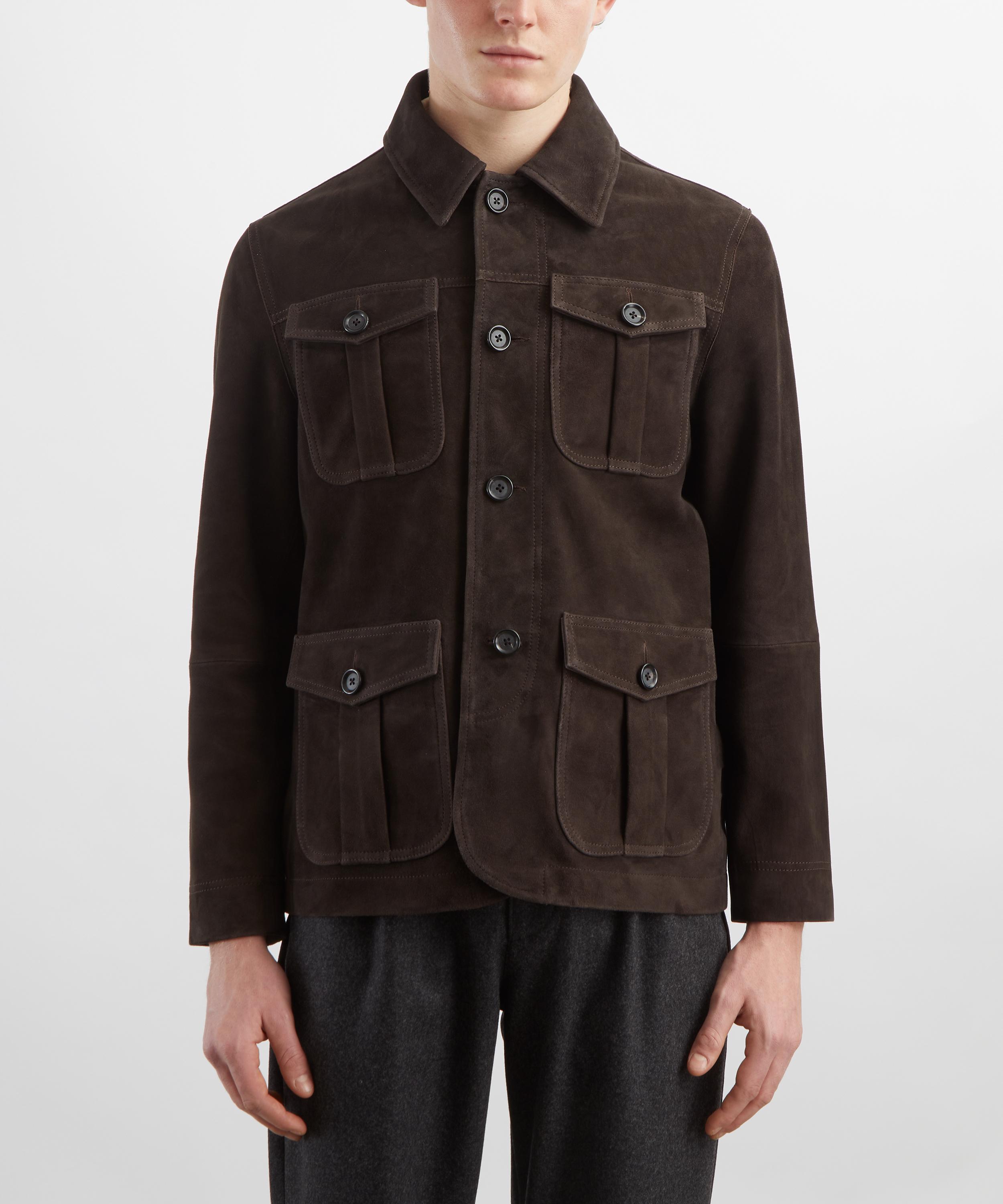 Crafted from butter-soft suede, this military-inspired jacket is tailored in a classic regular fit. A sharp spread collar, button-front fastening, and four buttoned flap pockets lend a refined utilitarian edge. Midweight yet supple, it layers effortlessly through the transitional seasons.