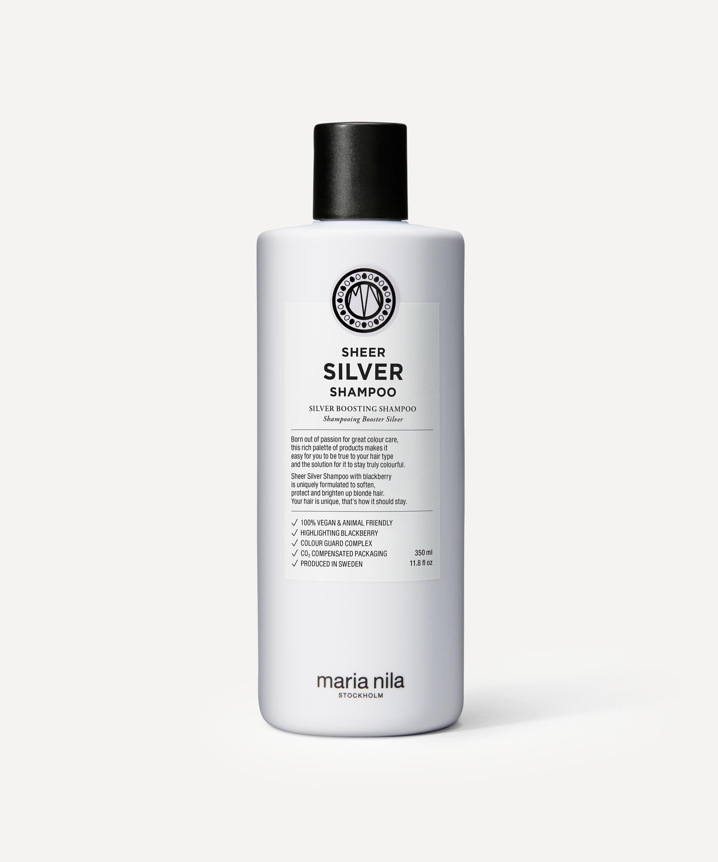 Enhance the cool shades of blonde, white and grey hair with Maria Nila's Sheer Silver Shampoo, a gently cleansing, strengthening formula.