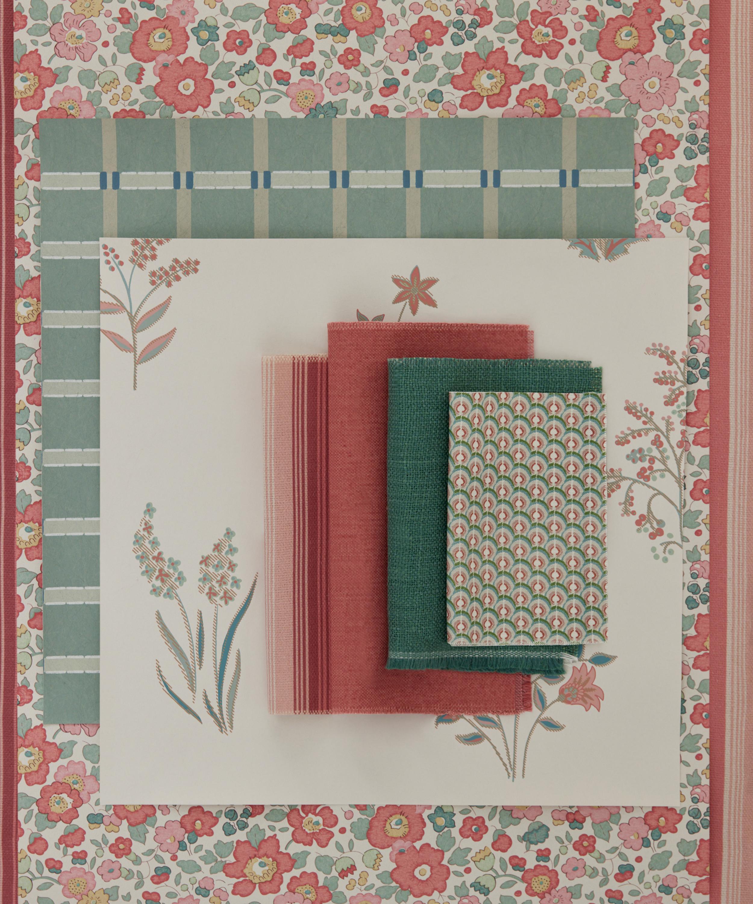 The House of Liberty wallpaper collection draws on pivotal moments that have defined Liberty as a leading tastemaker and artistic innovator of interior design. Framed by the rich textures and relaxed glamour of bohemian botanicals lies the genesis of Liberty. Inspired by discoveries in the renowned archive: rolling panoramic landscapes, blossoming trails, and painterly ditsies are elegantly offset with sophisticated geometrics and sartorial details, reimagined for conventionally and digitally printed wallpapers.