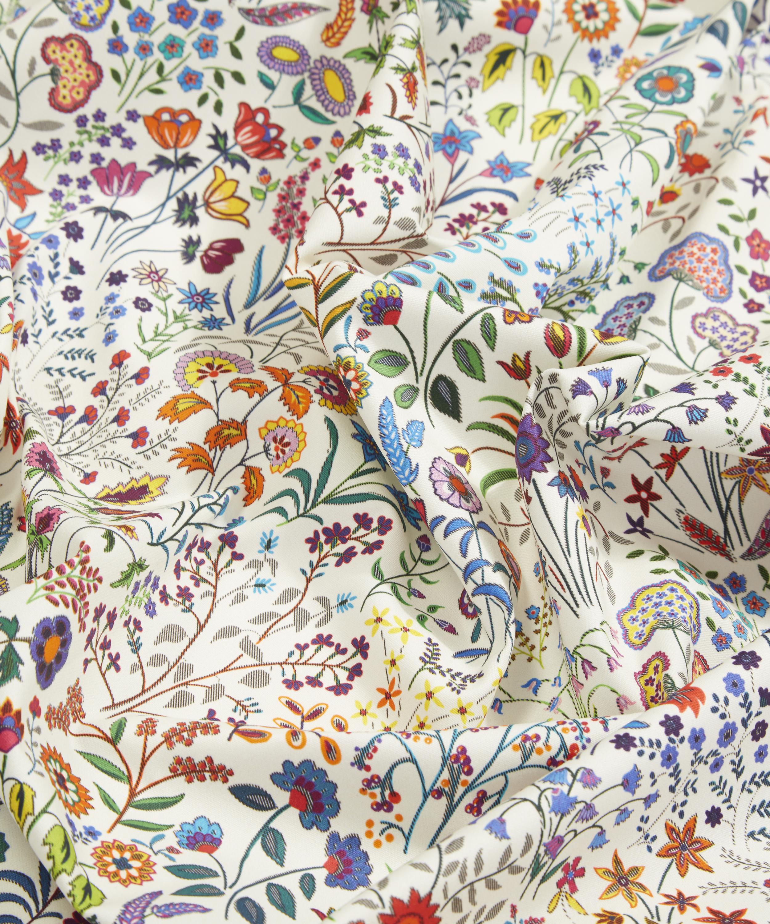 An original design, hand drawn in pencil and then painted in gouache, Shepherdly Flowers Liberty print was created using bunches of flowers purchased from the Liberty London Flower shop, Wild at Heart as inspiration. Stylised into a floral paisley, the print represents two of the most famous styles of Liberty print, designs from the Orient and florals.