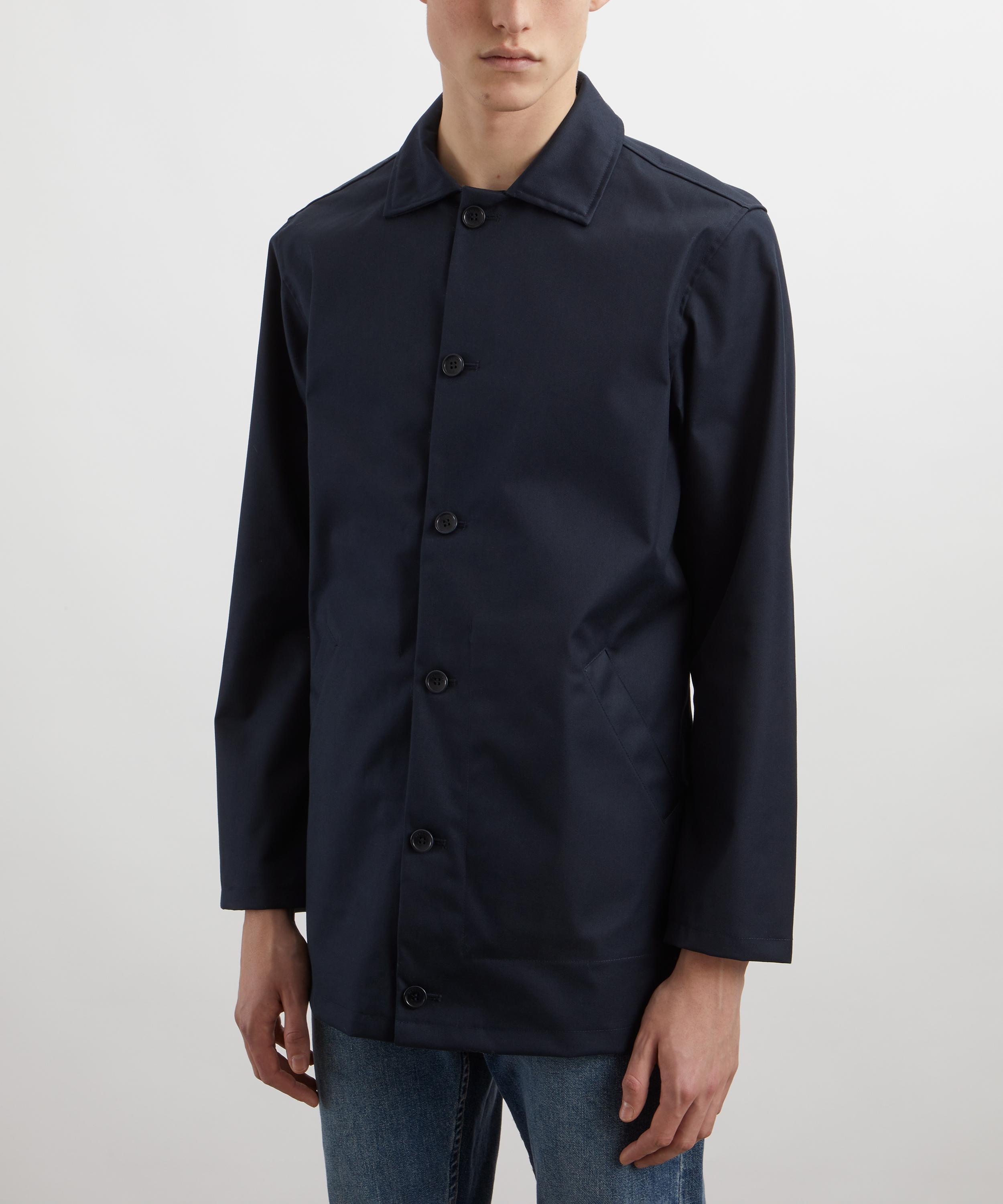 Crafted from a water-repellent cotton polyester PU, this short-length trench is cut to a regular, tailor fit featuring a classic spread collar, two welt pockets and a button fastening, finished with a large internal pocket for valuables – a staple addition to your wardrobe.