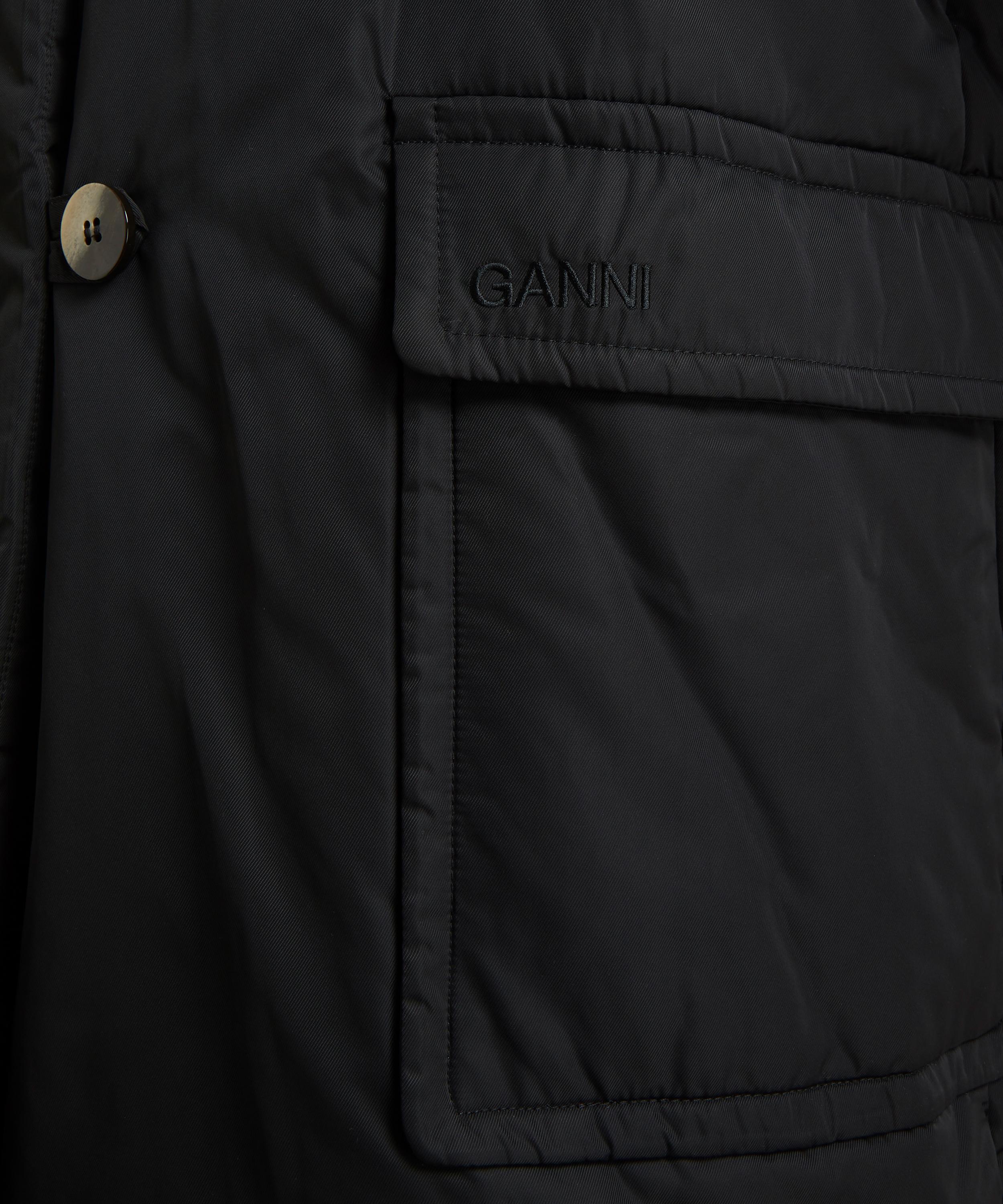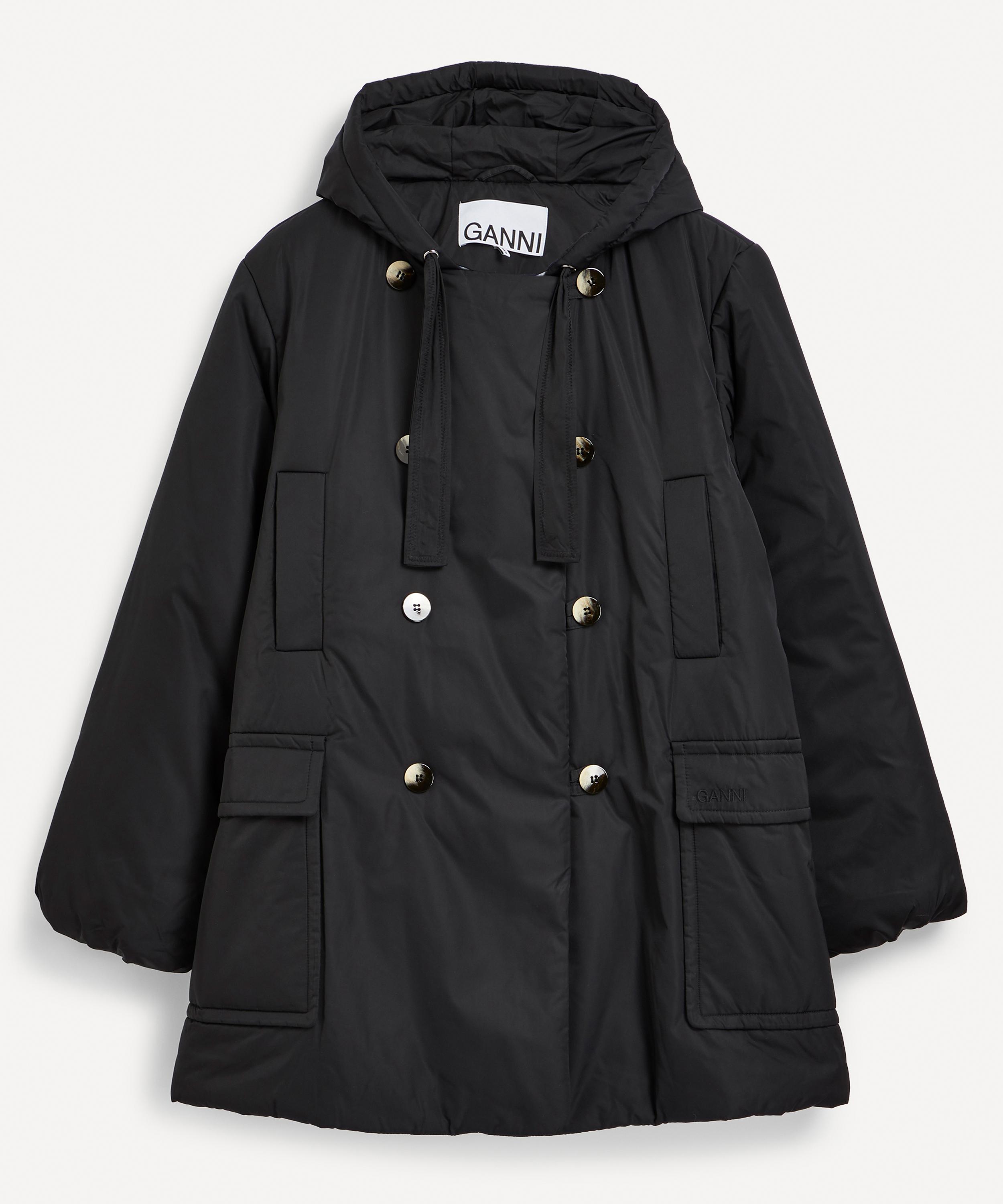 Practical and polished, this shiny recycled-polyester jacket from GANNI brings some Scandi-style to your outerwear edit. Designed for a cosy, oversized fit, this hooded jacket features a double-breasted button closure, complete with multiple flap and side-pockets across its front for a stylish, utilitarian finish.