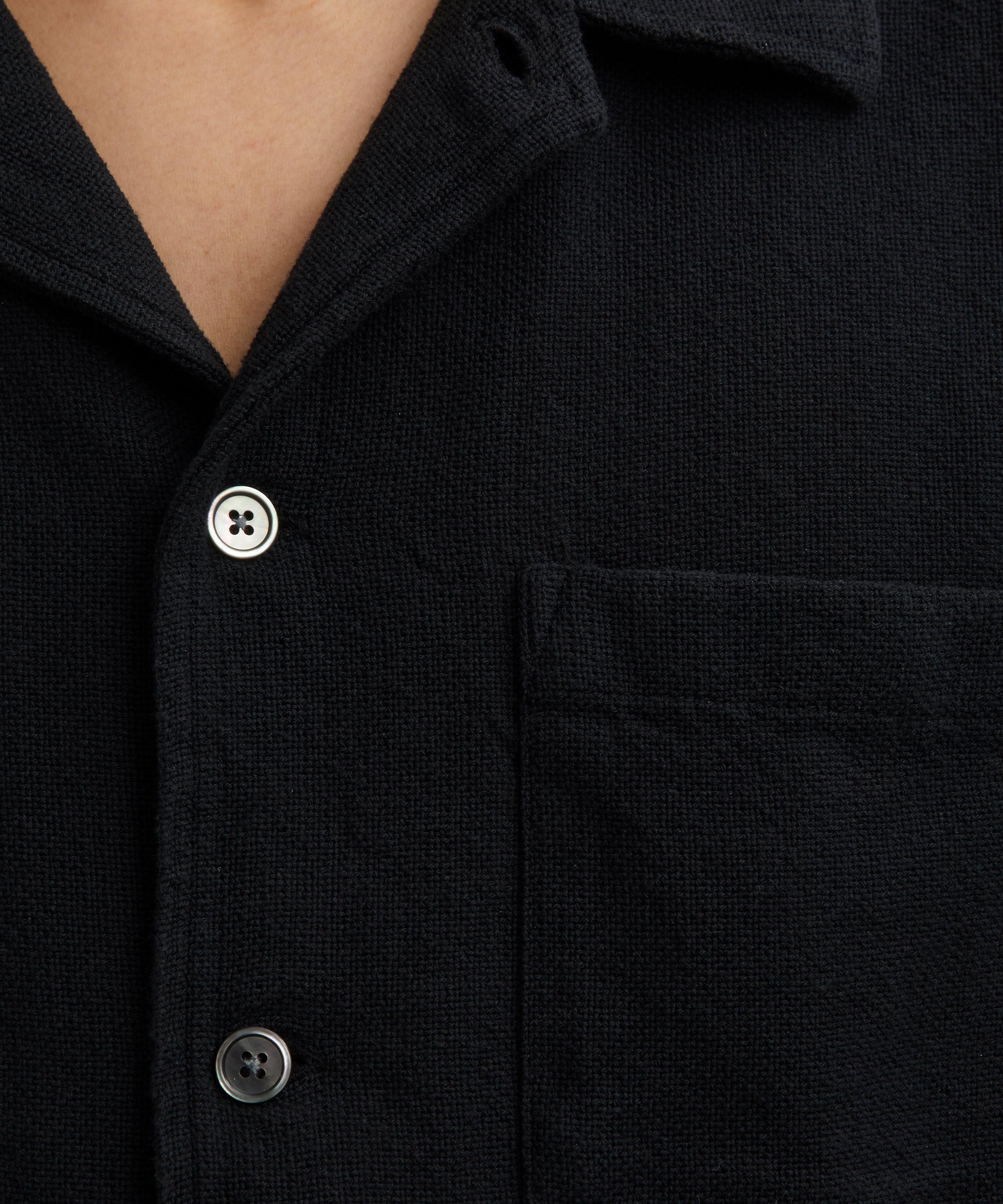 Crafted from a lightweight cotton, this classic shirt is presents a textured crochet weave in a block hue for a versatile addition to your seasonal wardrobe. Designed for a relaxed, boxy fit with short sleeves and a classic collar, a single patch pocket to the chest completes the piece.